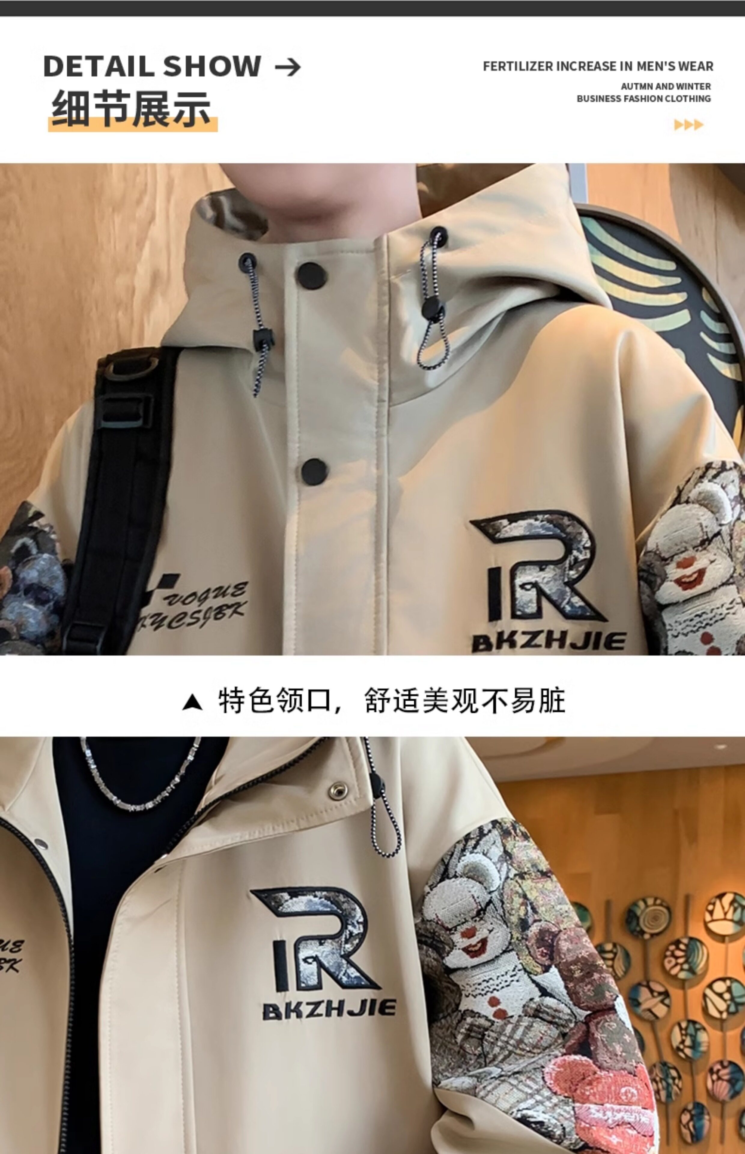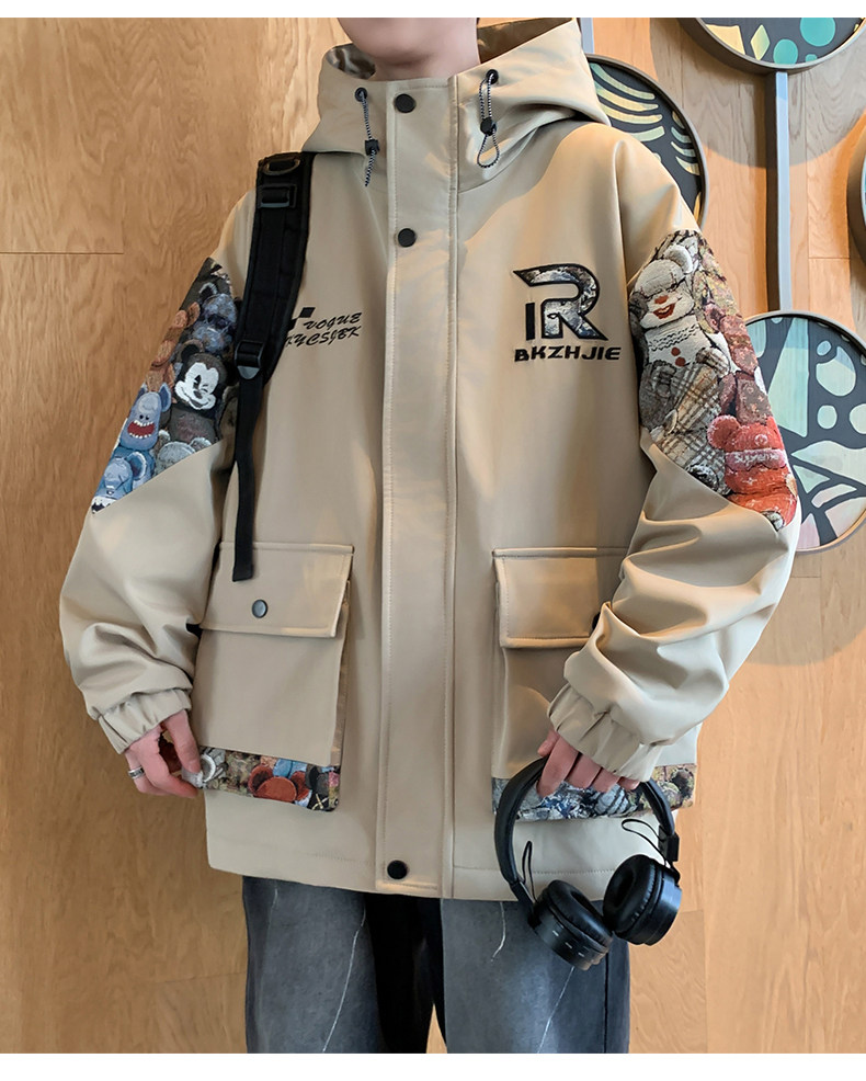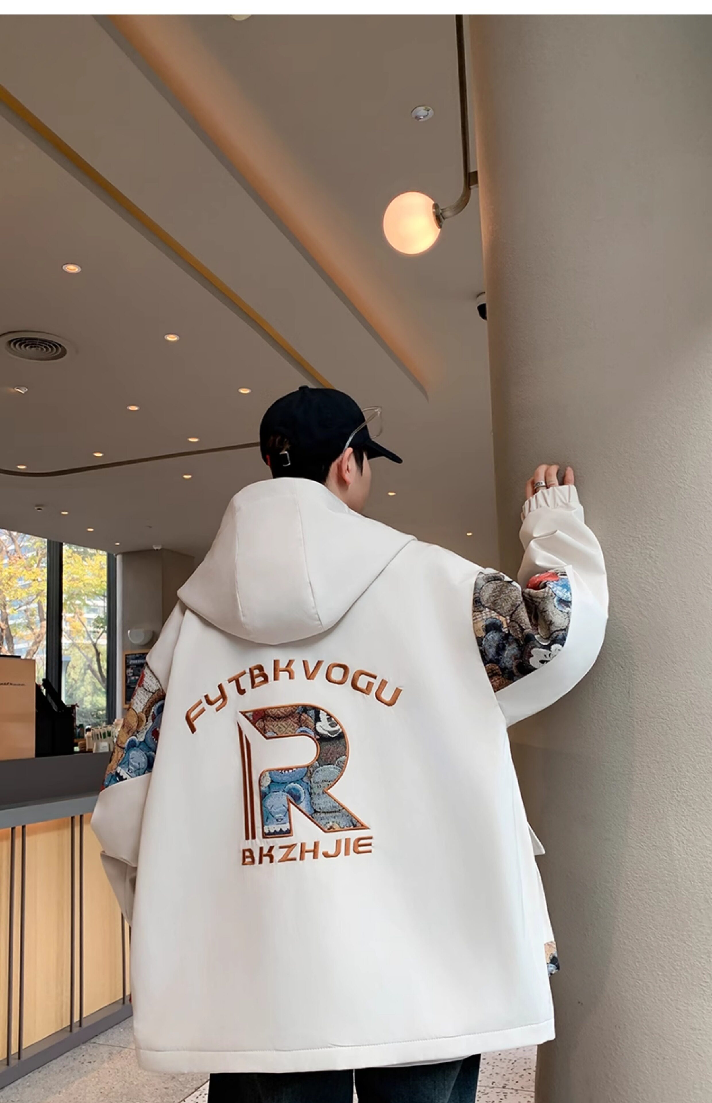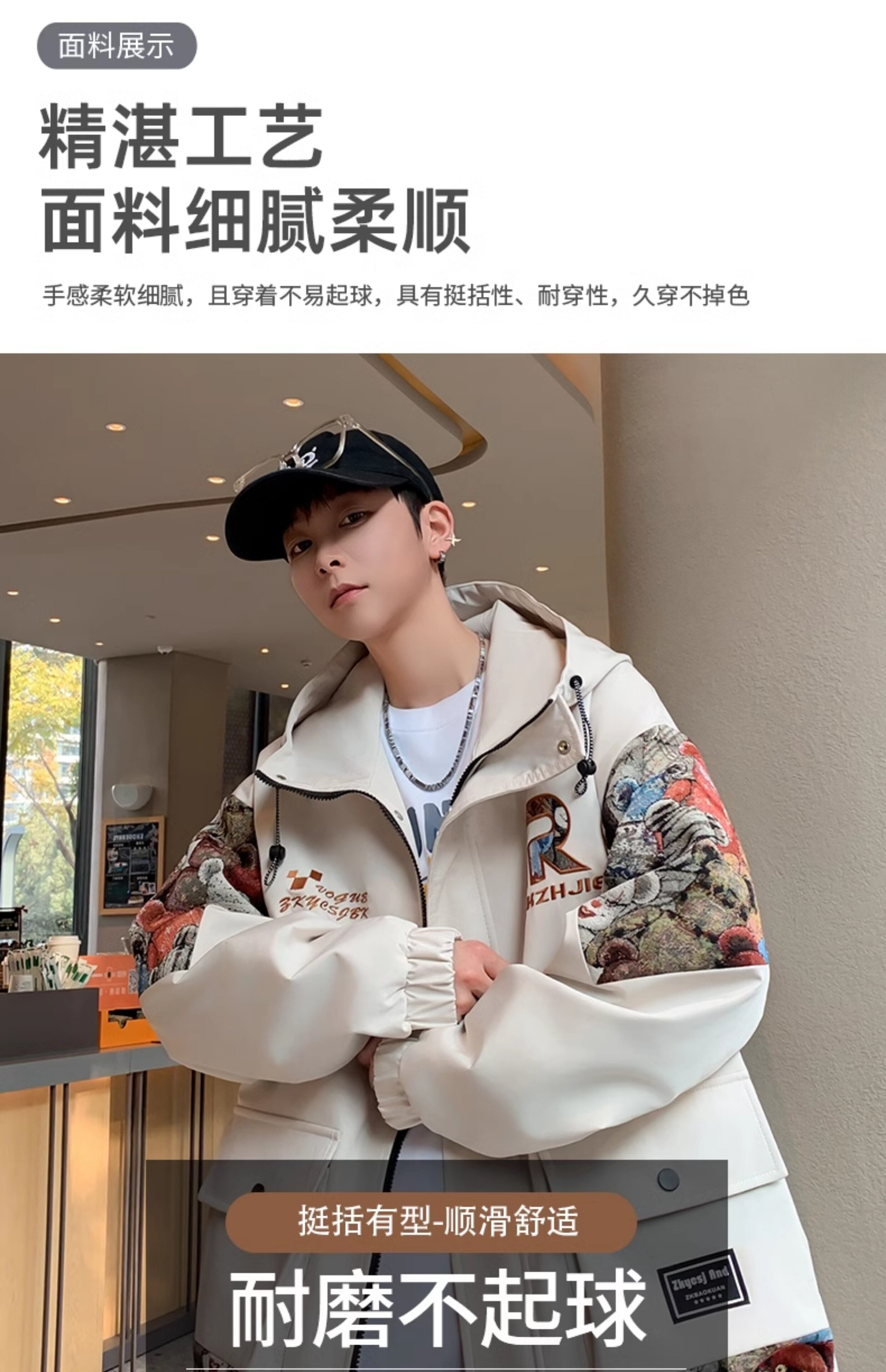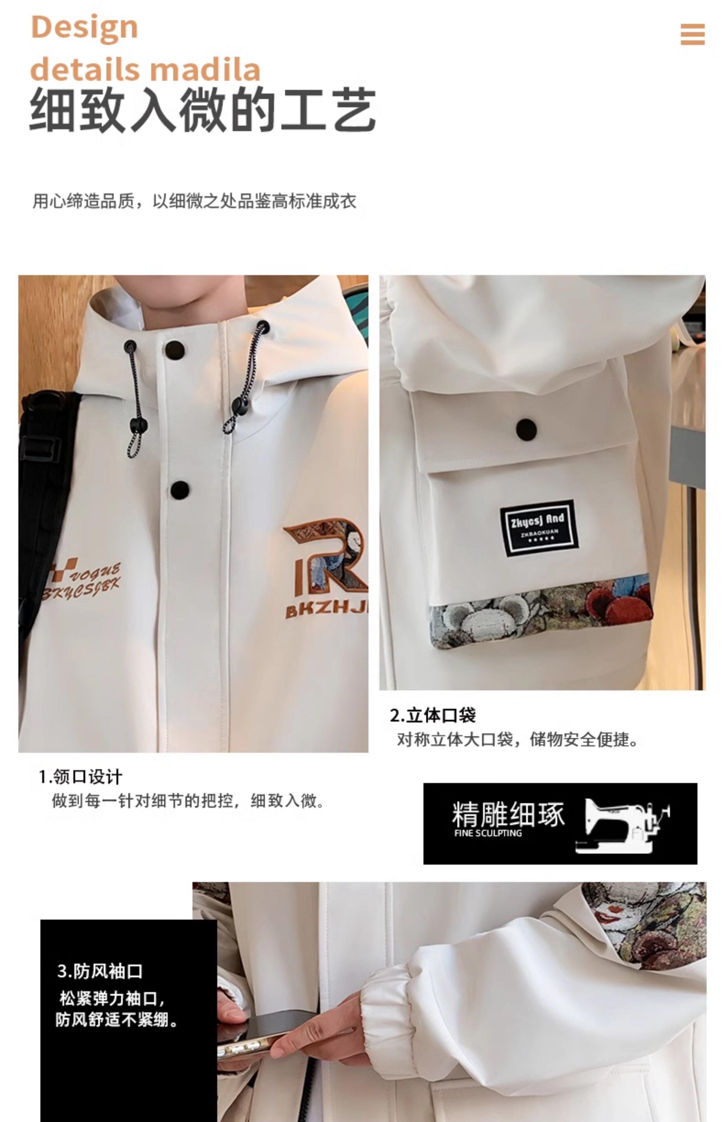 Work jacket men's spring and autumn new Hong Kong style hooded jacket trendy brand jacket teenagers handsome versatile top