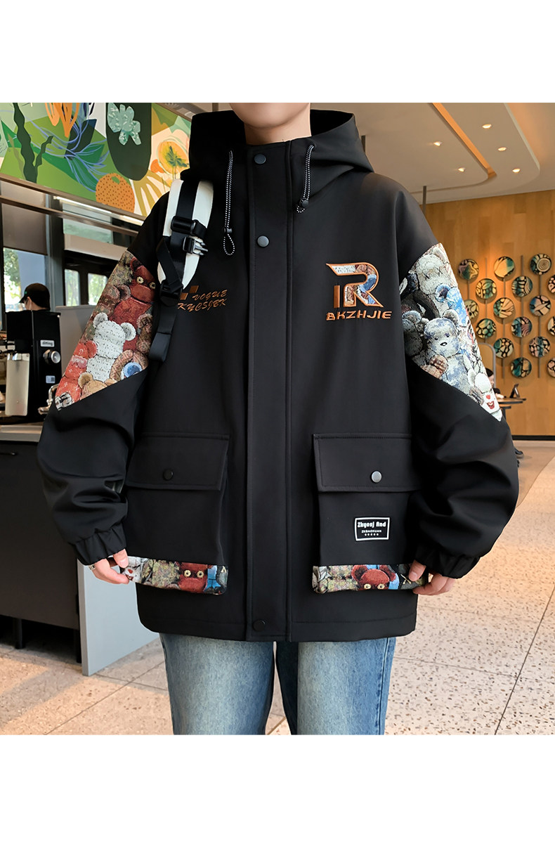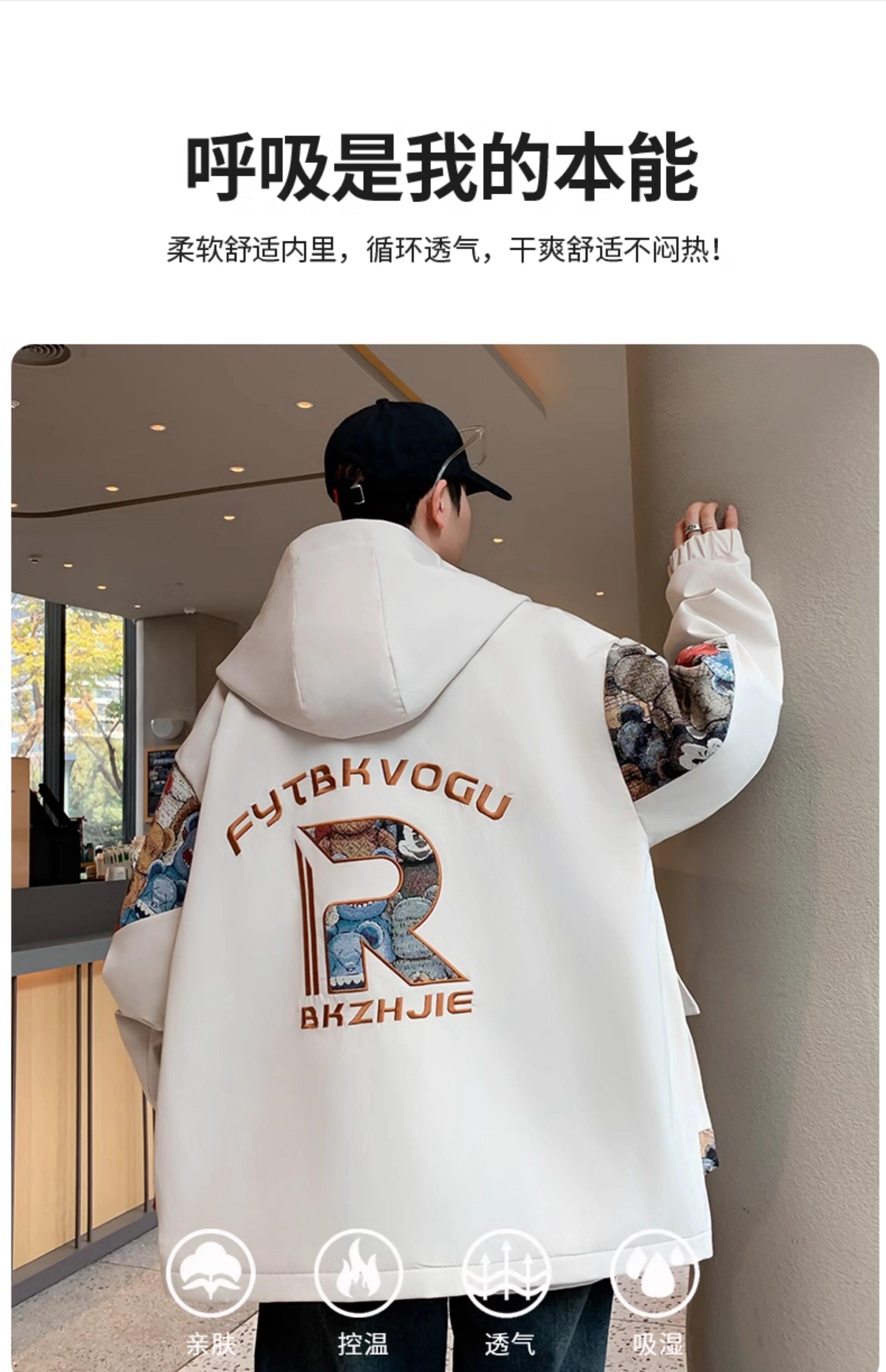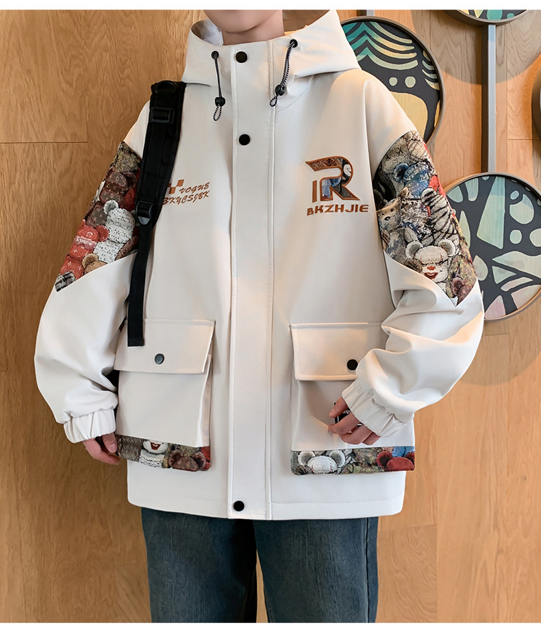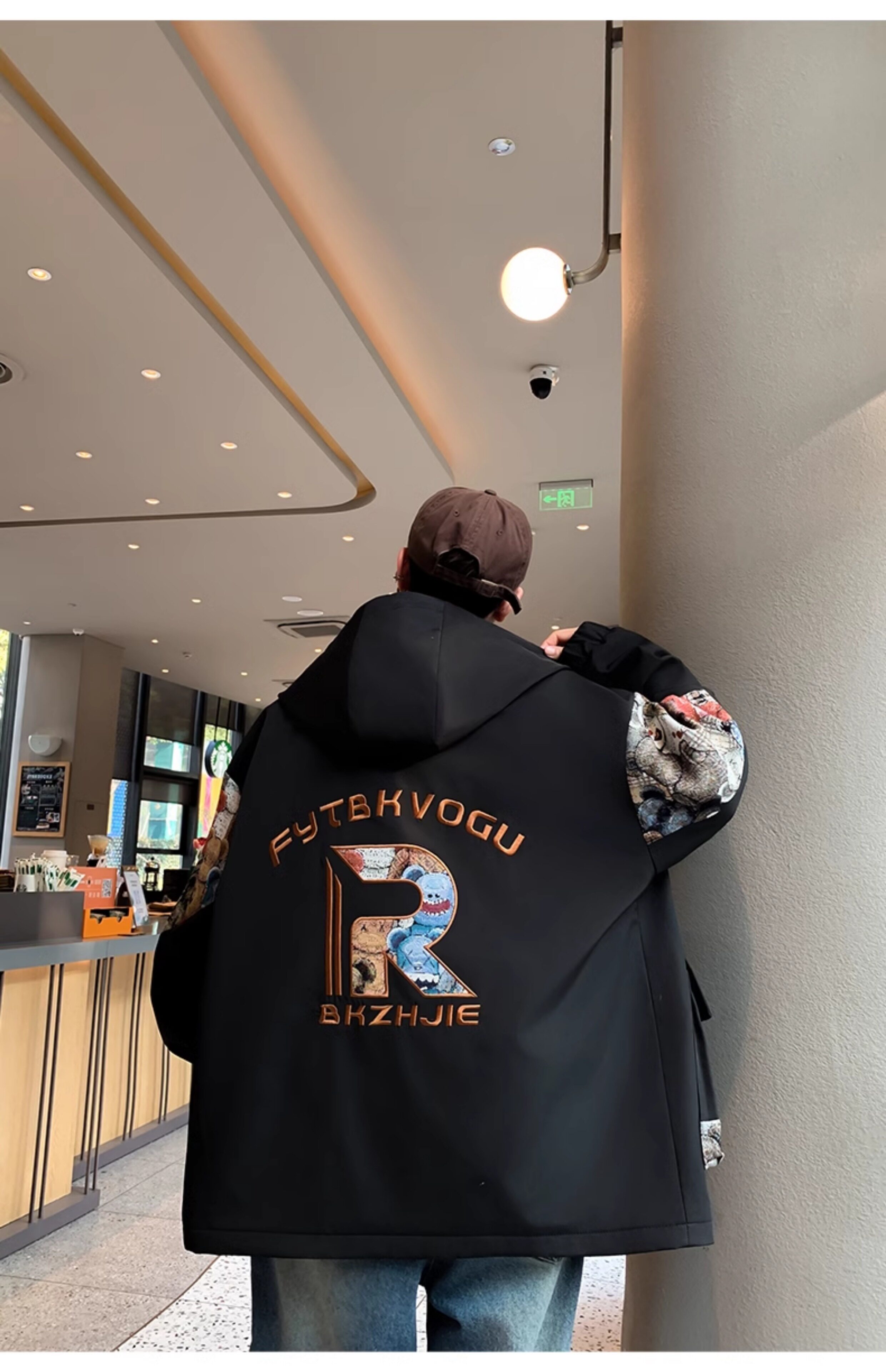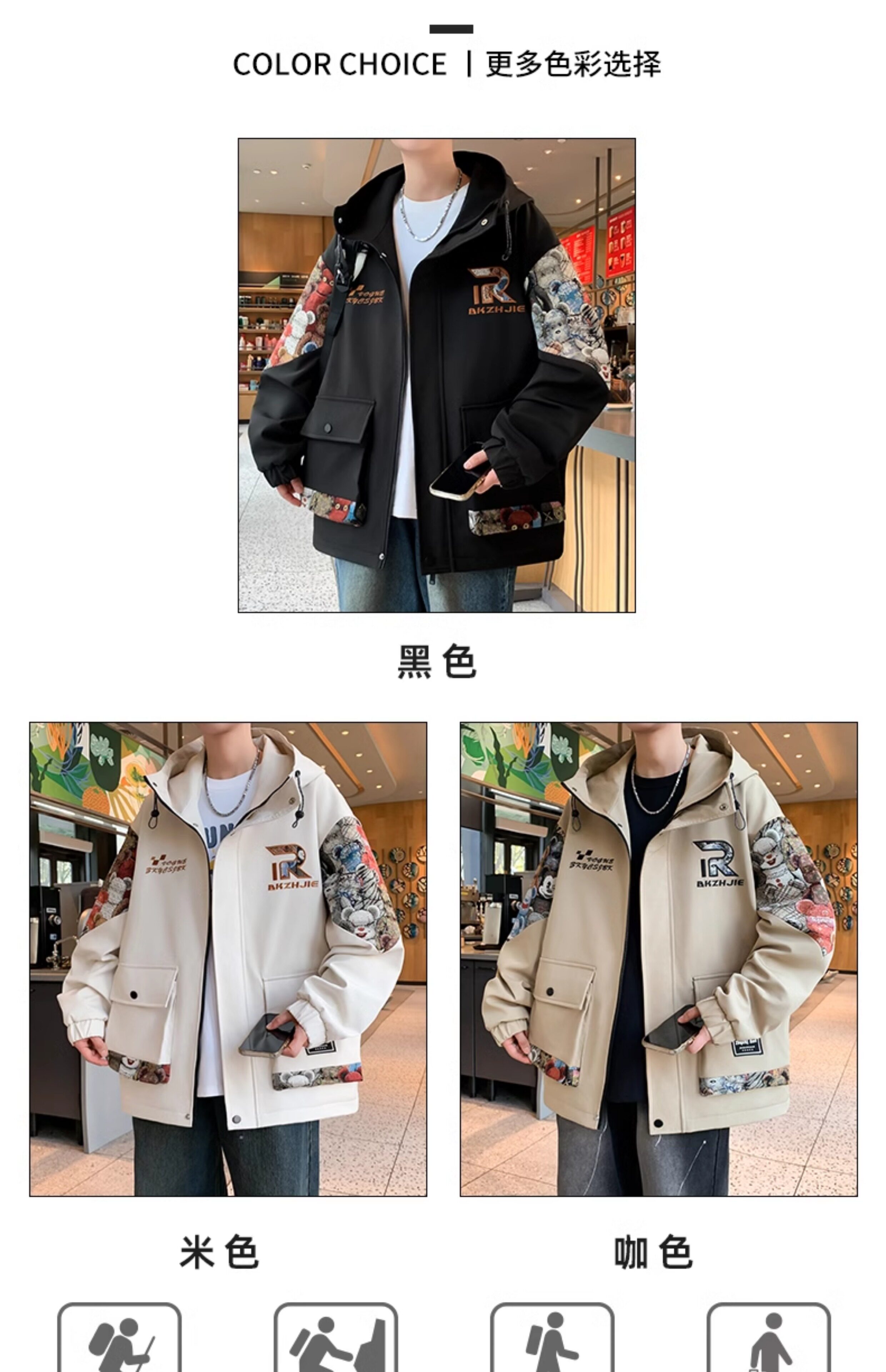 Work jacket men's spring and autumn new Hong Kong style hooded jacket trendy brand jacket teenagers handsome versatile top