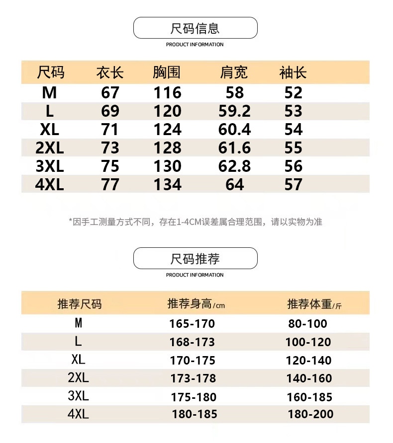 China (cm) 165 / 88-90 170 / 96-98 175 / 108-110 180 / 118-122 185 / 126-130