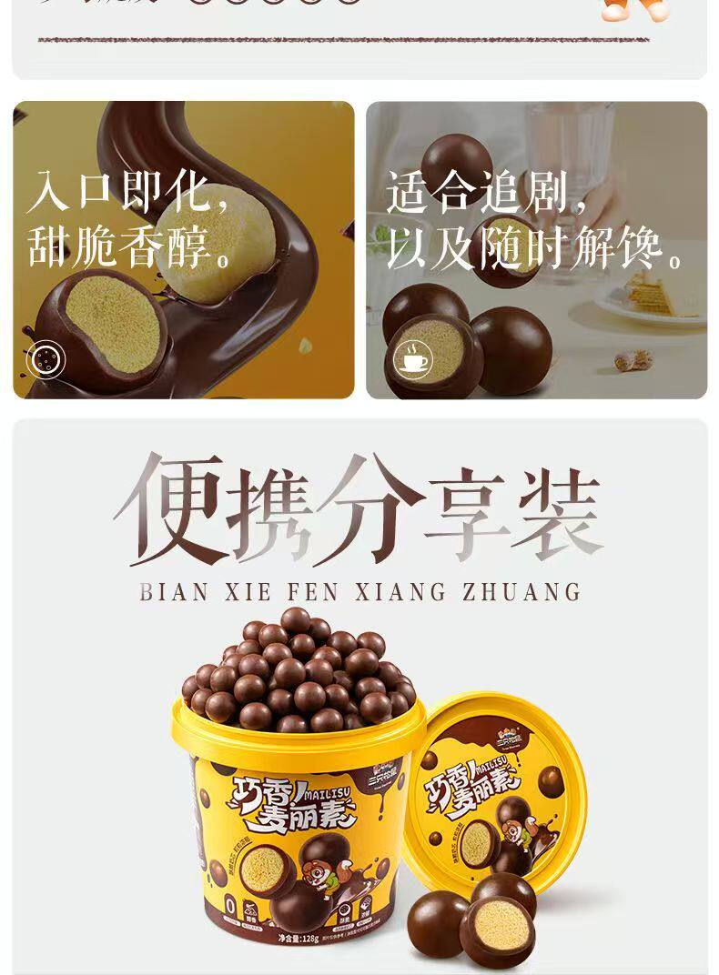 Three Squirrels Qiaoxiang Malinois 128g*1 Bucket Casual Snacks Chocolate Products Super Value and Cost-Effective Snack Bucket