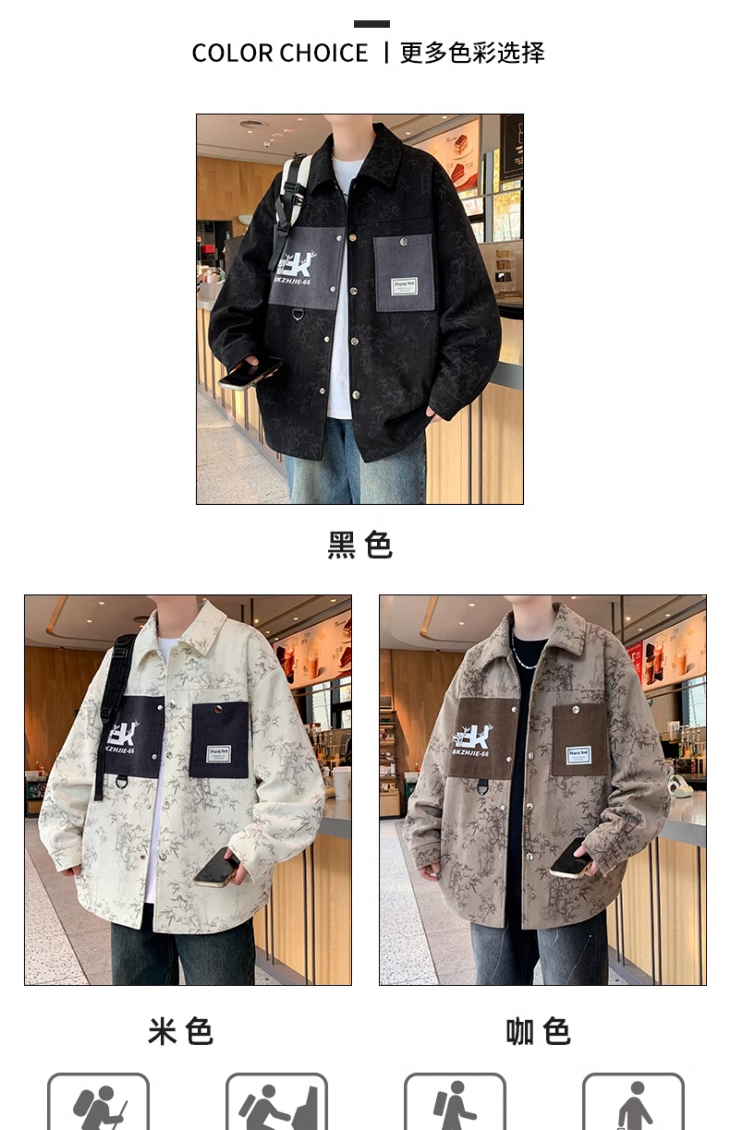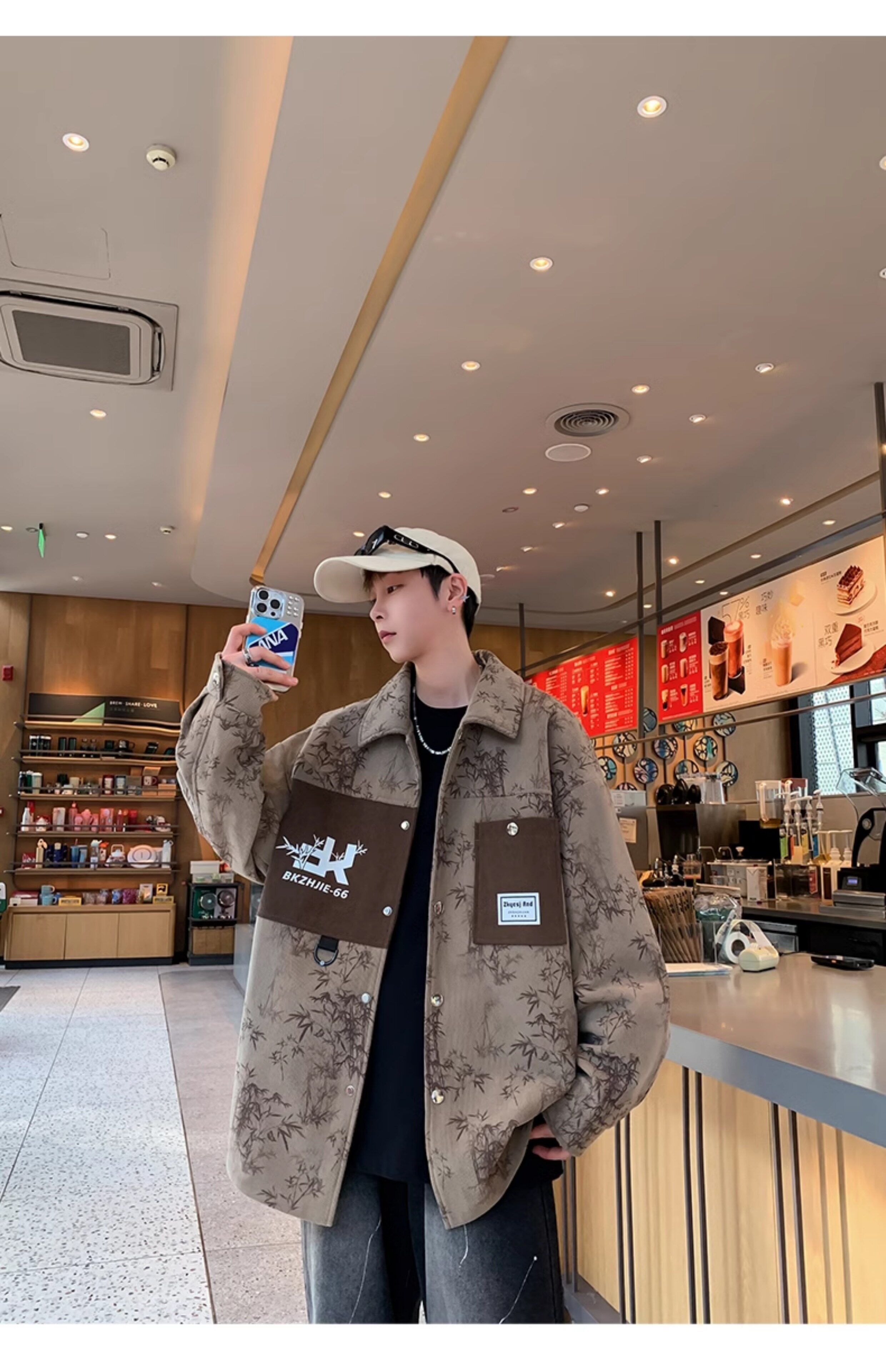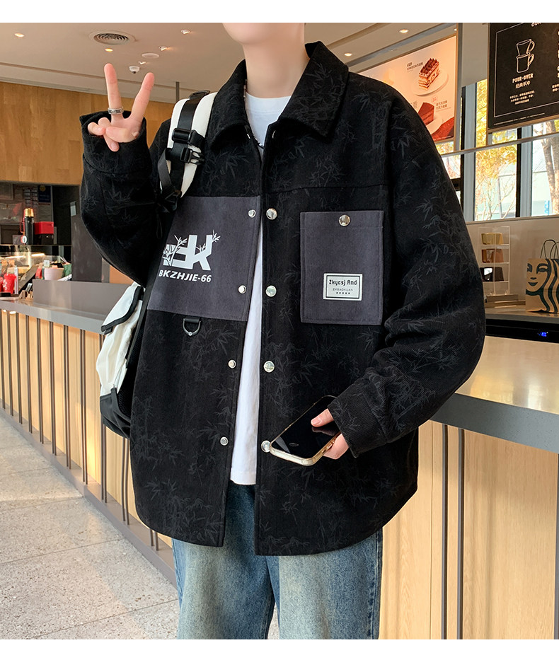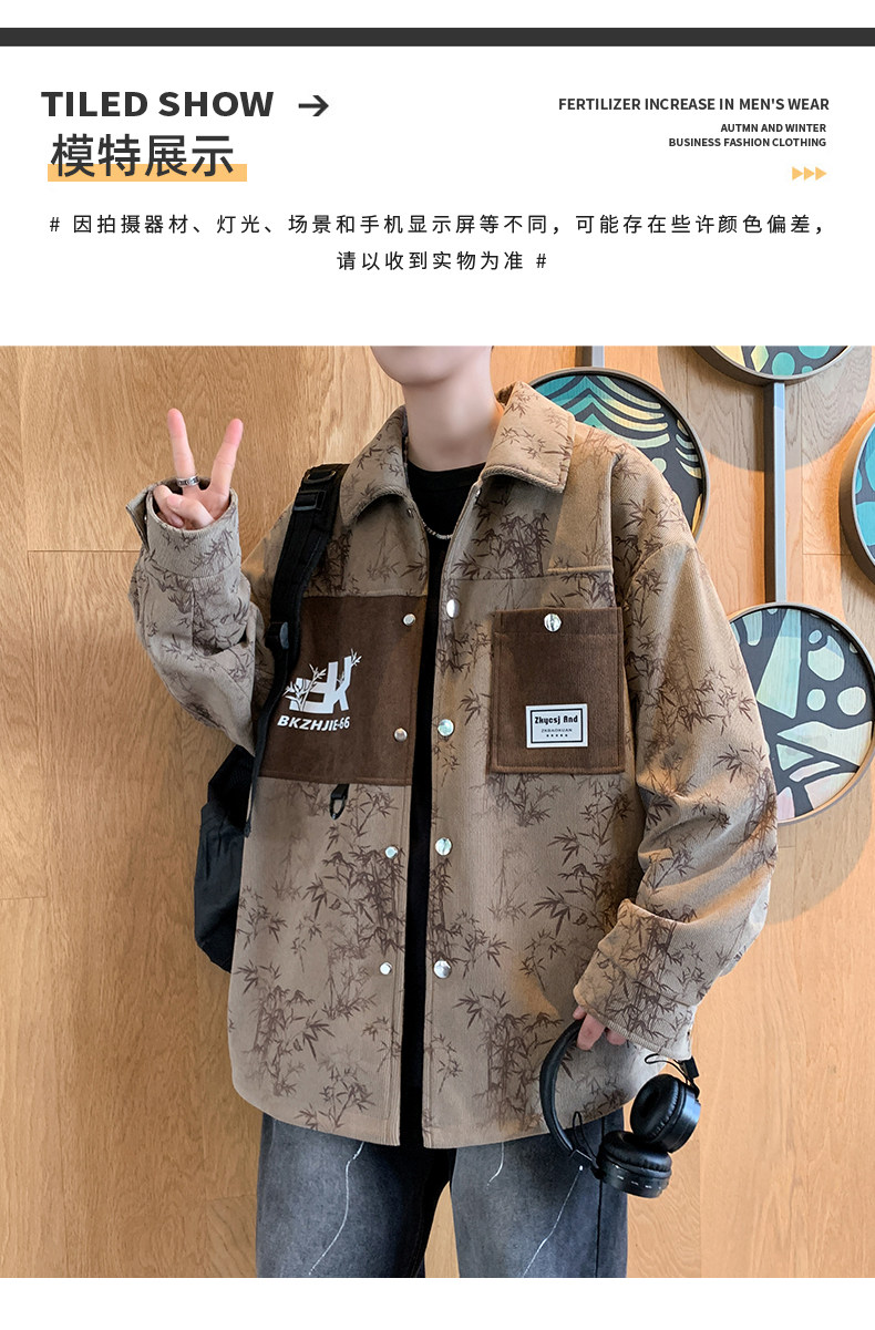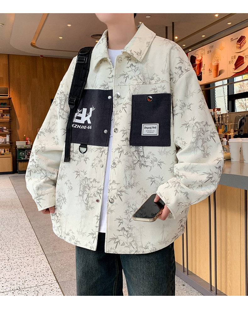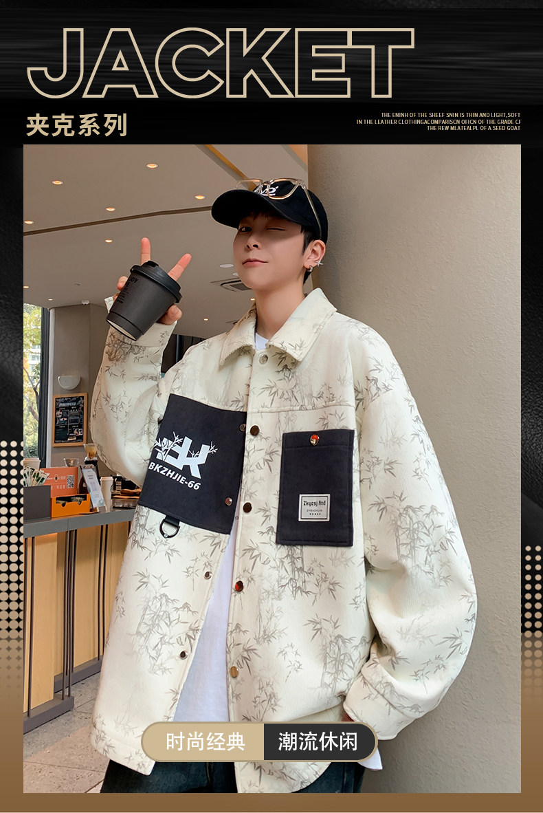 Men's Spring and Autumn Jacket Trendy Brand 2026 New Slim Fit Lapel Printed Men's Short Jacket Stylish Jacket