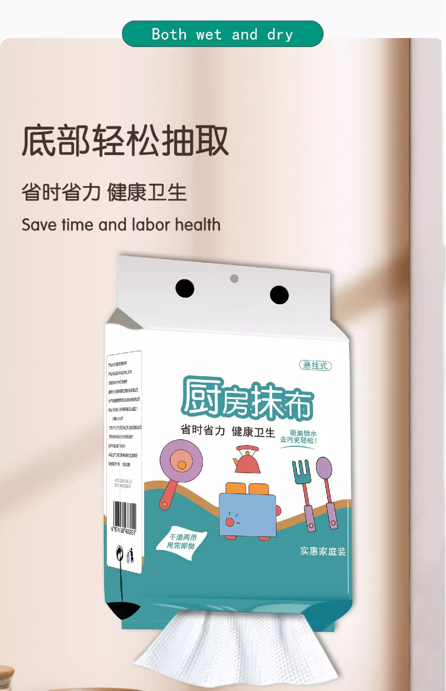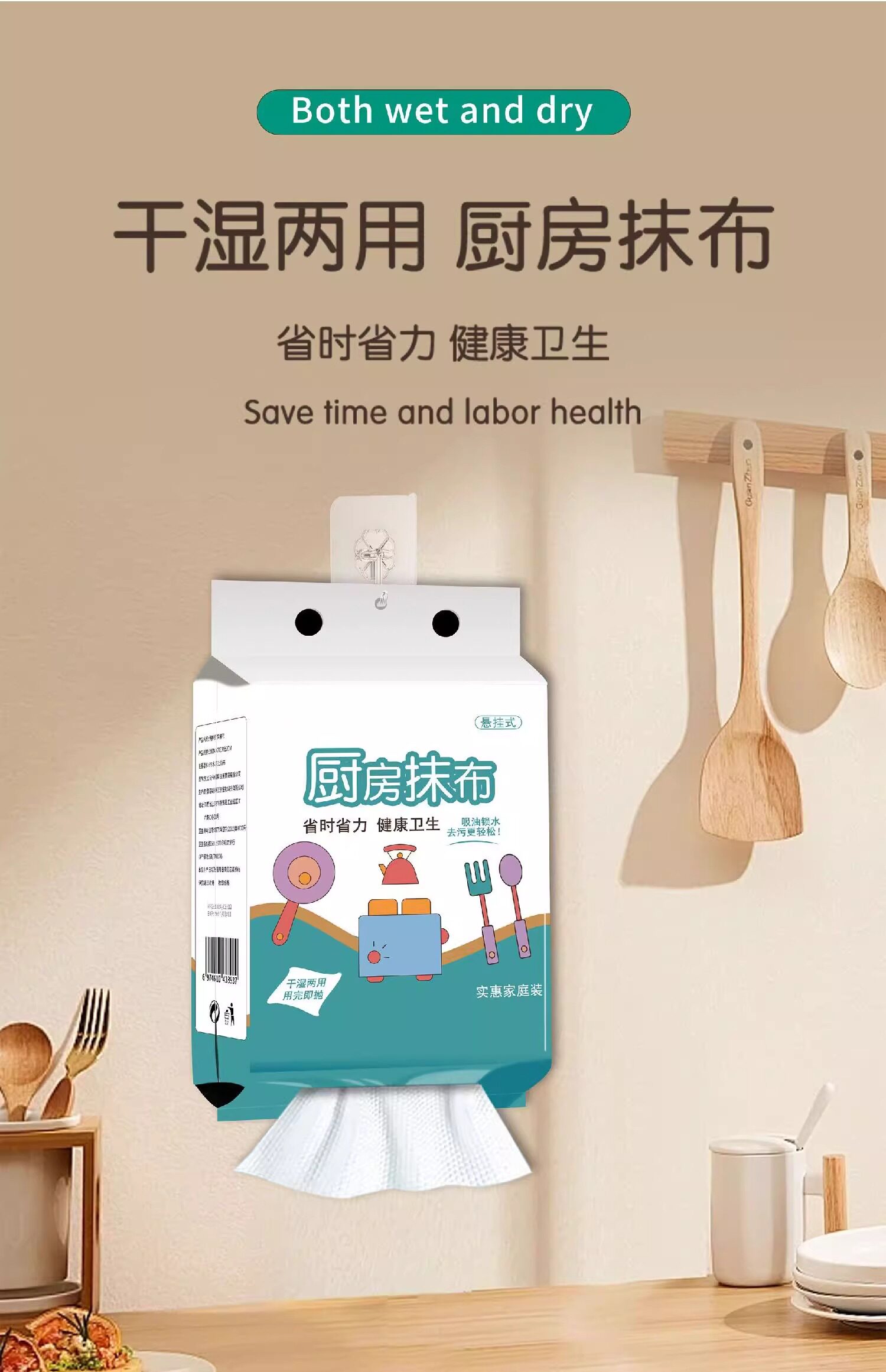 Lazy Rag Disposable Kitchen Dishwashing Towel, Dual-Use for Dry and Wet, Thickened Hanging Type Oil-Wiping Dishcloth Paper Towel