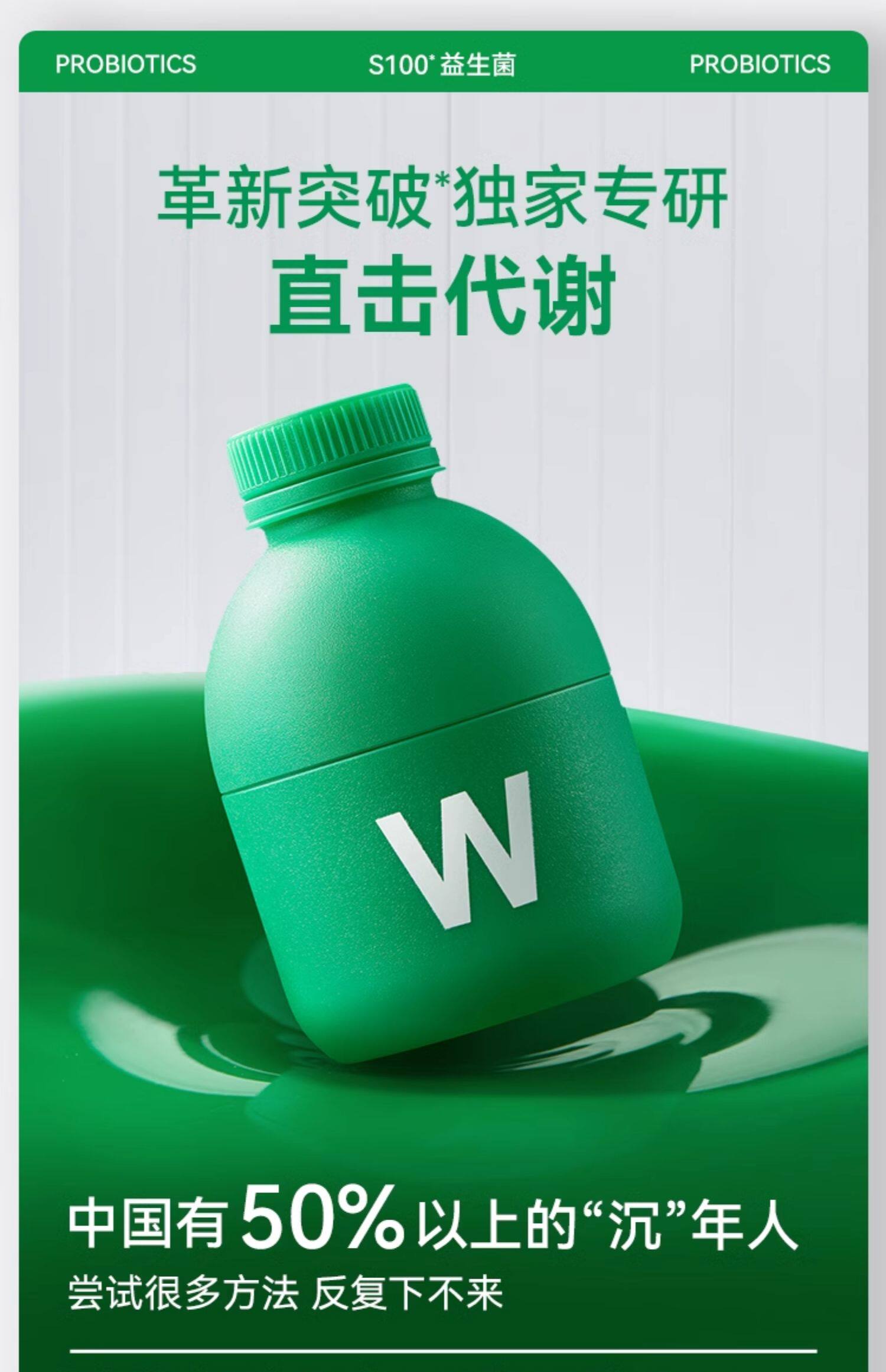 Wonderlab S100 Probiotics Green Bottle Adult Metabolism Weight Management 180 Bottles Official Genuine Product