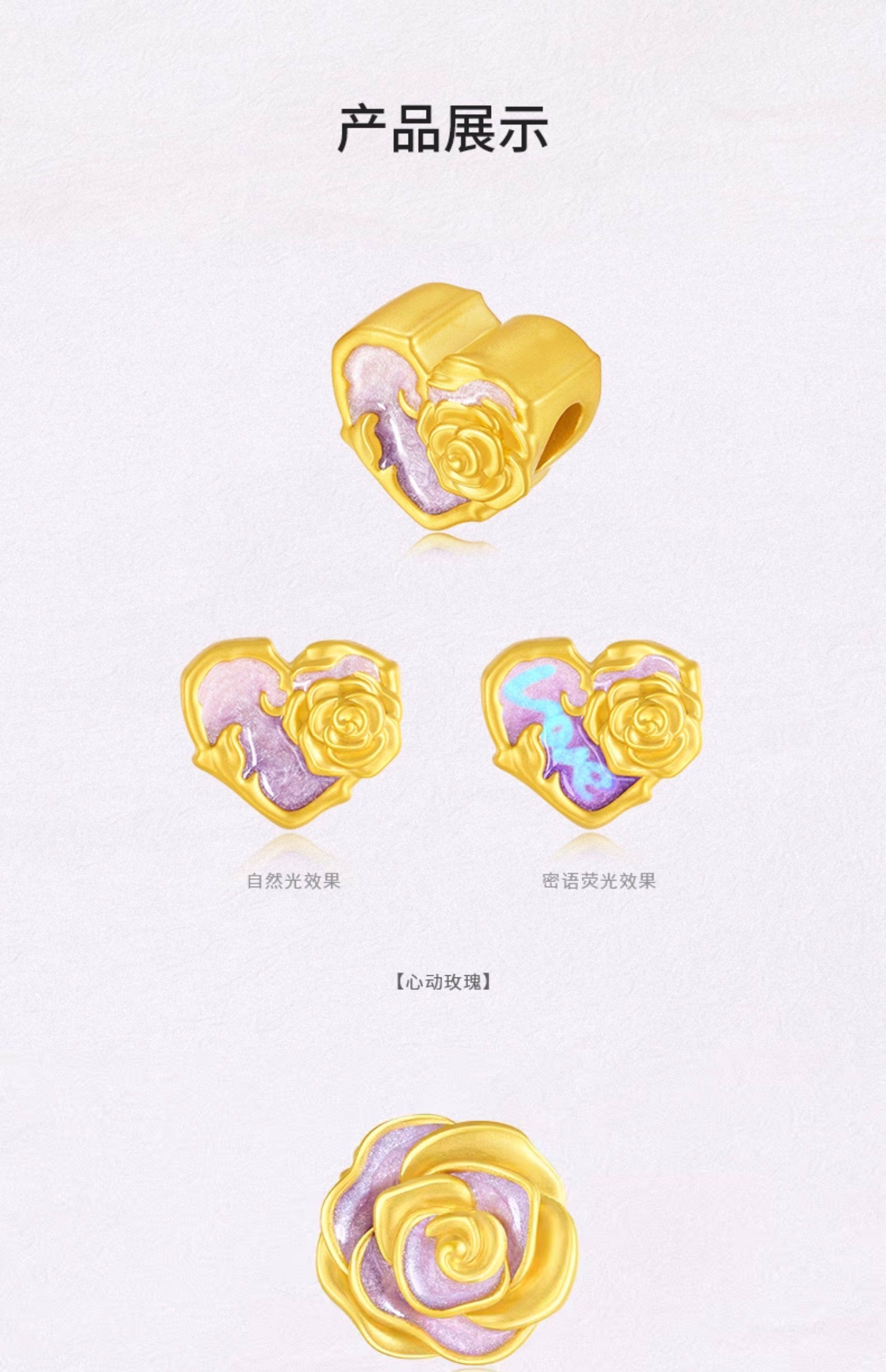 Zhou Dasheng X Monet Collaboration Gold Fortune Bead Women's Heartbeat Rose Fluorescent Enamel Pure Gold Bracelet Birthday Gift