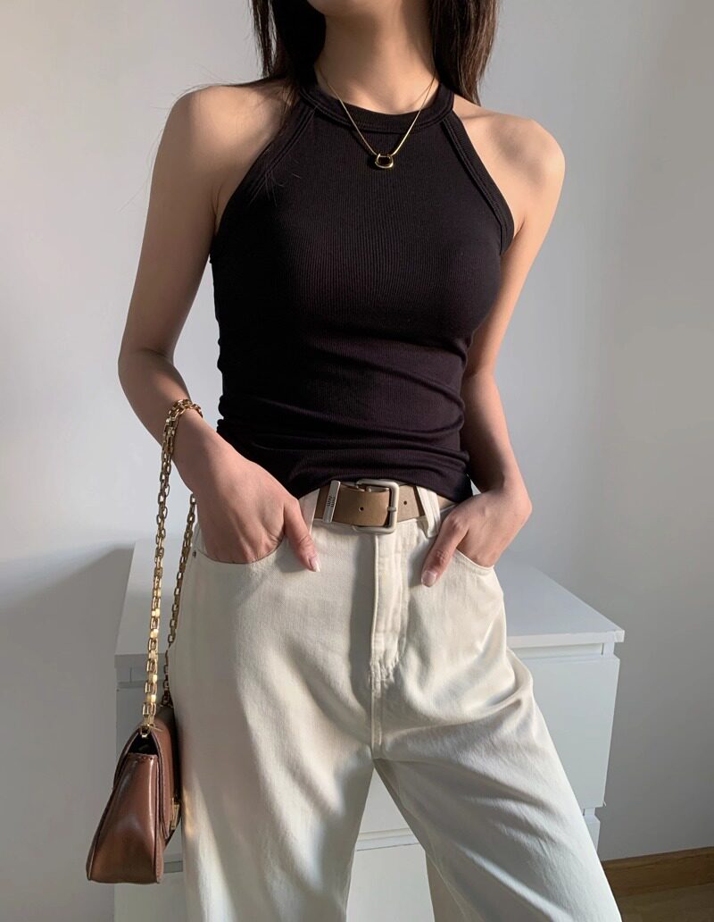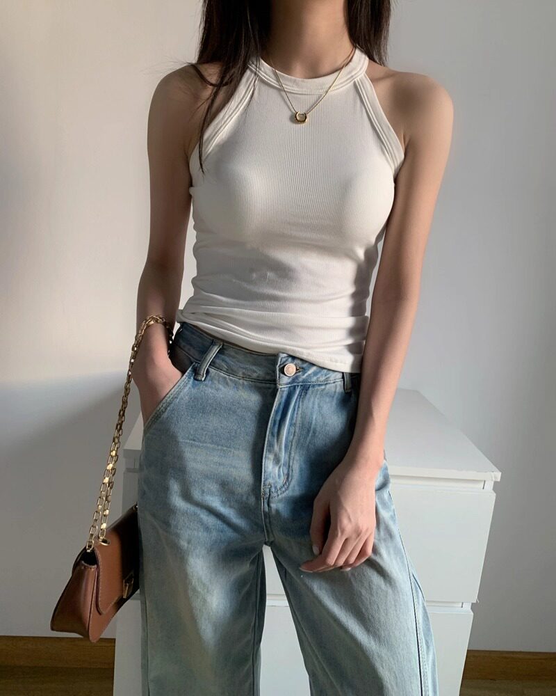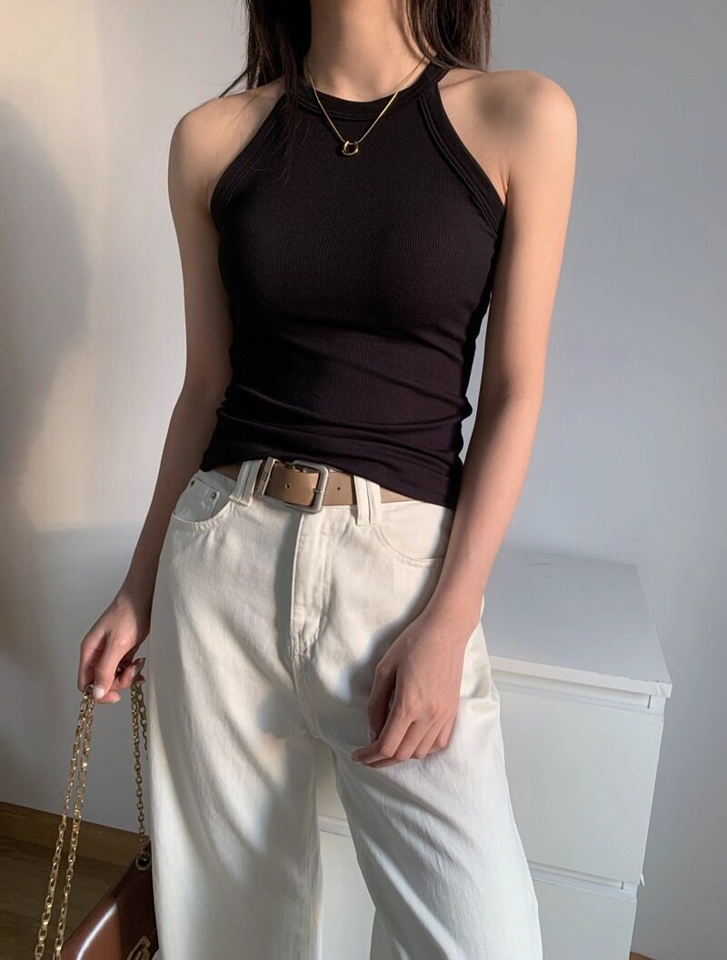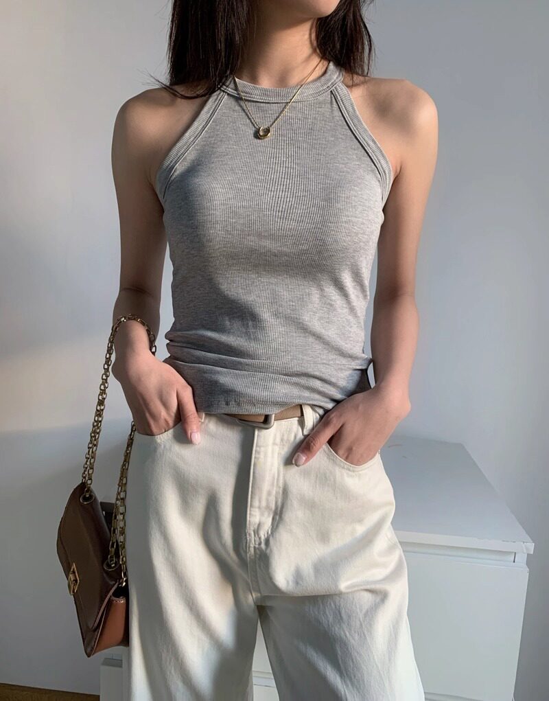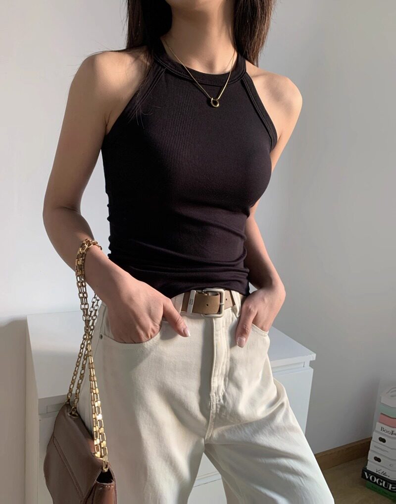 Halter Neck Camisole T-Shirt for Women, 2025 New Style, Sexy One-Piece with Built-In Bra Pads, Beautiful Back, Outerwear Top for Summer