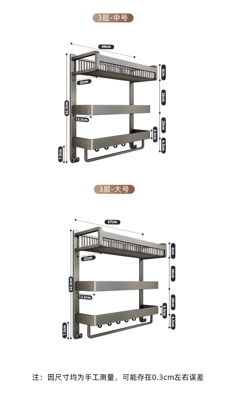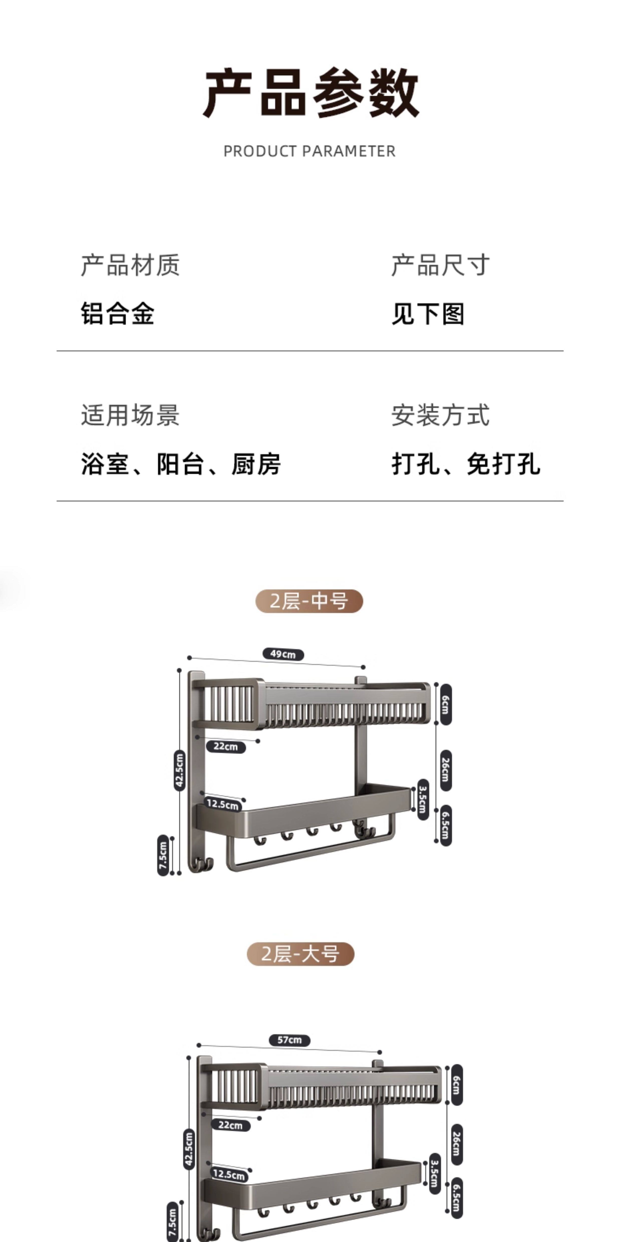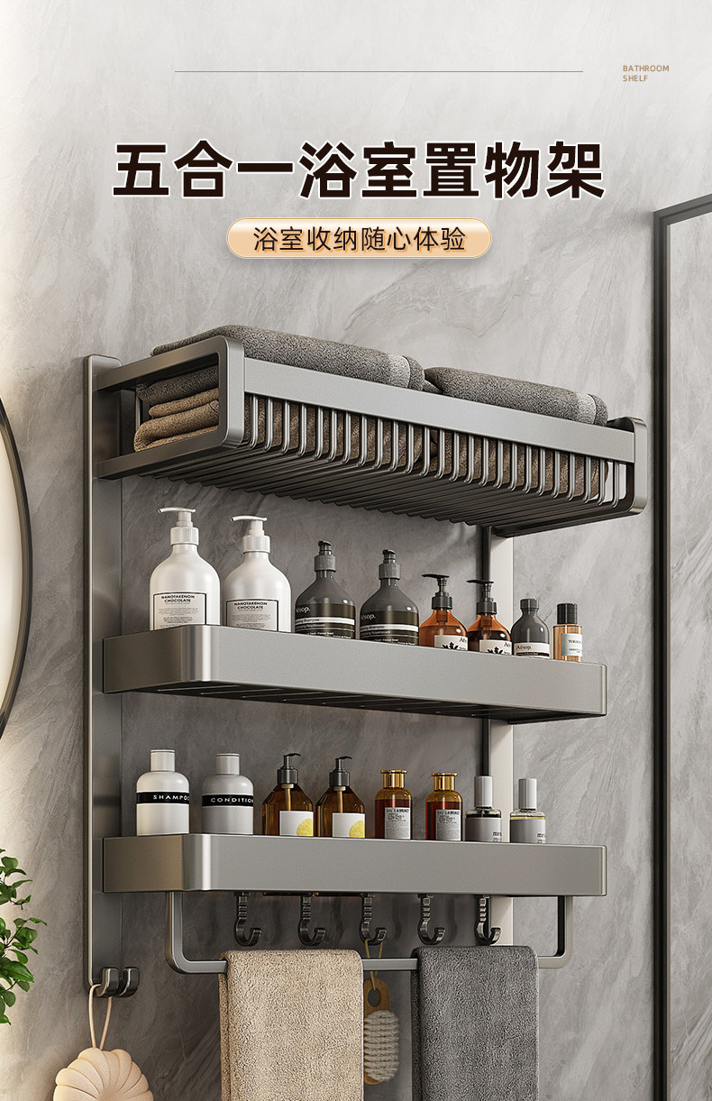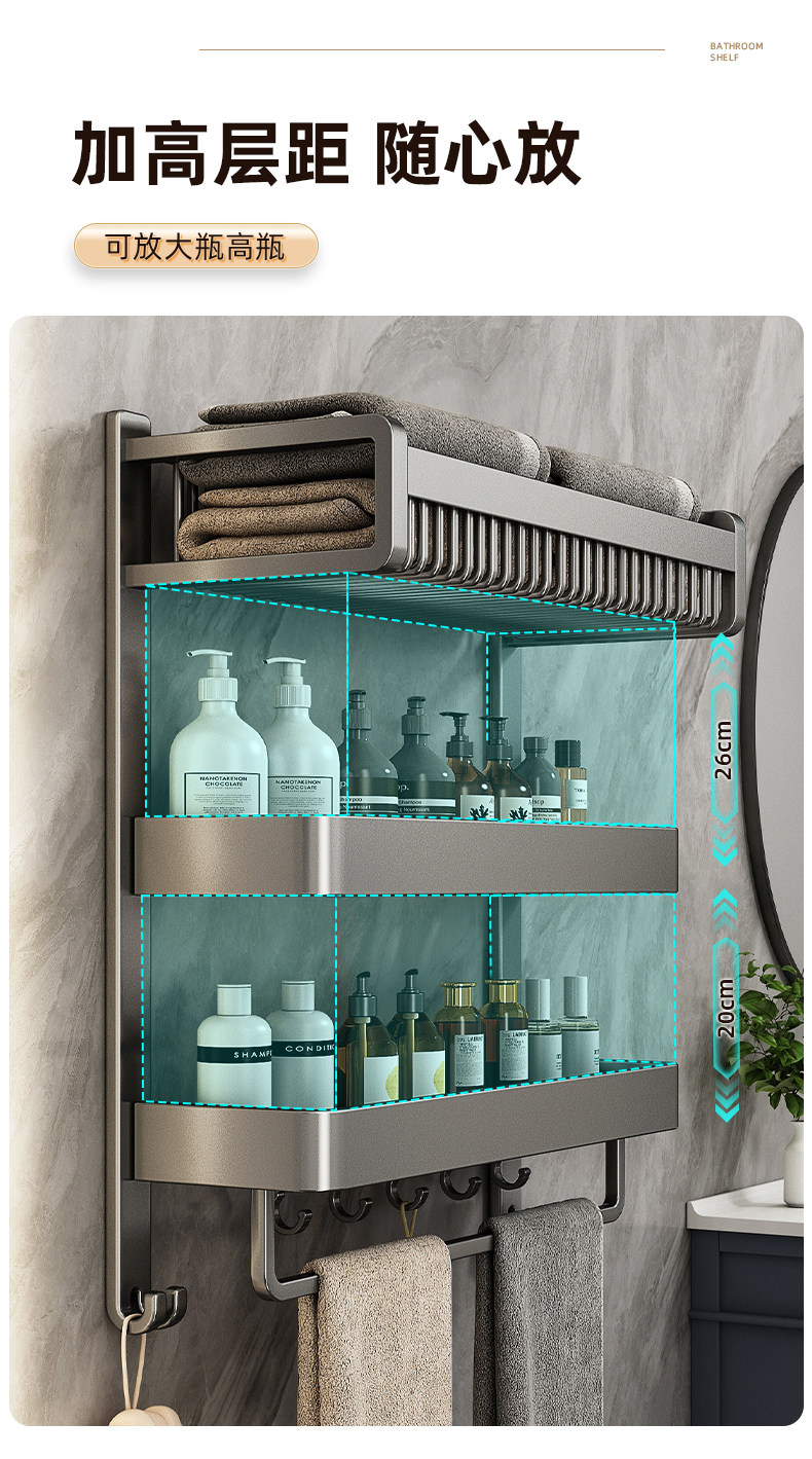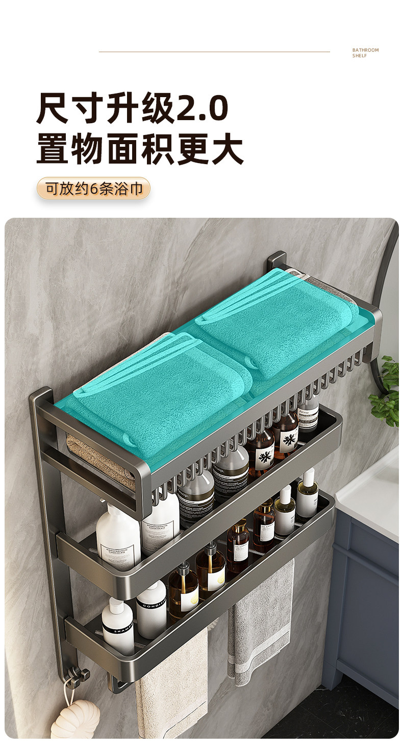 Color Classification [Double Layer❤49 cm]Bath Towel Rack + Storage Rack + Towel Bar + Hook*5,[Double Layer ❤ 57 cm]Bath Towel Rack + Storage Rack + Towel Bar + Hook*5,[Three Floors❤49 cm]Bath Towel Rack + Storage Rack*2+Towel Bar+Hook*5,[Three Floors❤57 cm]Bath Towel Rack + Storage Rack*2+Towel Bar+Hook*5