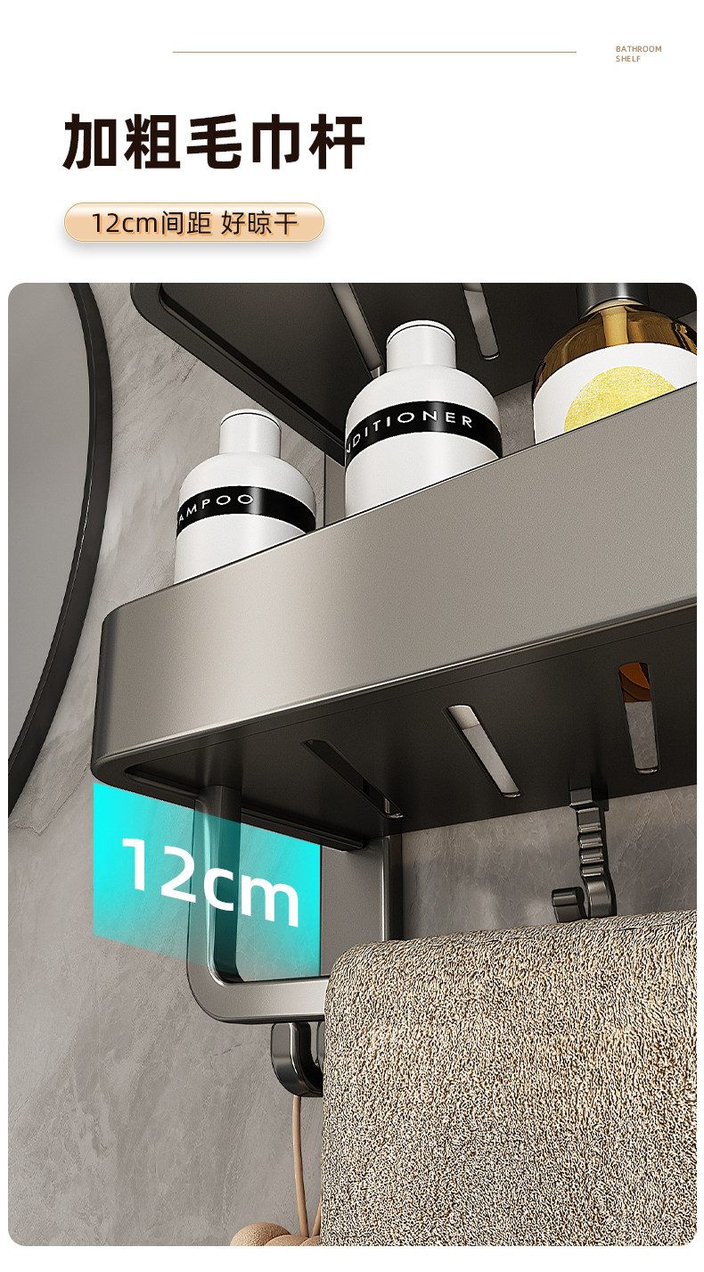 Towel Rack Bathroom Storage Rack Integrated Punch-Free Wall-Mounted Bathroom Toilet Shower Room Space Aluminum Towel Rack