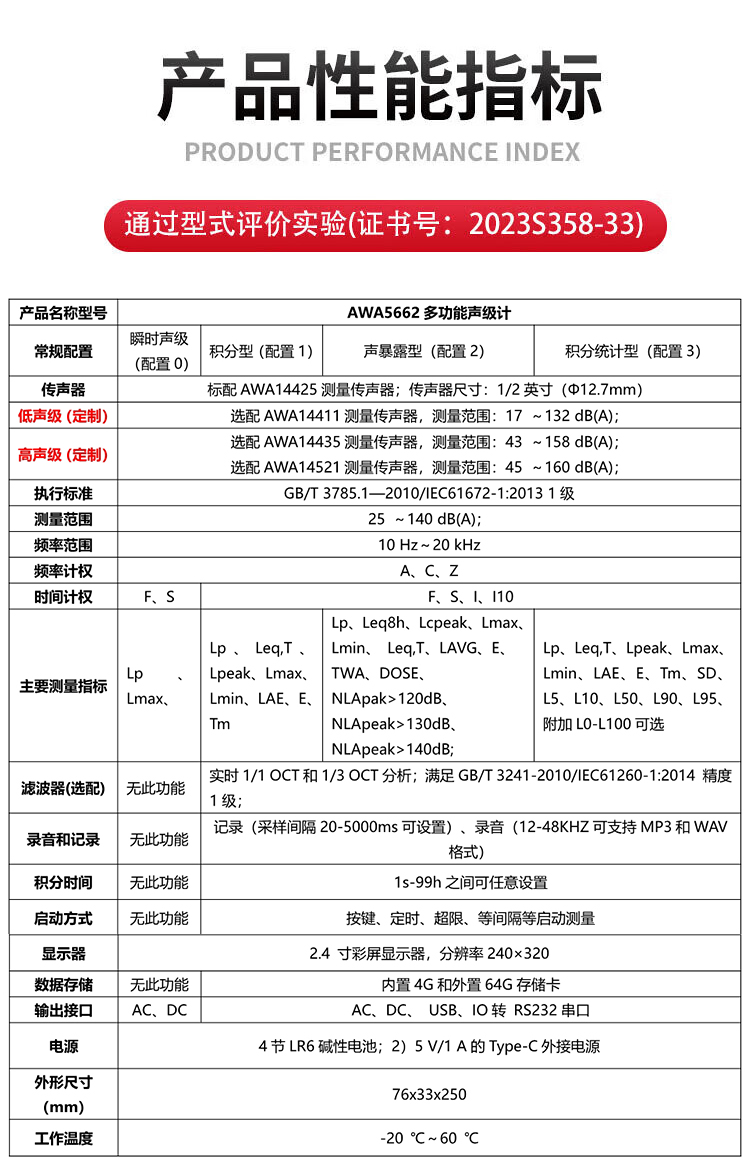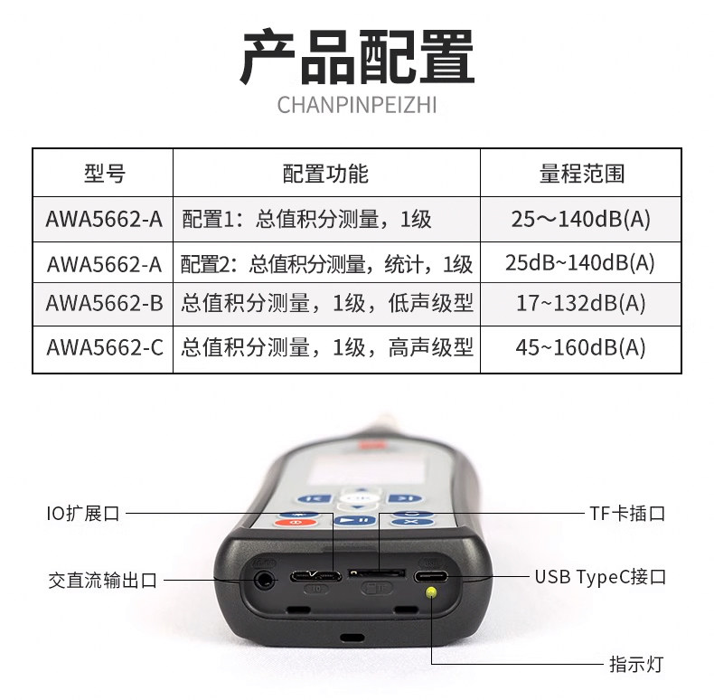 Color Classification Awa5662-A Universal Type (Configuration 1, Level 1, Points) a,Awa5662-A (Configuration 2, Points + Statistics),Awa5662-B (Configuration 1, Level 1, Low Sound Level, Points),Awa5662-C (Configuration 1, Level 1, High Sound Level, Points),Awa 5662-0,Awa5662-2 (Sound Exposure),Ysd136 Intrinsically Safe Sound Level Meter (Configuration 1: Personal Sound Exposure, Integration, and Statistical Analysis),Ysd136 Intrinsically Safe Sound Level Meter (Configuration 2: Personal Sound Exposure, Integrating, Statistical Analysis, 1/1 Octave),Ysd136 Intrinsically Safe Sound Level Meter (Configuration 3: Personal Sound Exposure, Integrating, Statistical Analysis, 1/3 Octave),Ysd136 Intrinsically Safe Sound Level Meter (Configuration 4, Personal Sound Exposure, Integration, Statistical Analysis 1/1Oct, 1/3Oct),Ysd136 Intrinsically Safe Sound Level Meter (Mining Grade, Configuration 1, Personal Sound Exposure, Integral, Statistical Analysis),Ysd136 Intrinsically Safe Sound Level Meter (Mining Type, Configuration 2, Personal Sound Exposure, Integration, Statistical Analysis, 1/1Oct),Ysd136 Intrinsically Safe Sound Level Meter (Mine Type, Configuration 3, Personal Sound Exposure, Integration, Statistical Analysis, 1/3Oct),Ysd136 Intrinsically Safe Sound Level Meter (Mining Type, Configuration 4, Personal Sound Exposure, Integration, Statistical Analysis, 1/1Oct, 1/3Oct)