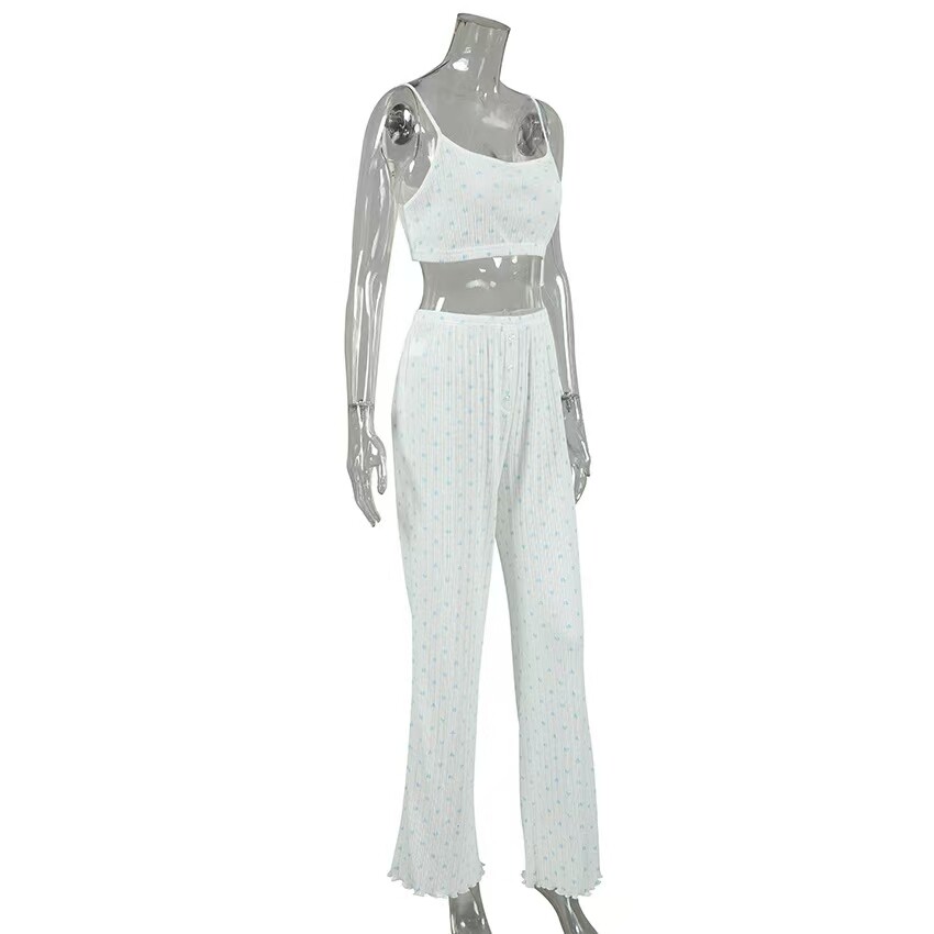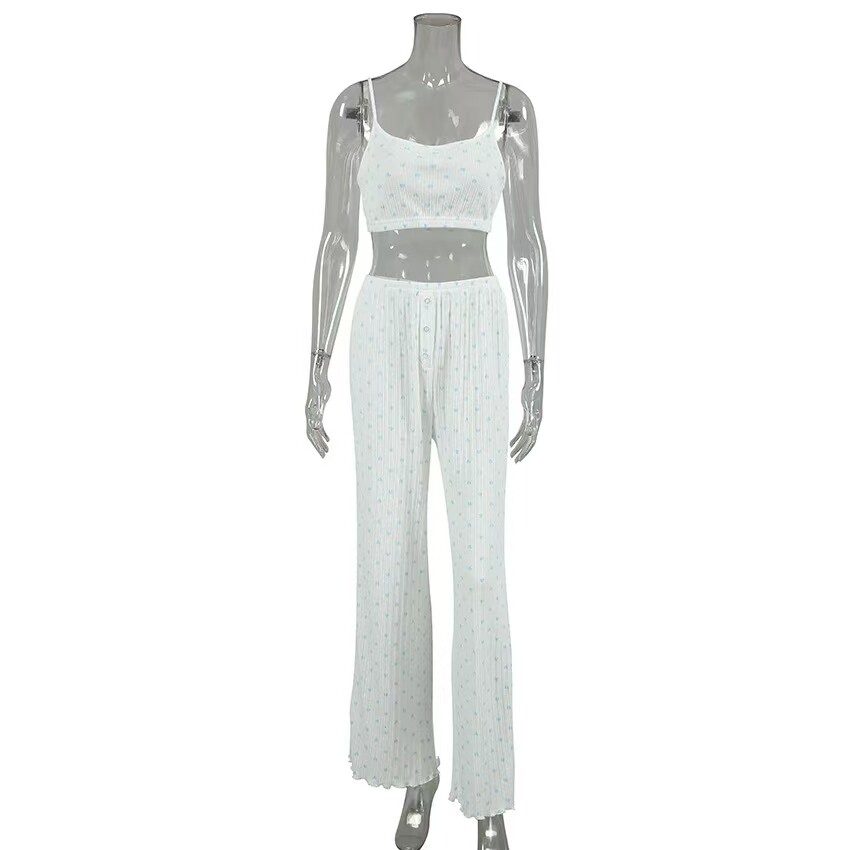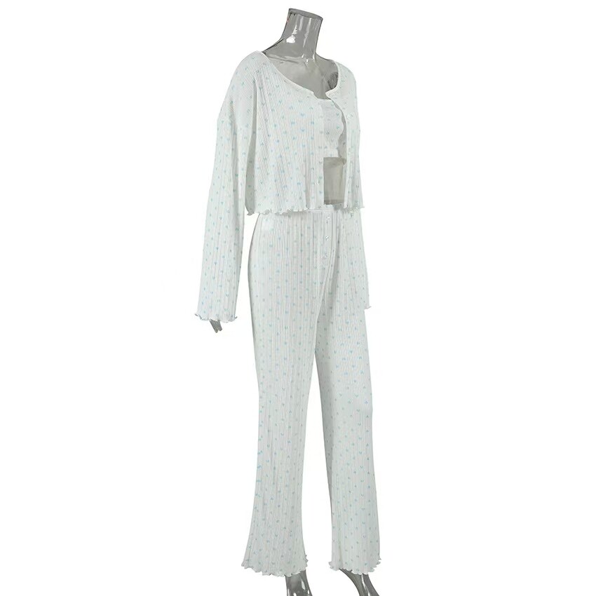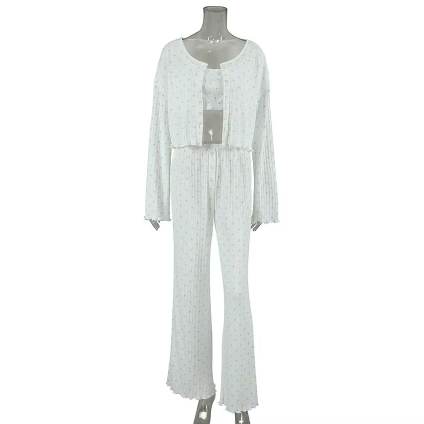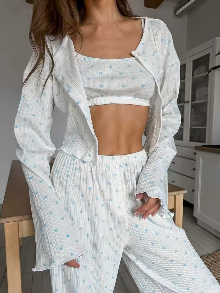 European and American Style Heart Print Top, Underwear, and Long Pants Three-Piece Set Printed Three Piece Home Suit