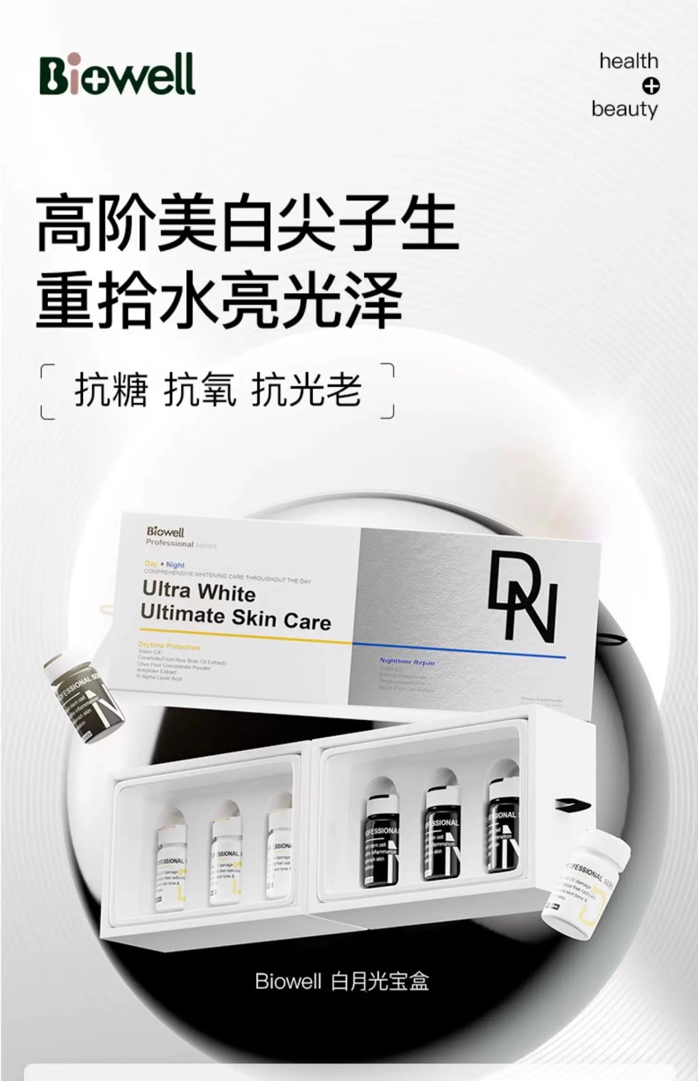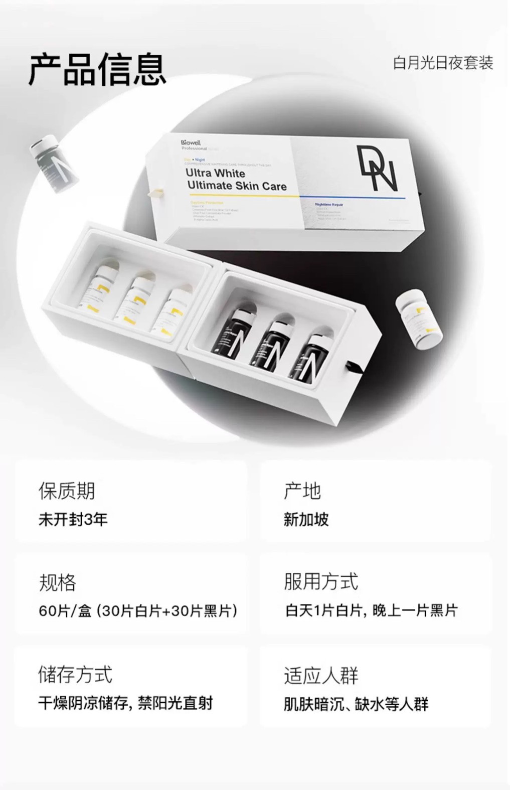 Biowell white plus black whitening pills singapore white moonlight treasure box day and night combination set 60 pills/box