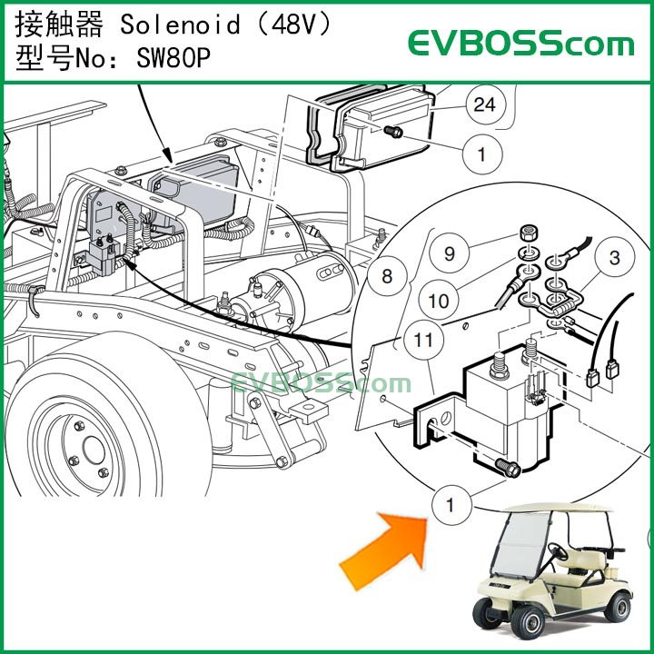 Sw80P Contactor Solenoid/Clubcar Ds Golf Cart 48V Relay 101908701