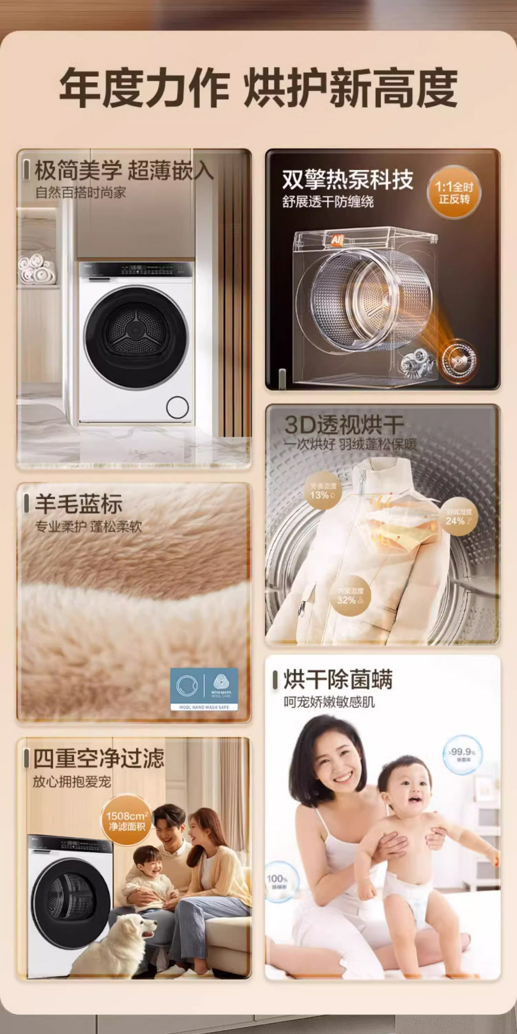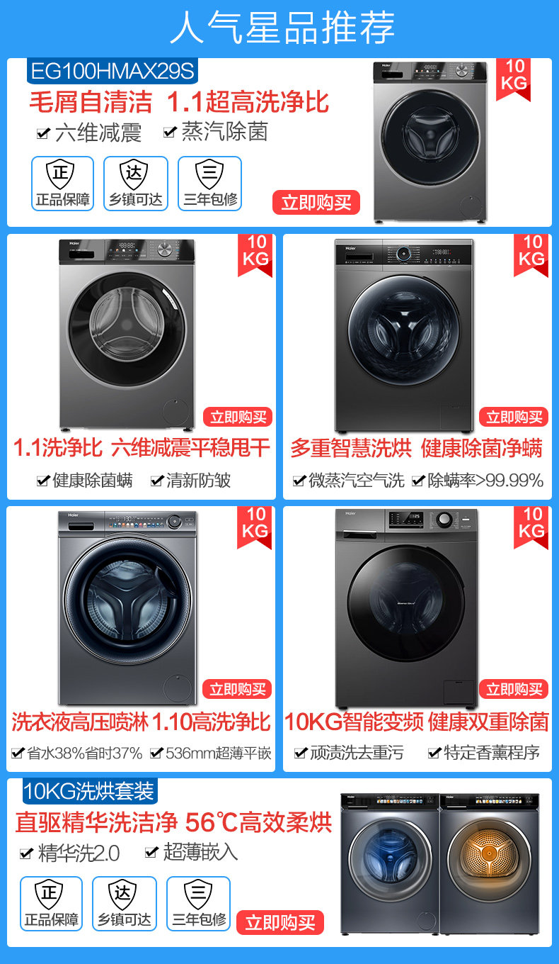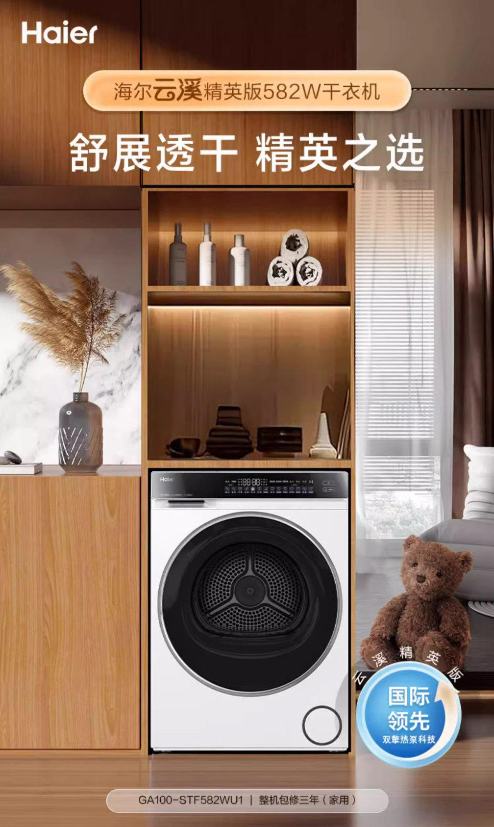 Yunxi high-luxury version Haier ultra-thin 3D dual-engine heat pump 10kg household fully automatic tumble dryer 582W