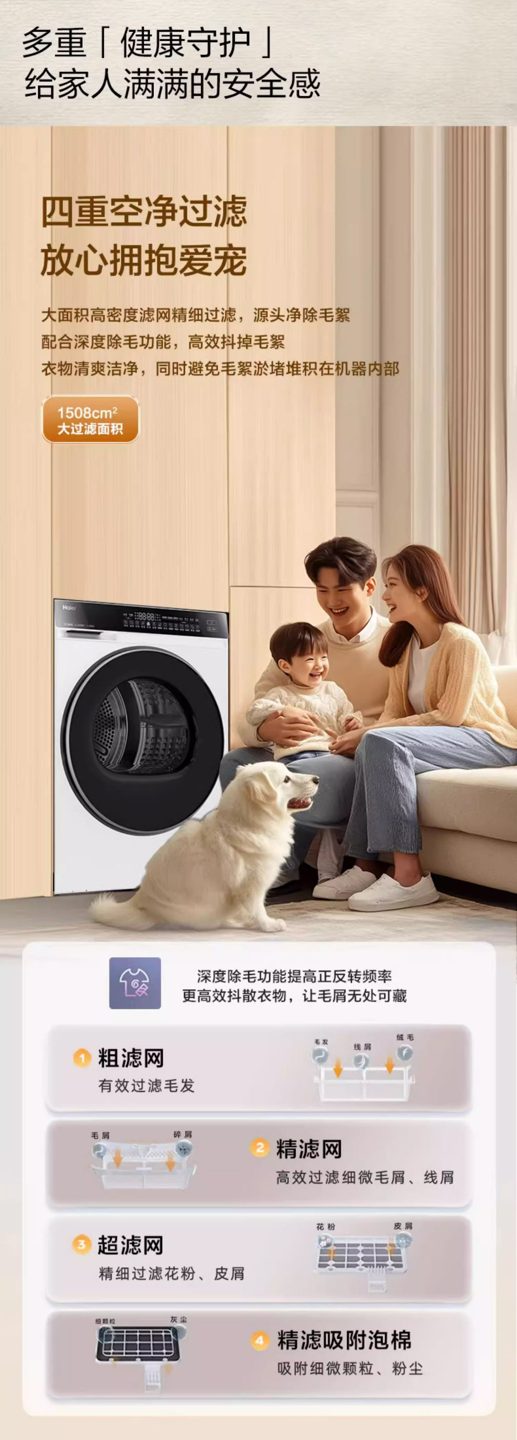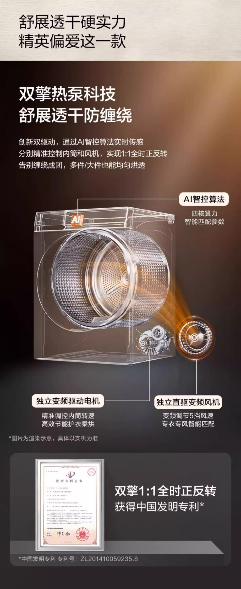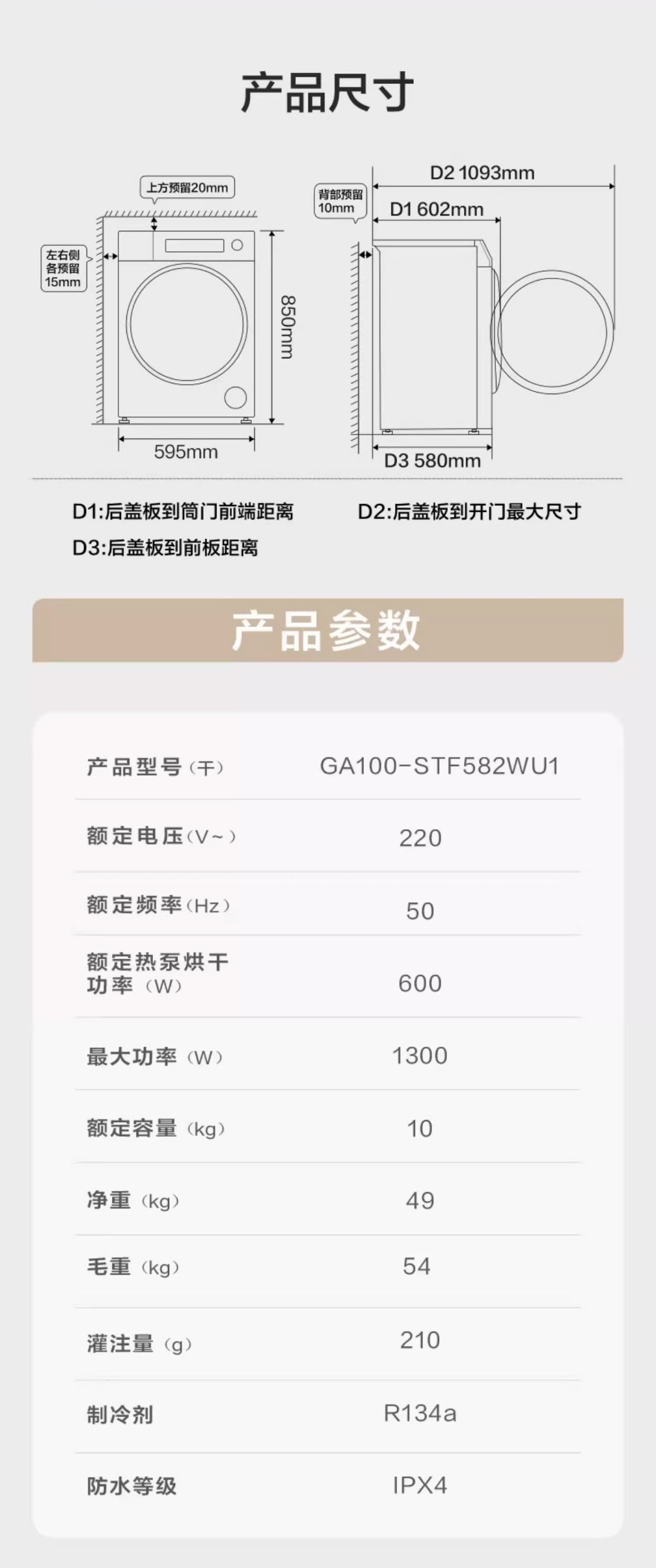 Yunxi high-luxury version Haier ultra-thin 3D dual-engine heat pump 10kg household fully automatic tumble dryer 582W