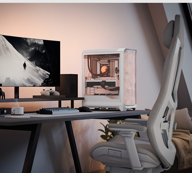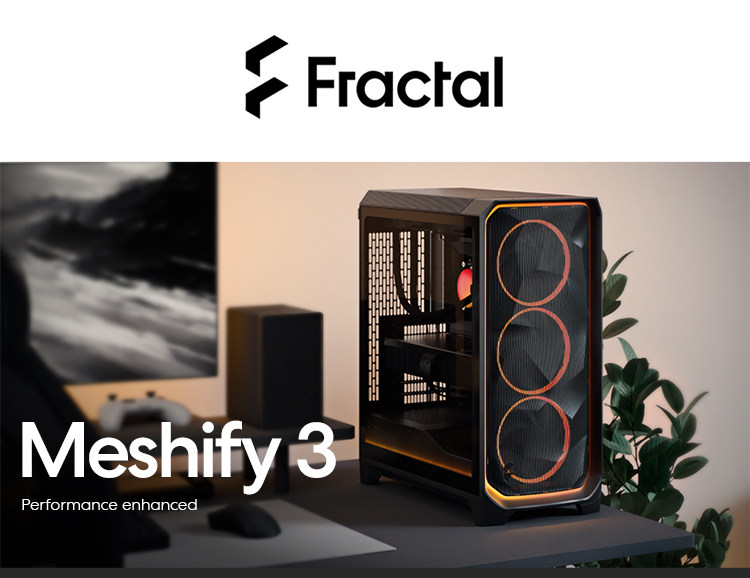 Fractal Technology Fd Case Meshify 3 Mid-Tower Air-Cooled Rgb Water-Cooled Desktop Computer with Bottom-Mounted Side-Transparent White Design