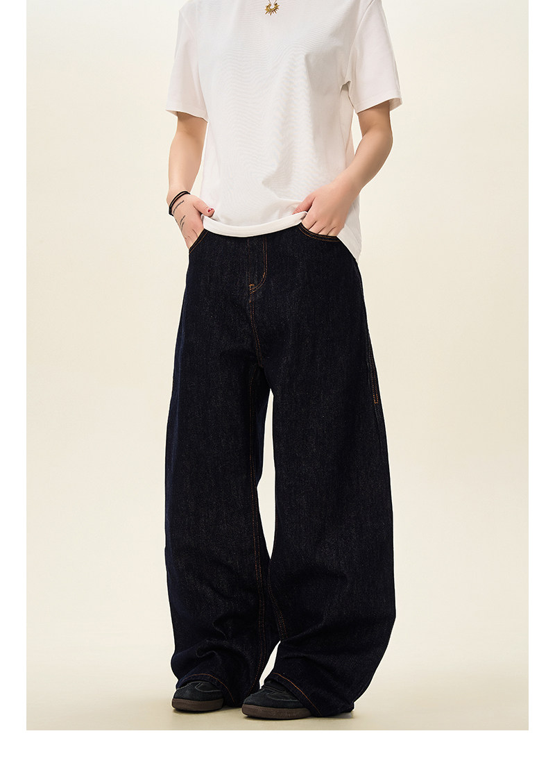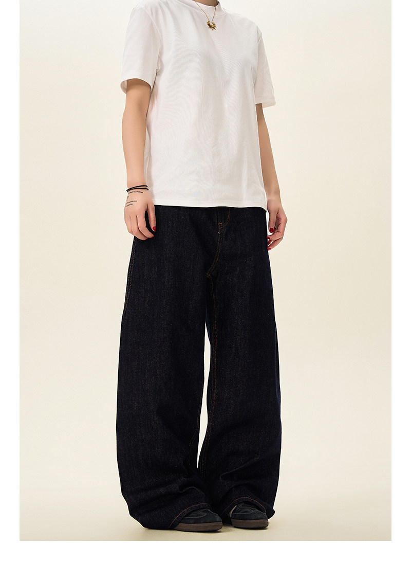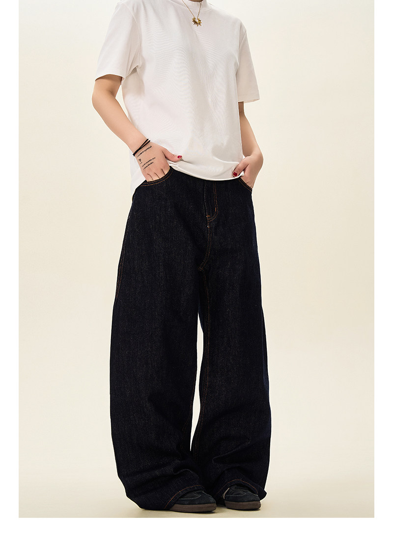 A Carton American-Style Raw Denim Straight-Leg Jeans for Men, Vintage Loose Fit, Wide-Leg Casual Cleanfit Pants