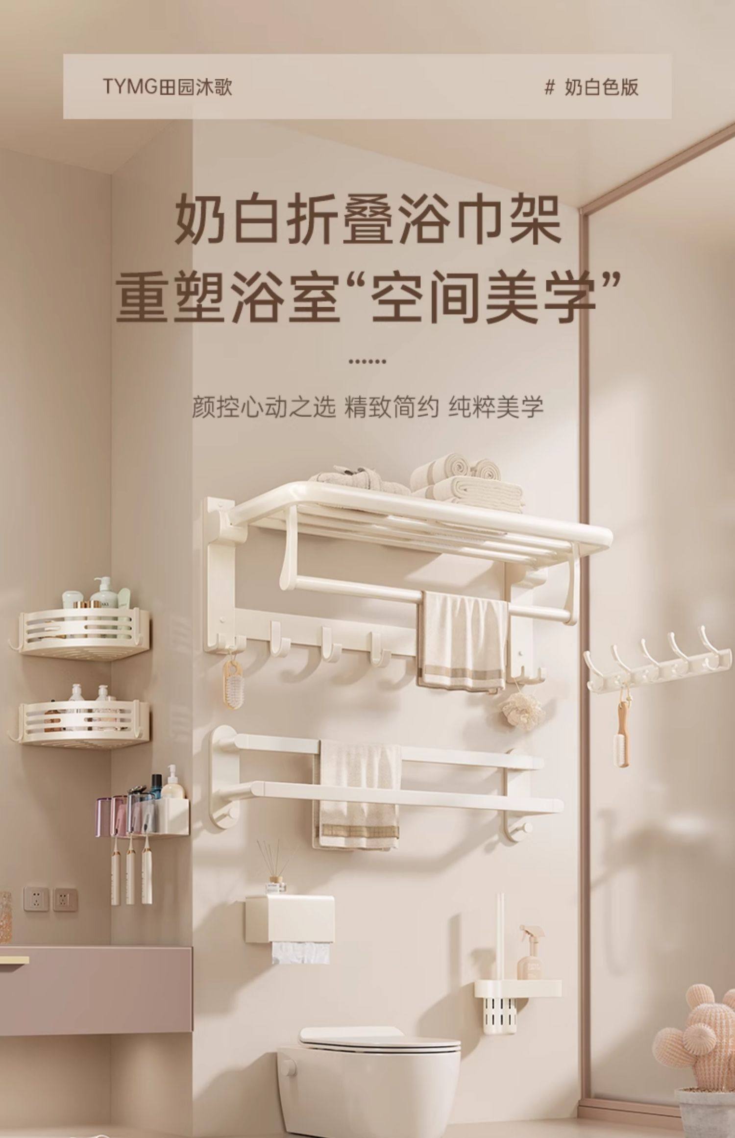 German Imported Cream-Colored Towel Rack, Bathroom No-Drill Storage Rack, White Washroom Toilet Towel Rack