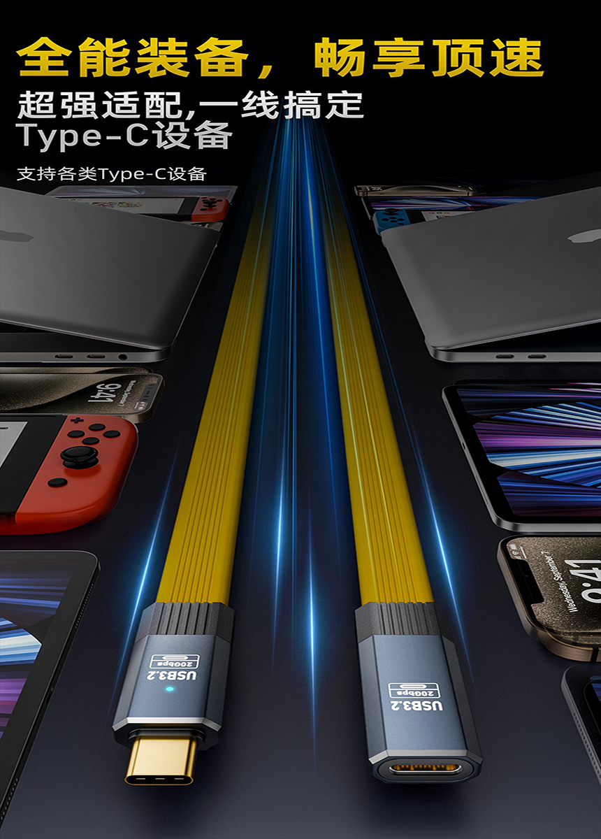 Color Classification 0.2M/Black★Type-C Male to Female Soft Flat Wire★Support 100W/20Gbps/8K,0.5M/Black★Type-C Male to Female Soft Flat Wire★Support 100W/20Gbps/8K,0.8M/Black★Type-C Male to Female Soft Flat Wire★Support 100W/20Gbps/8K,0.2M/Yellow★Type-C Male to Female Soft Flat Wire★Support 100W/20Gbps/8K,0.5M/Yellow★Type-C Male to Female Soft Flat Wire★Support 100W/20Gbps/8K,0.8M/Yellow★Type-C Male to Female Soft Flat Wire★Support 100W/20Gbps/8K
