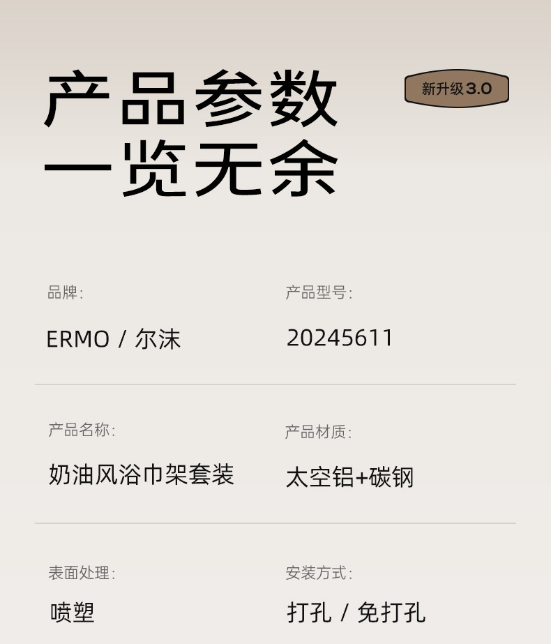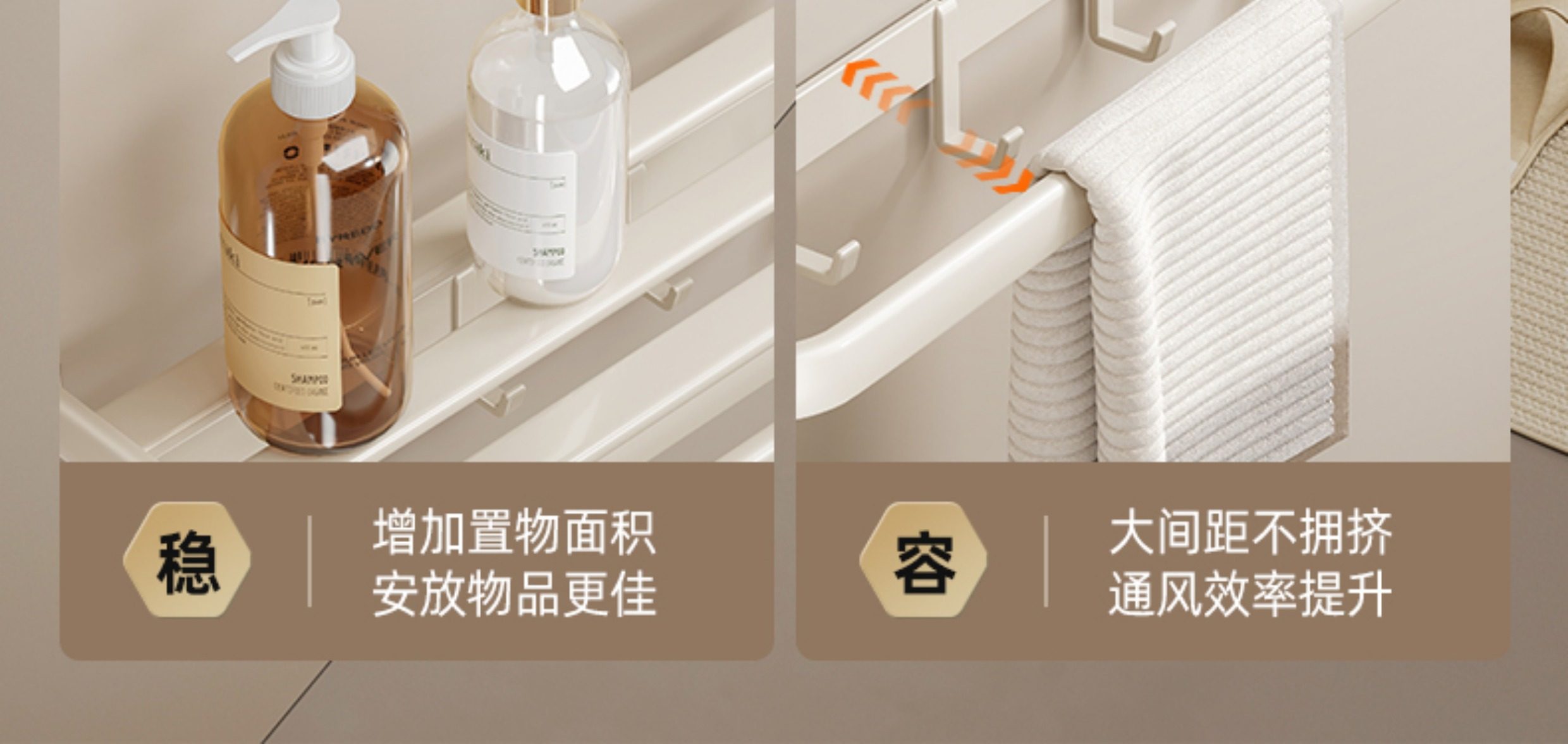 German Imported Cream-Colored Towel Rack, Bathroom No-Drill Towel Holder, Bathroom Storage Hanging Rod, Space Aluminum