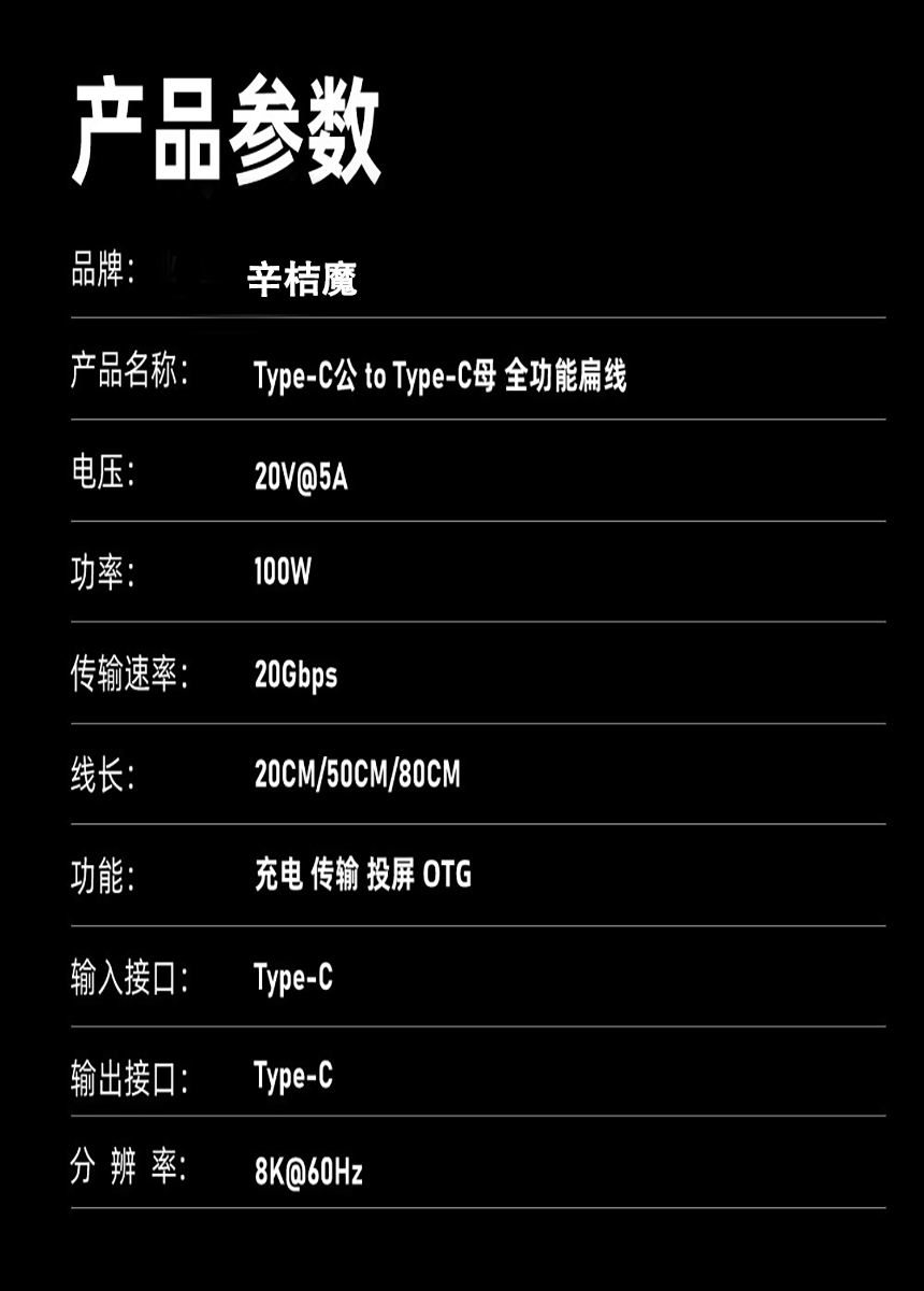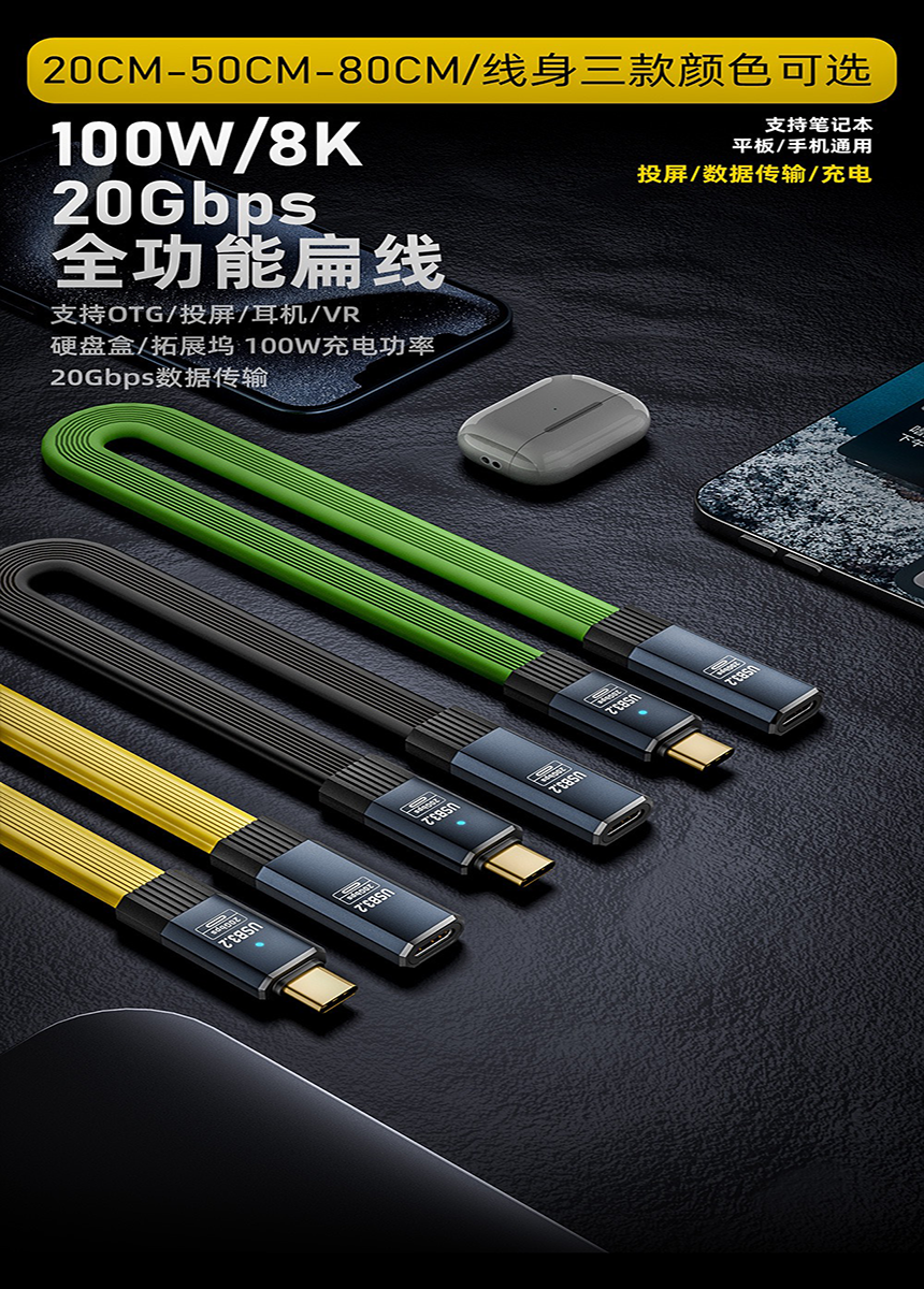 Color Classification 0.2M/Black★Type-C Male to Female Soft Flat Cable★Support 100W/20Gbps/8K,0.5M/Black★Type-C Male to Female Soft Flat Cable★Support 100W/20Gbps/8K,0.8M/Black★Type-C Male to Female Soft Flat Cable★Support 100W/20Gbps/8K,0.2M/Yellow★Type-C Male to Female Soft Flat Cable★Support 100W/20Gbps/8K,0.5M/Yellow ★ Type-C Male to Female Soft Flat Cable ★ Support 100W/20Gbps/8K,0.8M/Yellow★Type-C Male to Female Soft Flat Cable★Support 100W/20Gbps/8K,0.2m/[Black]Type-C Full-Function Soft Flat Cable★100W Power Supply★20Gbps Rate★8K Video Transmission,0.2m/[Yellow]Type-C Full-Function Soft Flat Cable★100W Power Supply★20Gbps Rate★8K Video Transmission,0.2m/[Green]Type-C Full-Function Soft Flat Cable★100W Power Supply★20Gbps Rate★8K Video Transmission,0.5m/[Black]Type-C Full-Function Soft Flat Cable★100W Power Supply★20Gbps Rate★8K Video Transmission,0.5m/[Yellow]Type-C Full-Function Soft Flat Cable★100W Power Supply★20Gbps Rate★8K Video Transmission,0.5m/[Green]Type-C Full-Function Soft Flat Cable★100W Power Supply★20Gbps Rate★8K Video Transmission,0.8m/[Black]Type-C Full-Function Soft Flat Cable★100W Power Supply★20Gbps Rate★8K Video Transmission,0.8m/[Yellow]Type-C Full-Function Soft Flat Cable★100W Power Supply★20Gbps Rate★8K Video Transmission,0.8m/[Green]Type-C Full-Function Soft Flat Cable★100W Power Supply★20Gbps Rate★8K Video Transmission