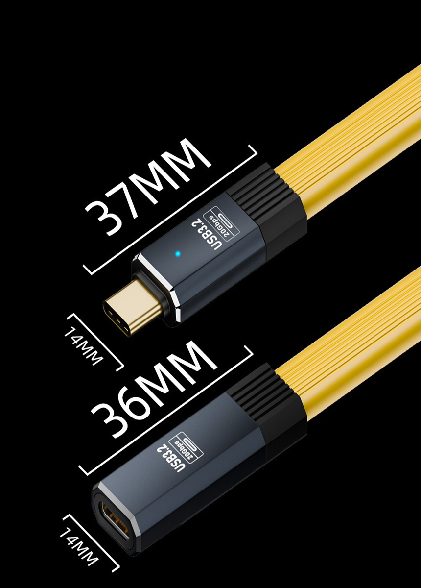 Type-C Extension Cable Male to Female Usb3.2 Flexible Flat Data Cable 20Gbps Charging Video Transmission Hard Drive Enclosure iPhone 15 /16 Mobile Phone Computer Docking Station Switch Base Adapter Cable