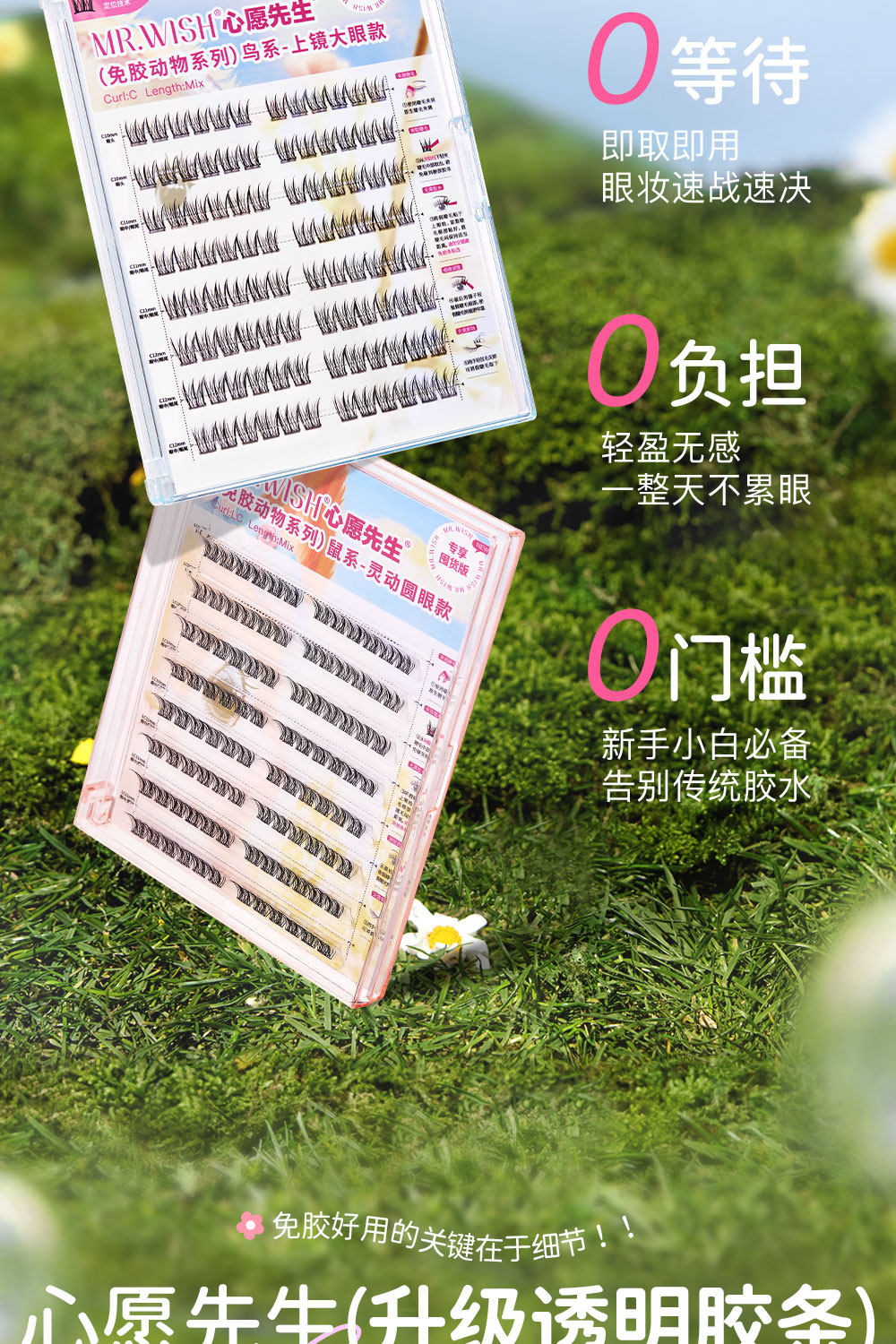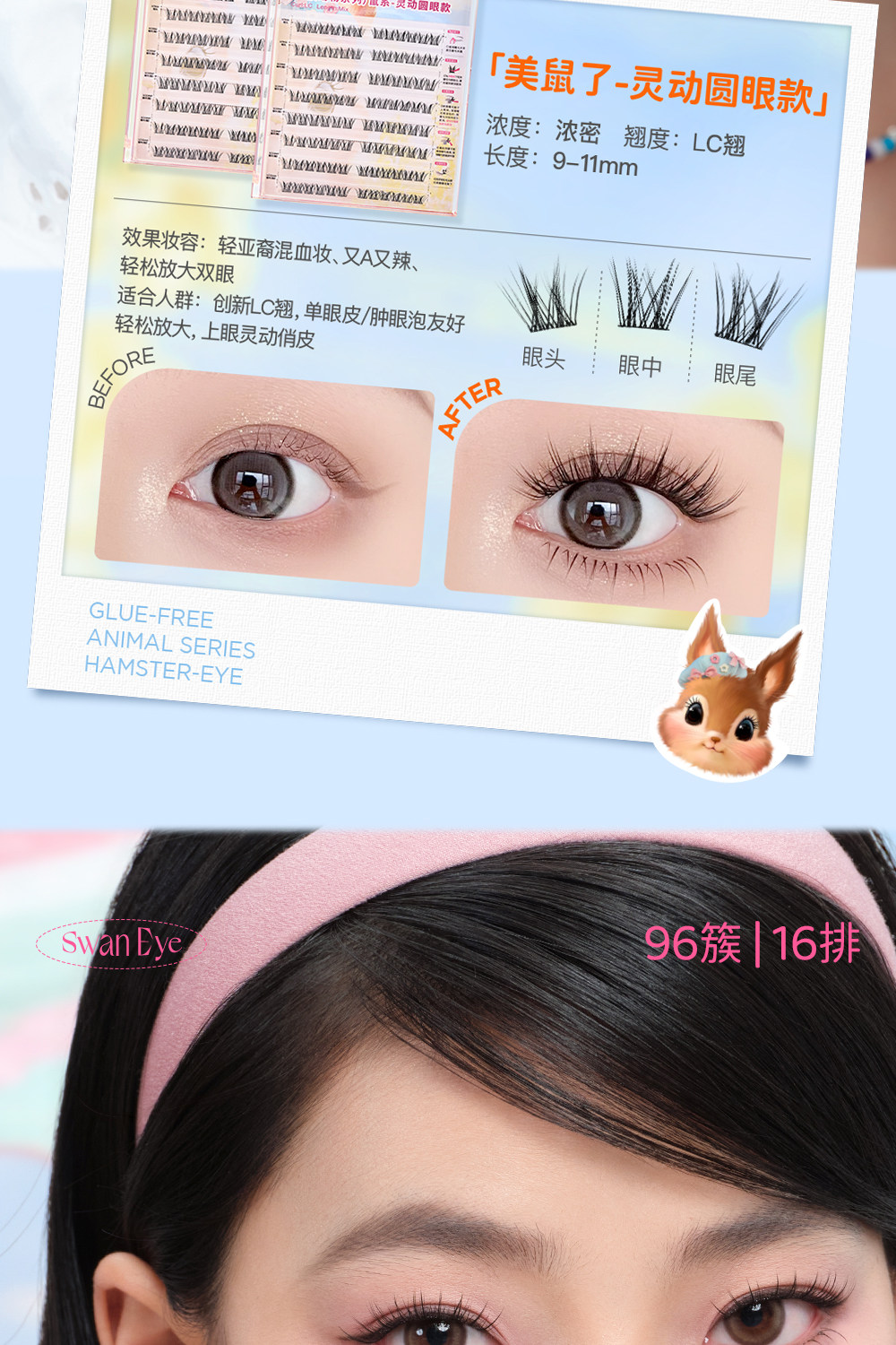 [Glue-Free Animal-Themed Large Box Pack/96 Clusters]Mr. Wish's Natural-Looking Cartoon Girl Group False Eyelashes with Distinct Strands