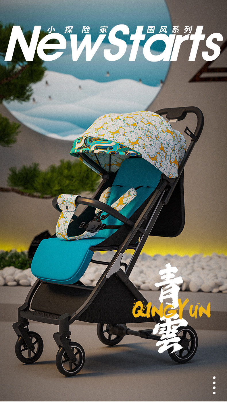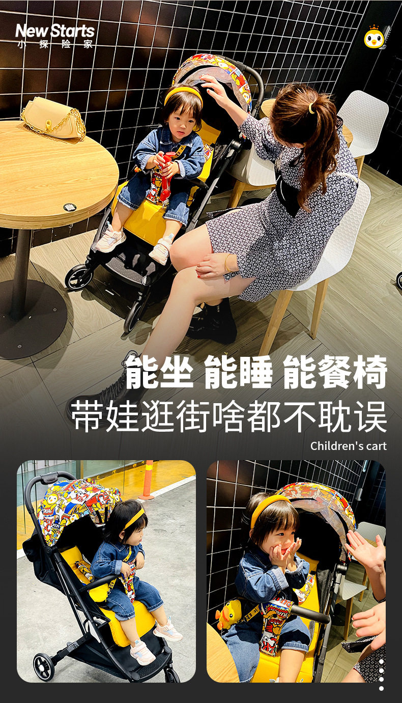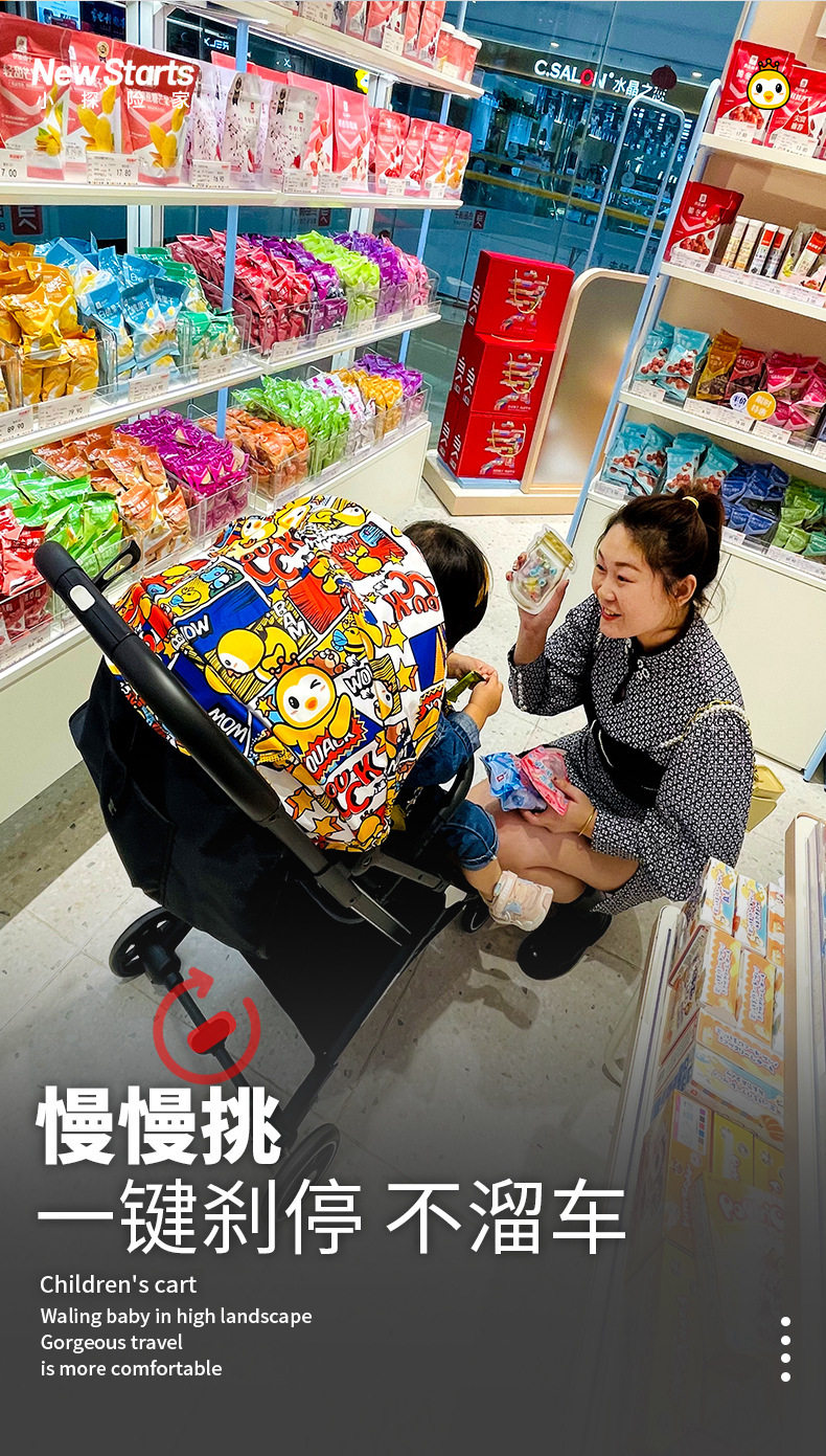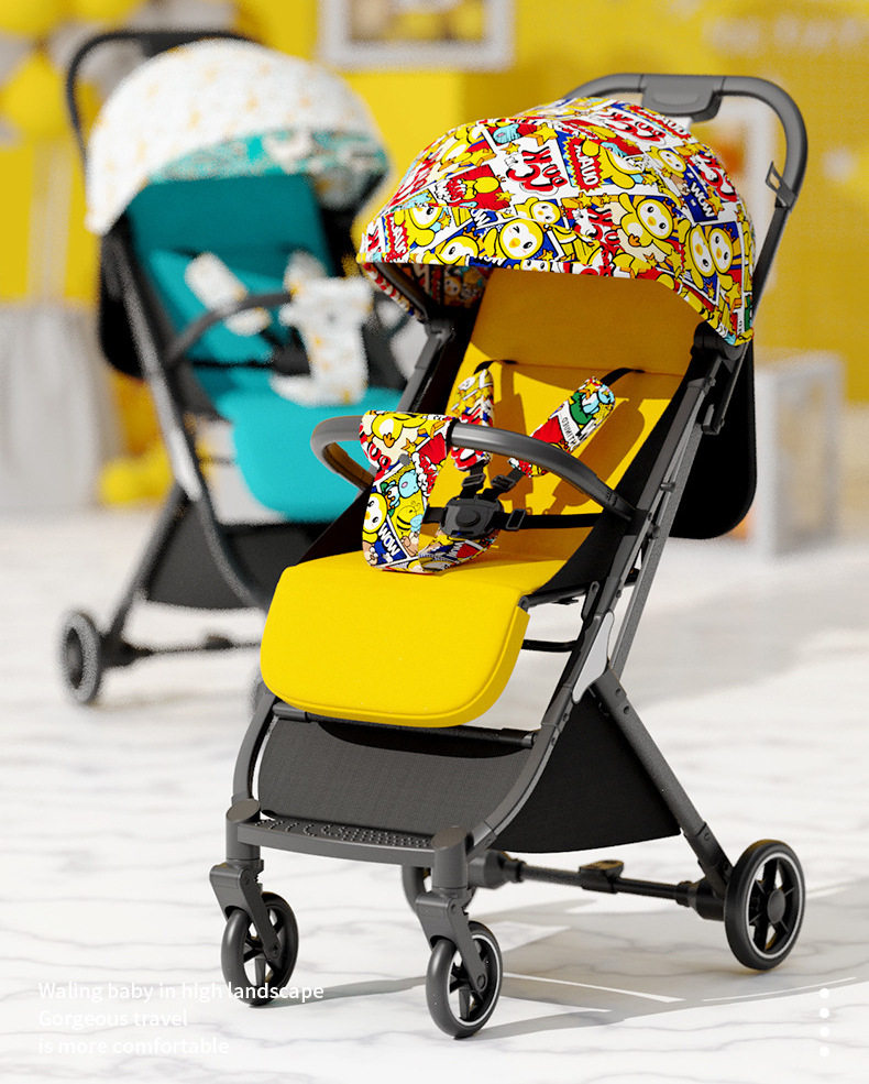Baby Stroller, Lightweight, One-Touch Folding, Two-Way Sitting and Lying Position for Children, High-View Baby Stroller
