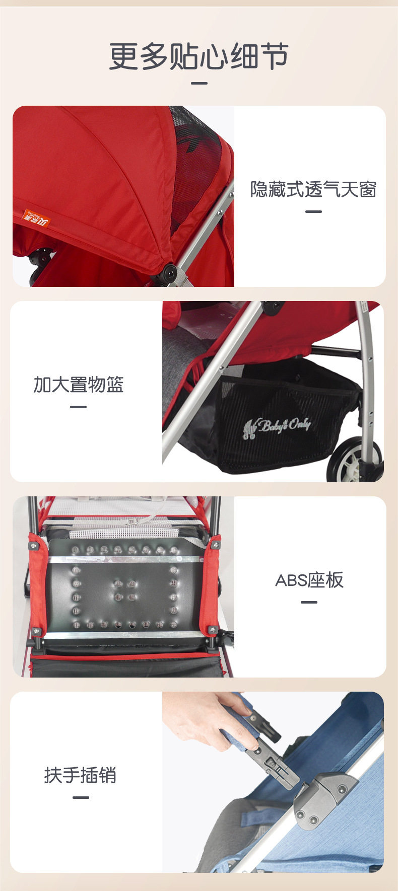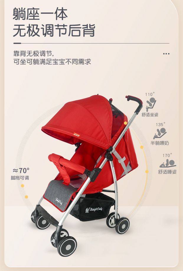 Beolai Children's Stroller with Four-Wheel Steering, One-Touch Folding, Can Lie down or Sit, a Lightweight and Convenient Stroller for Taking Kids Out