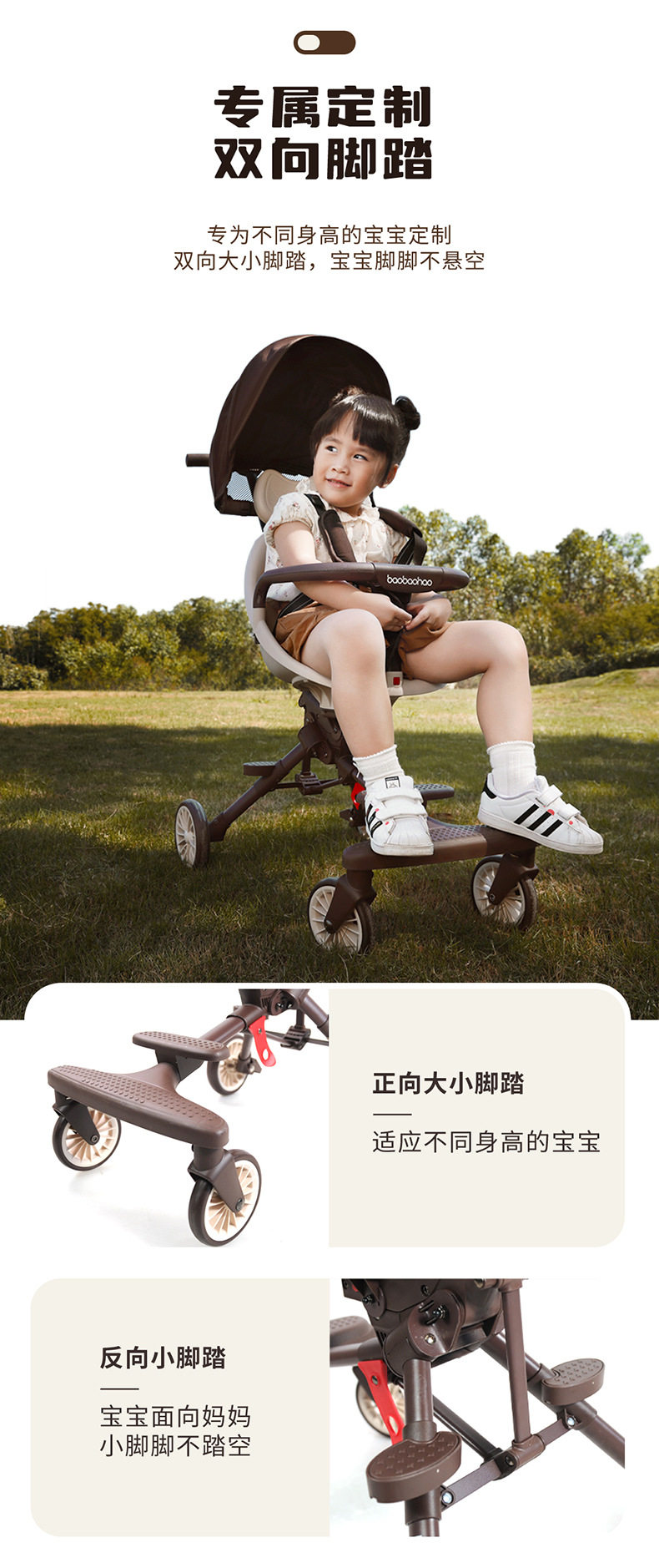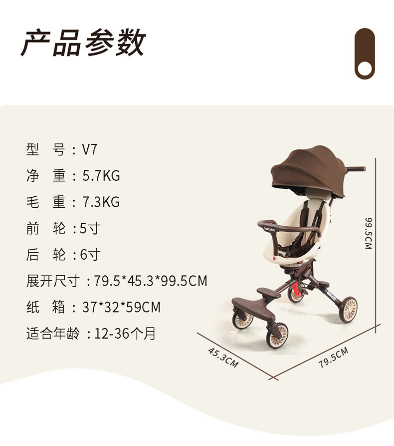 Baby Good V7 Two-Way Baby Stroller, Foldable Lightweight Baby Stroller, Four-Wheel Children's Stroller