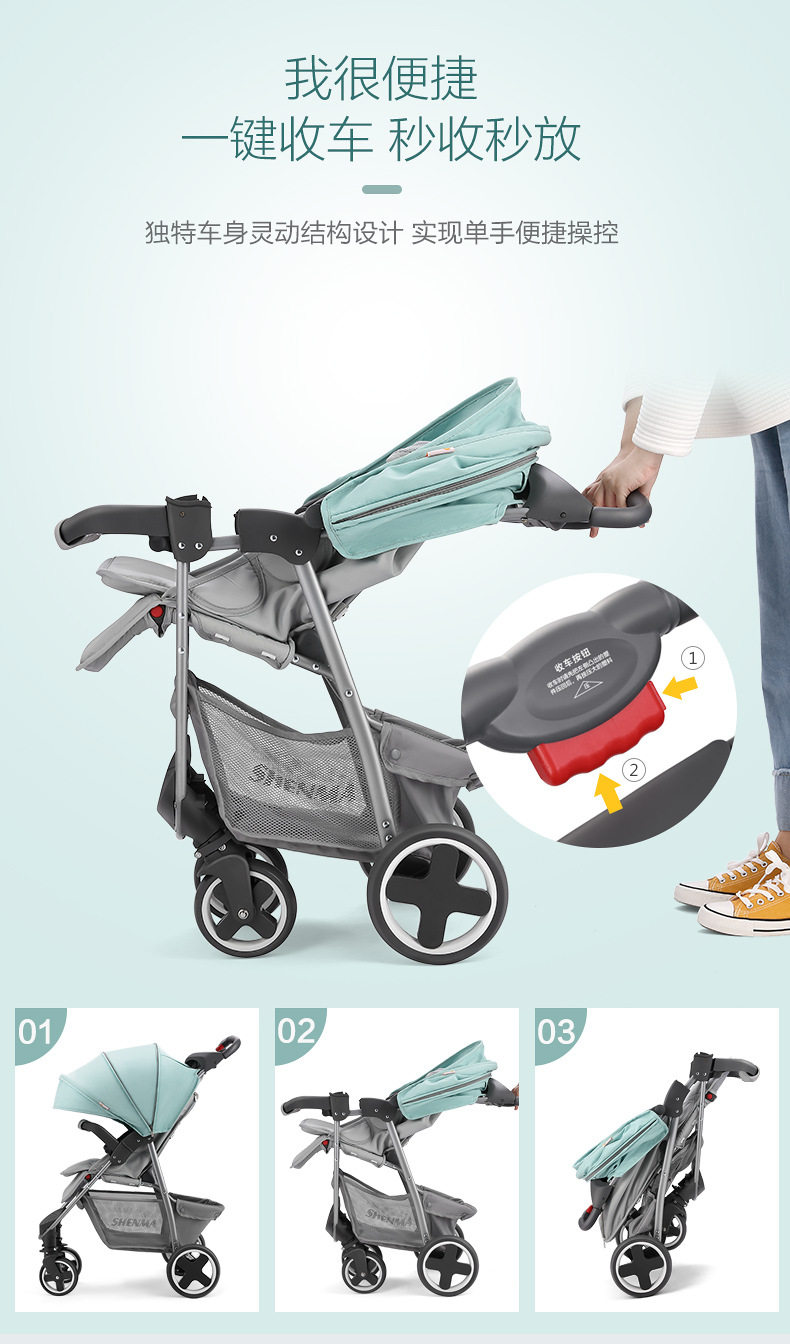 Shenma Baby Stroller, Lightweight Folding Umbrella Stroller for Children, Newborns Can Sit and Lie Down, Portable Shock-Absorbing Stroller for Babies