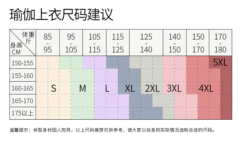 China (cm) 160-165/84-86 165-170 / 88-90 167-172 / 92-96 168-173 / 98-102 170-176 / 106-110