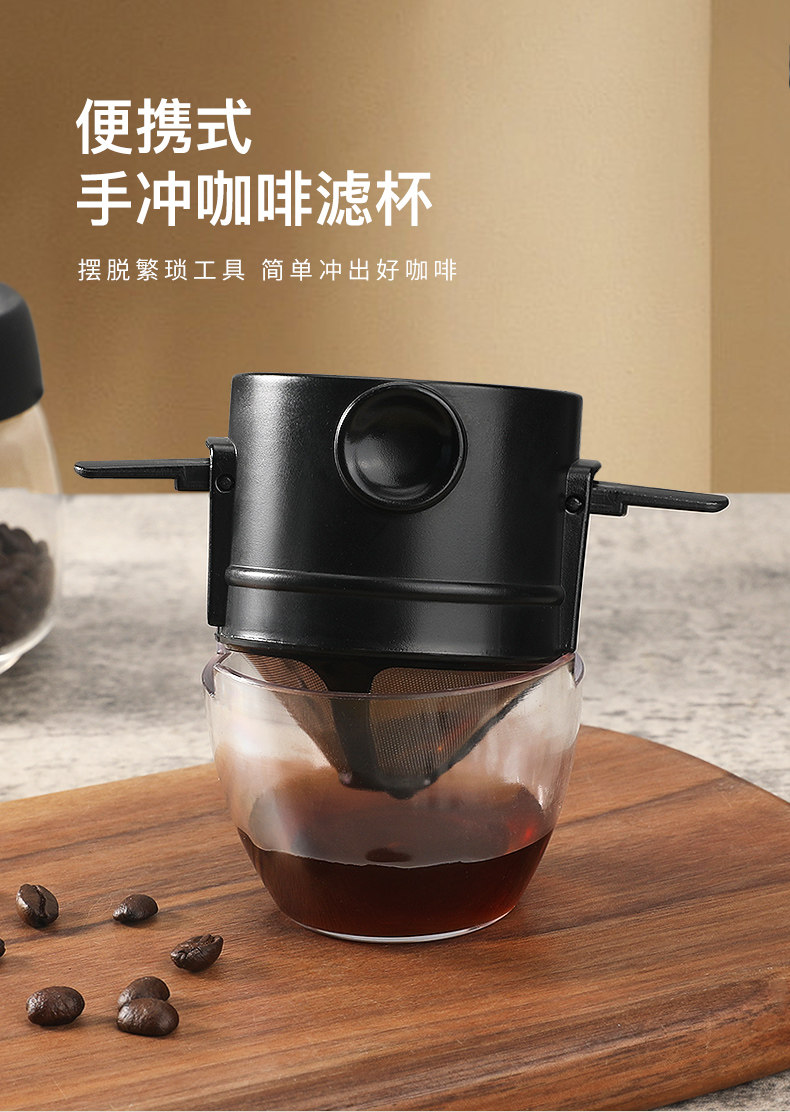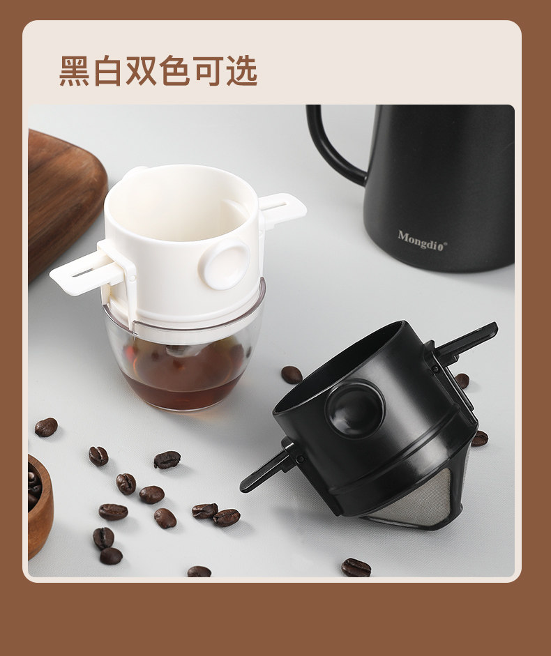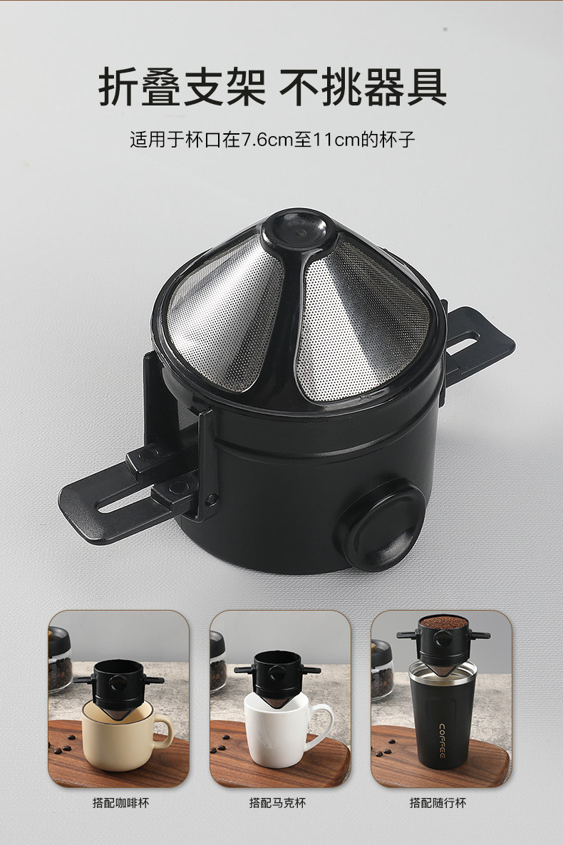 Mongdio Hand-Brewed Coffee Filter Cup Stainless Steel Coffee Filter Portable Foldable Hanging Ear Filter Set