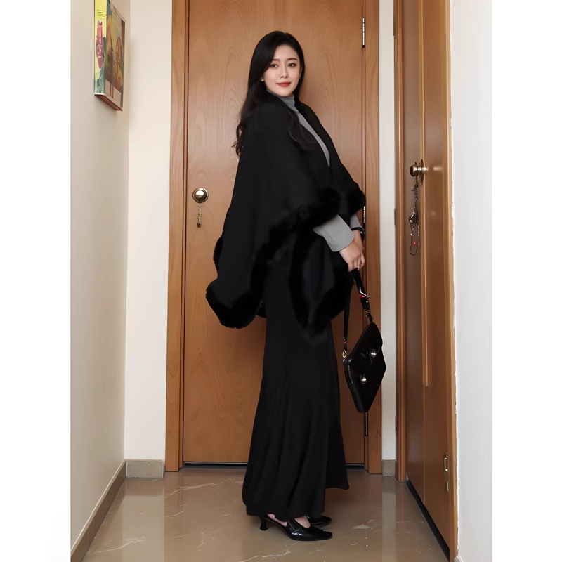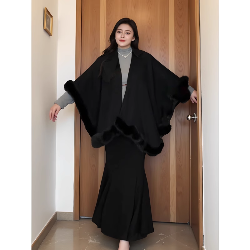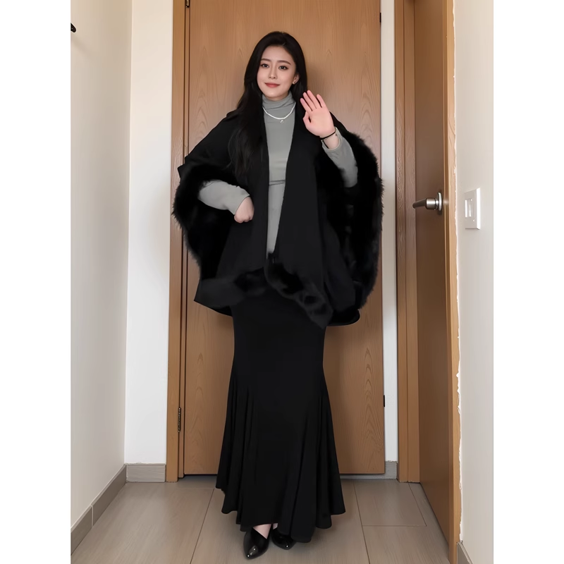 Large size 2-300 Jin Jin is equal to 0.5 kg. Slightly fat mm winter three-piece suit with temperament, new high collar bottoming, Korean style shawl fishtail skirt