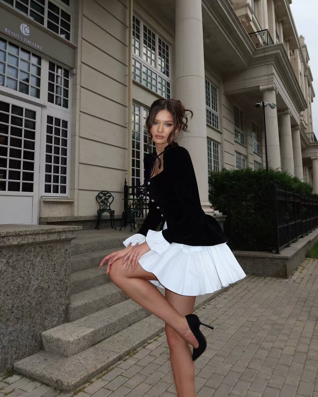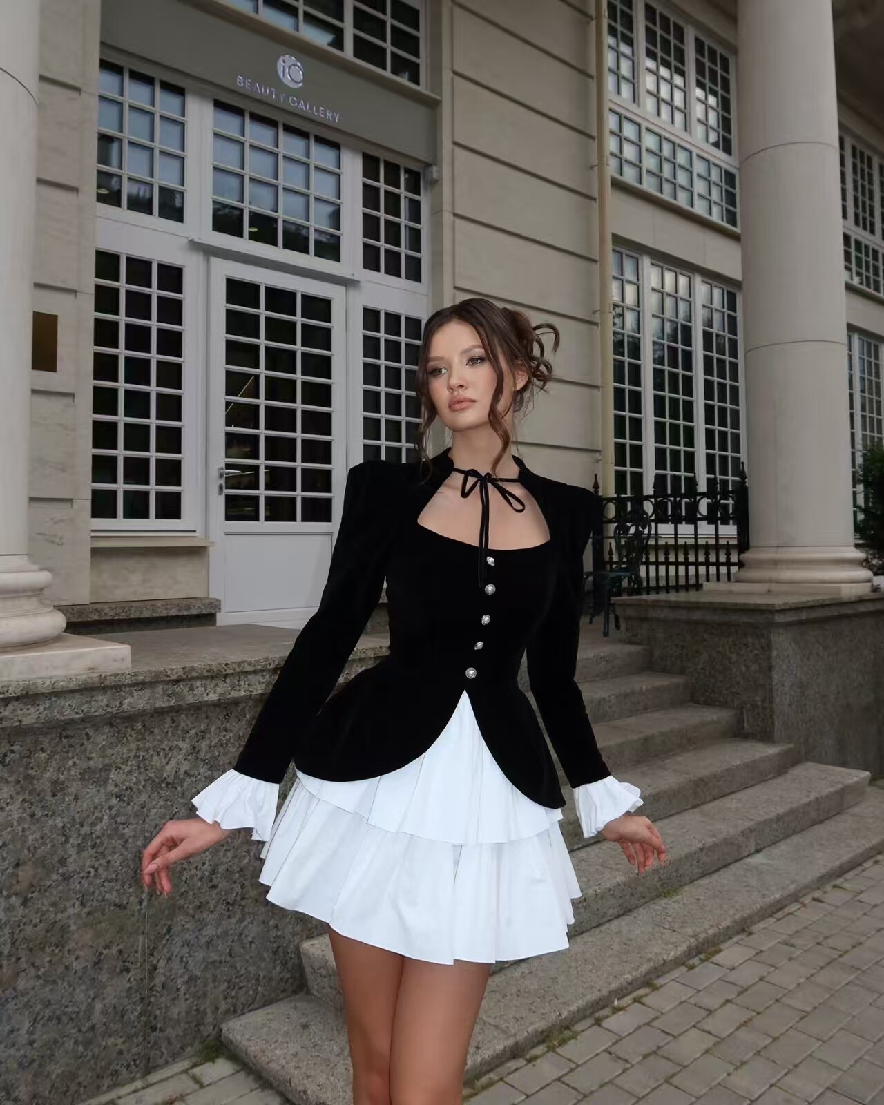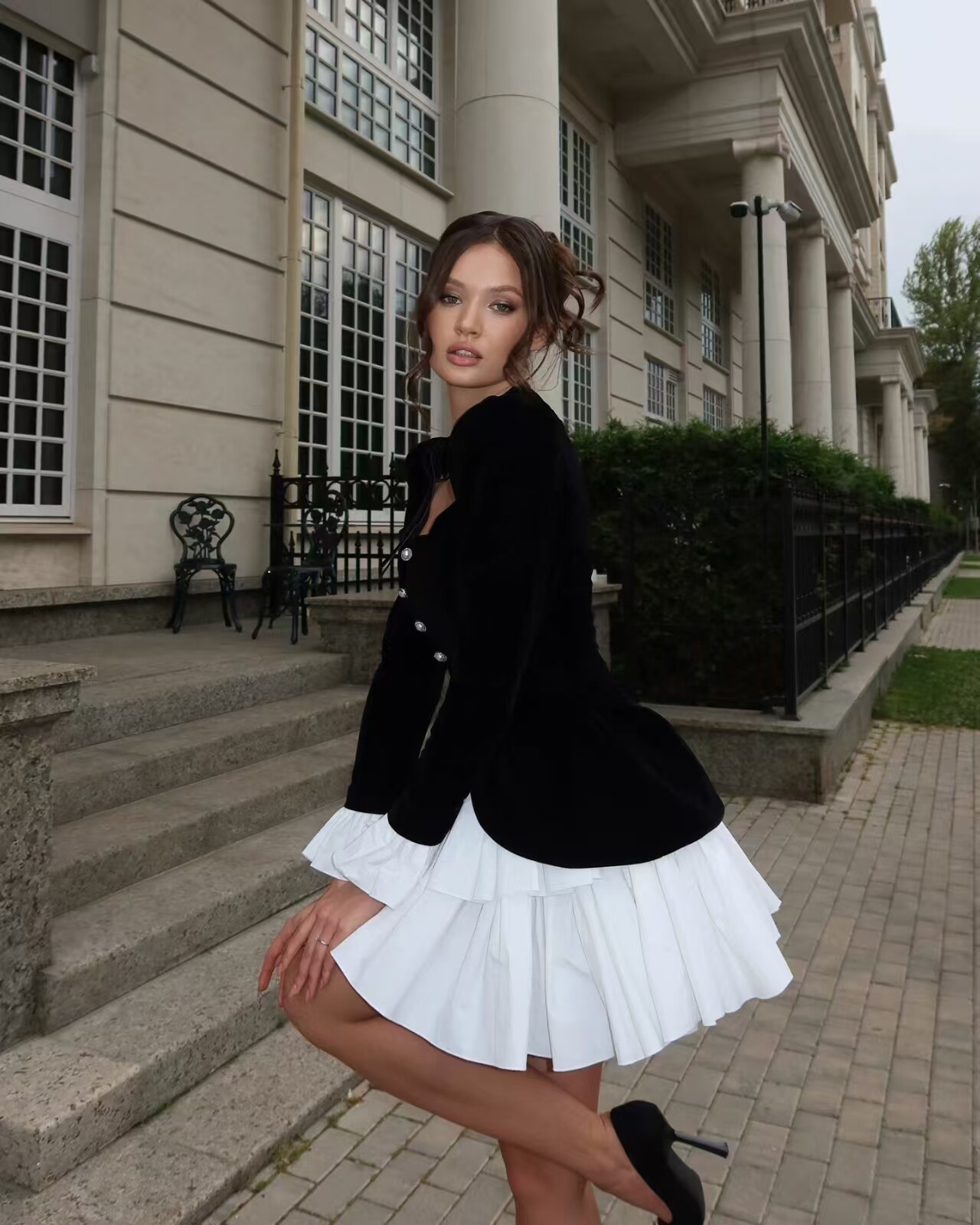 European and American Style Fashionable Lace-Up Fake Two-Piece High-Waisted Irregular Dress