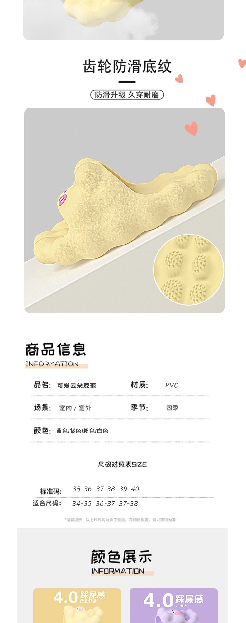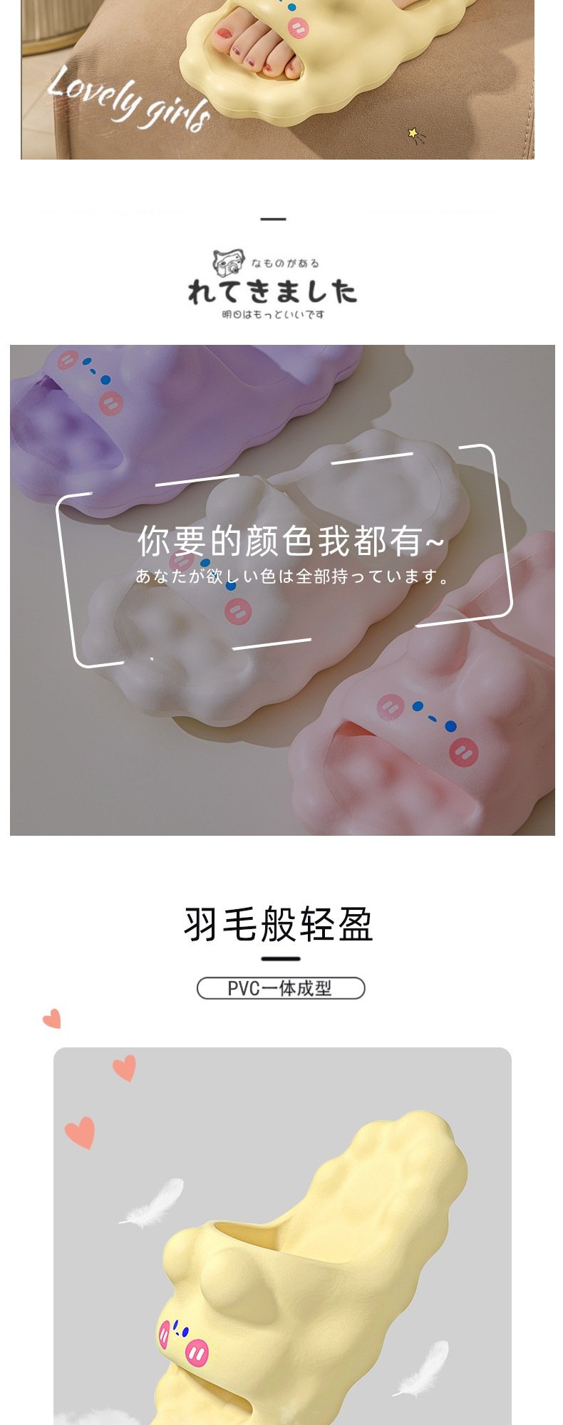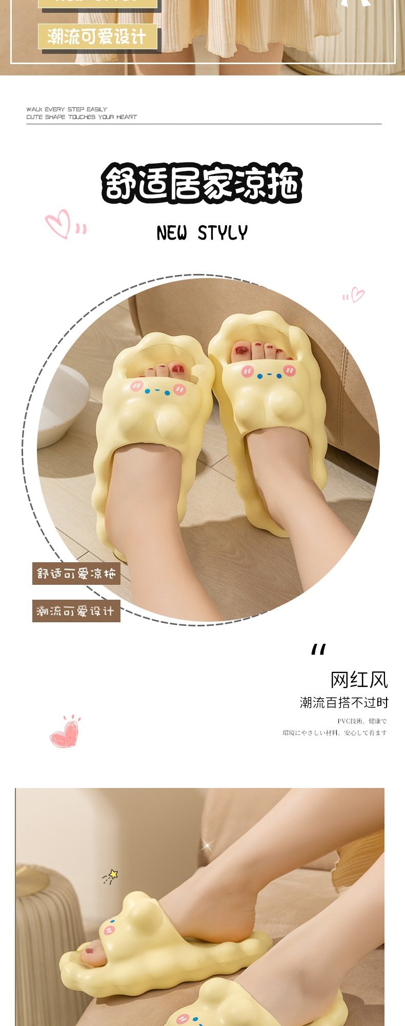 Cute Clouds soft sole Summer Slippers for Girls, Indoor Parent-Child Family of Three Non-Slip Children's Slippers