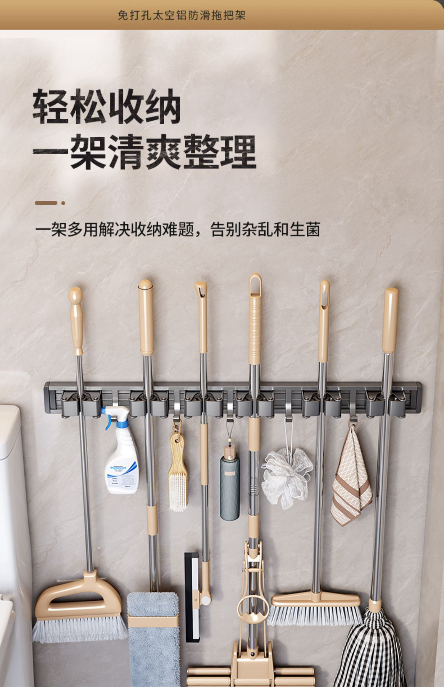 German Broom Holder Bathroom No-Drill Storage Rack Household Bathroom Mop Hook Wall-Mounted Strong Fixation