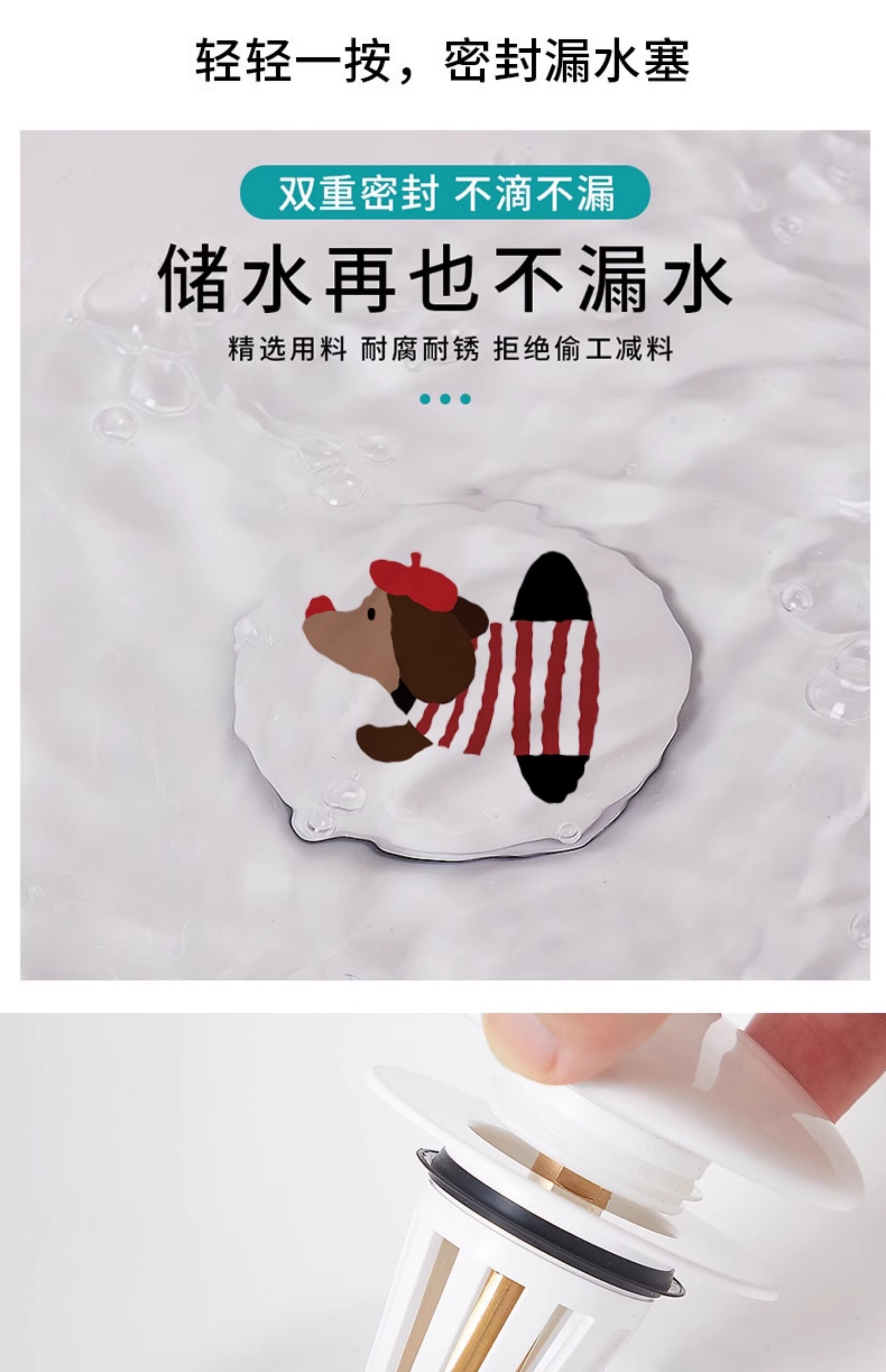 Bathroom Sink Drain Plug Sausage Dog Odor-Proof Push-Type Washbasin Accessories Ceramic Washbasin Drain