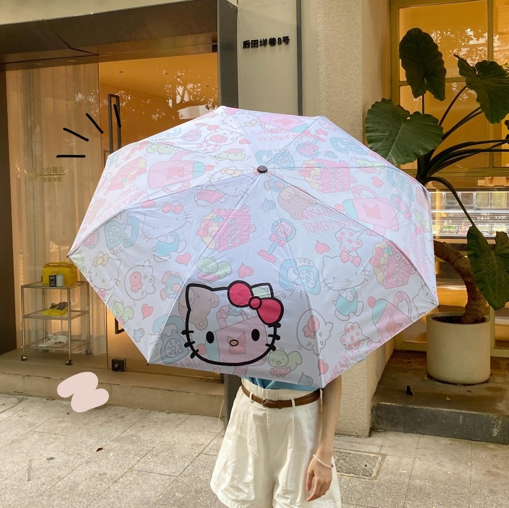 Hellokitty Umbrella for Girls, Good-Looking, Rain or Shine, Automatic Vinyl Sunshade for Students Going to School