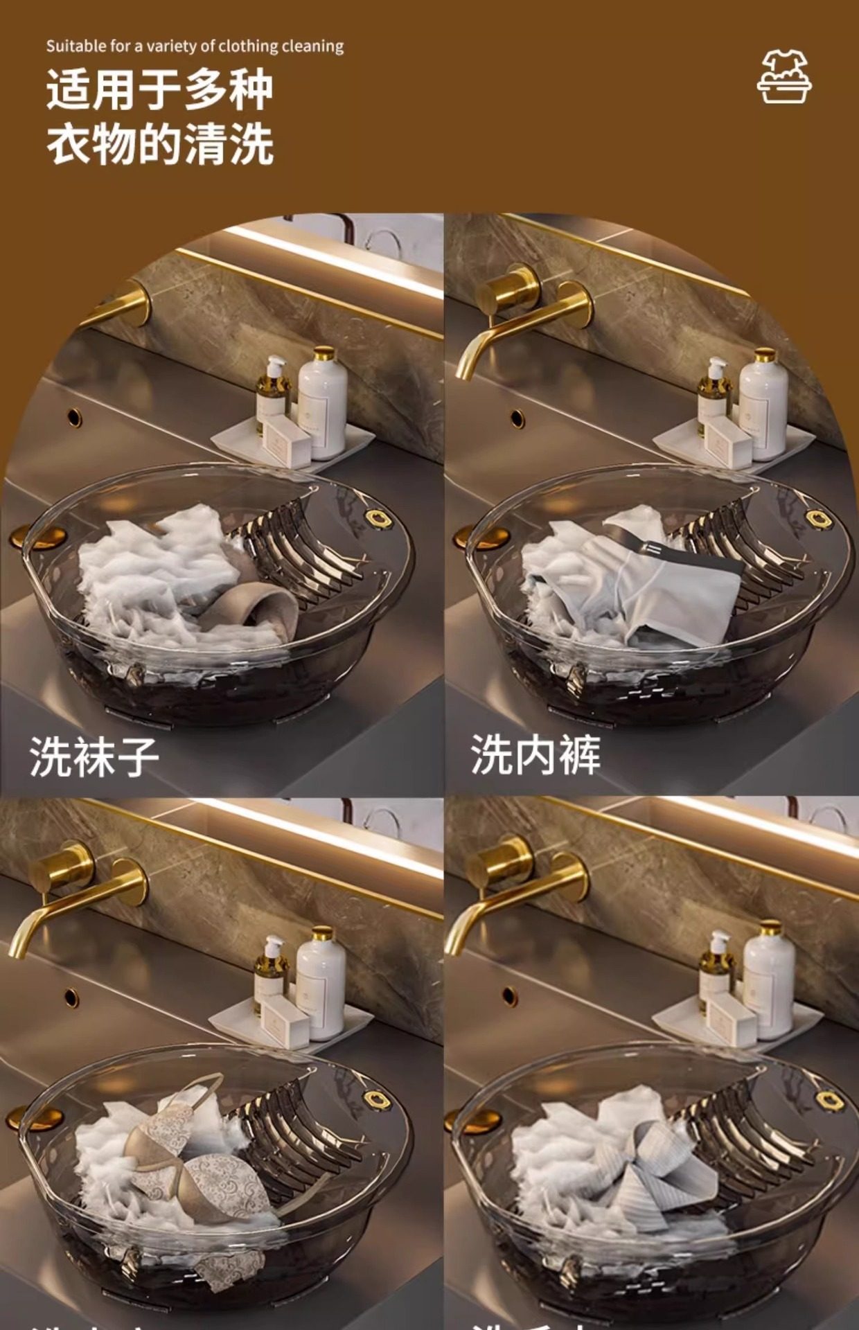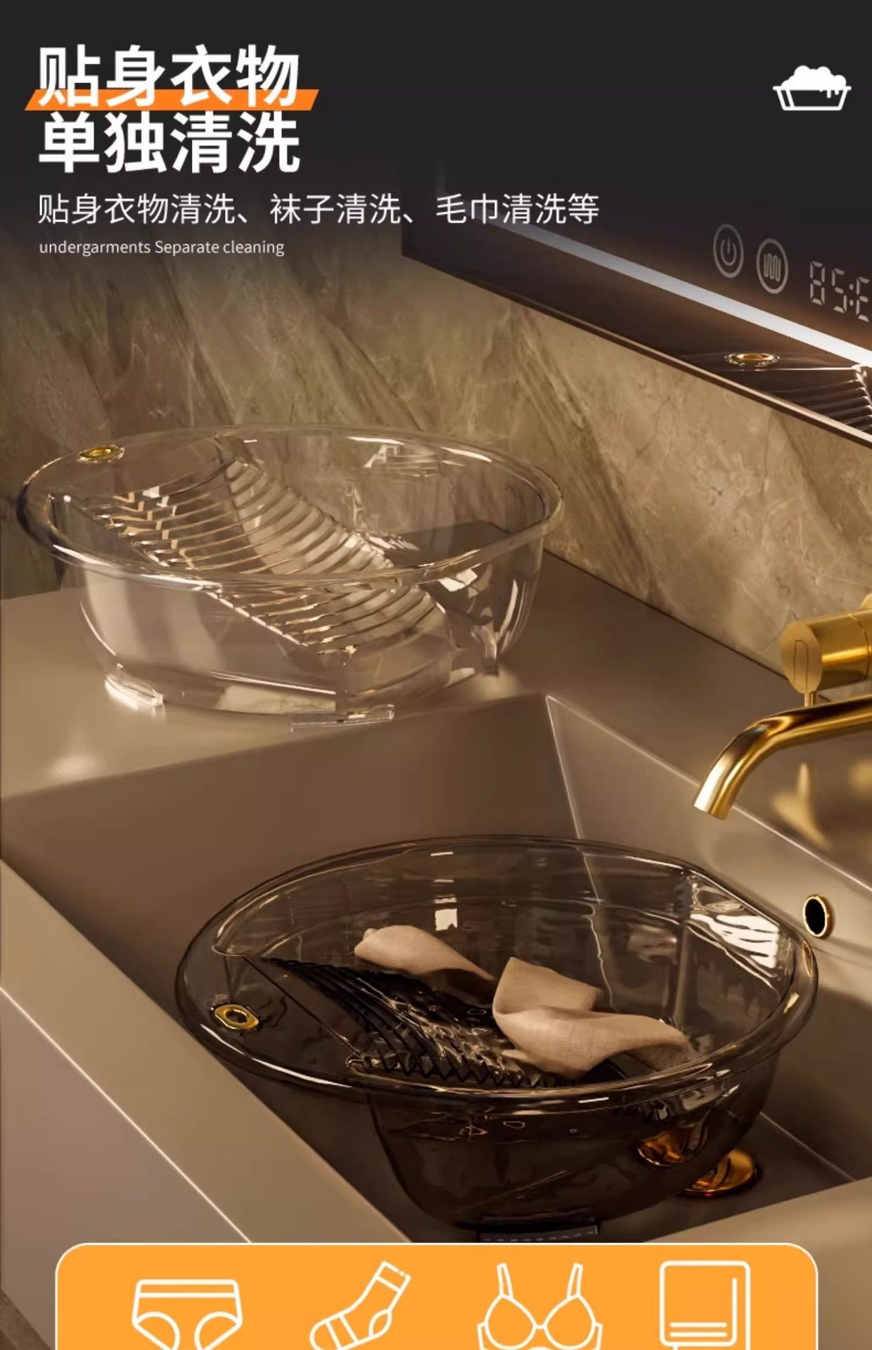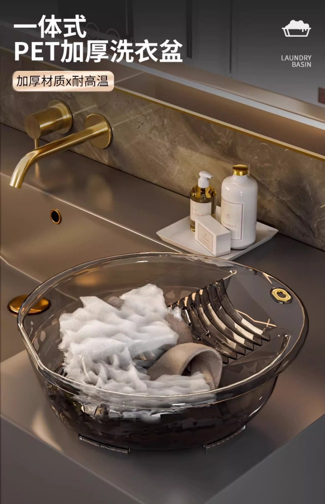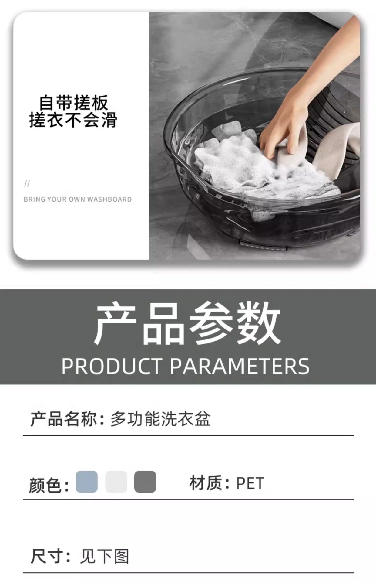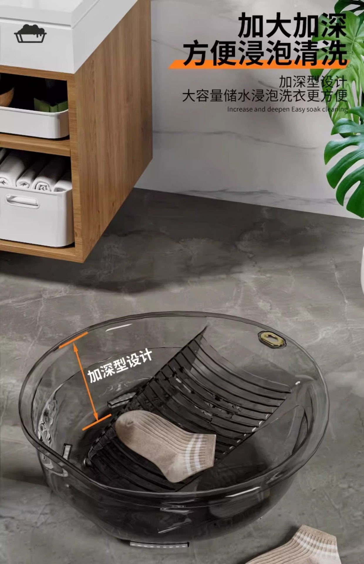 Laundry Basin with Integrated Washboard, Small Plastic Basin for Home Use, Suitable for Washing Baby Clothes, Underwear, and Socks