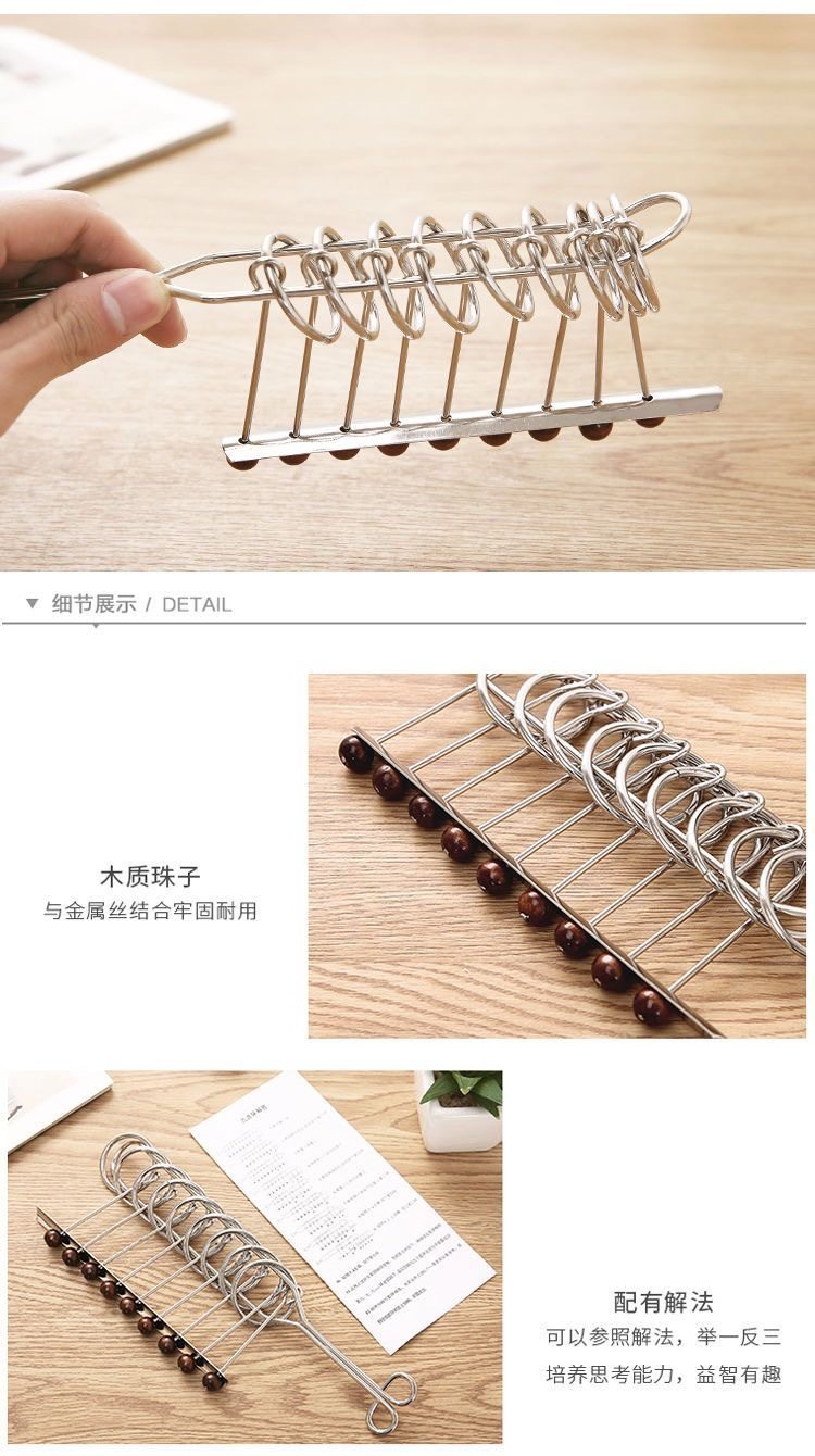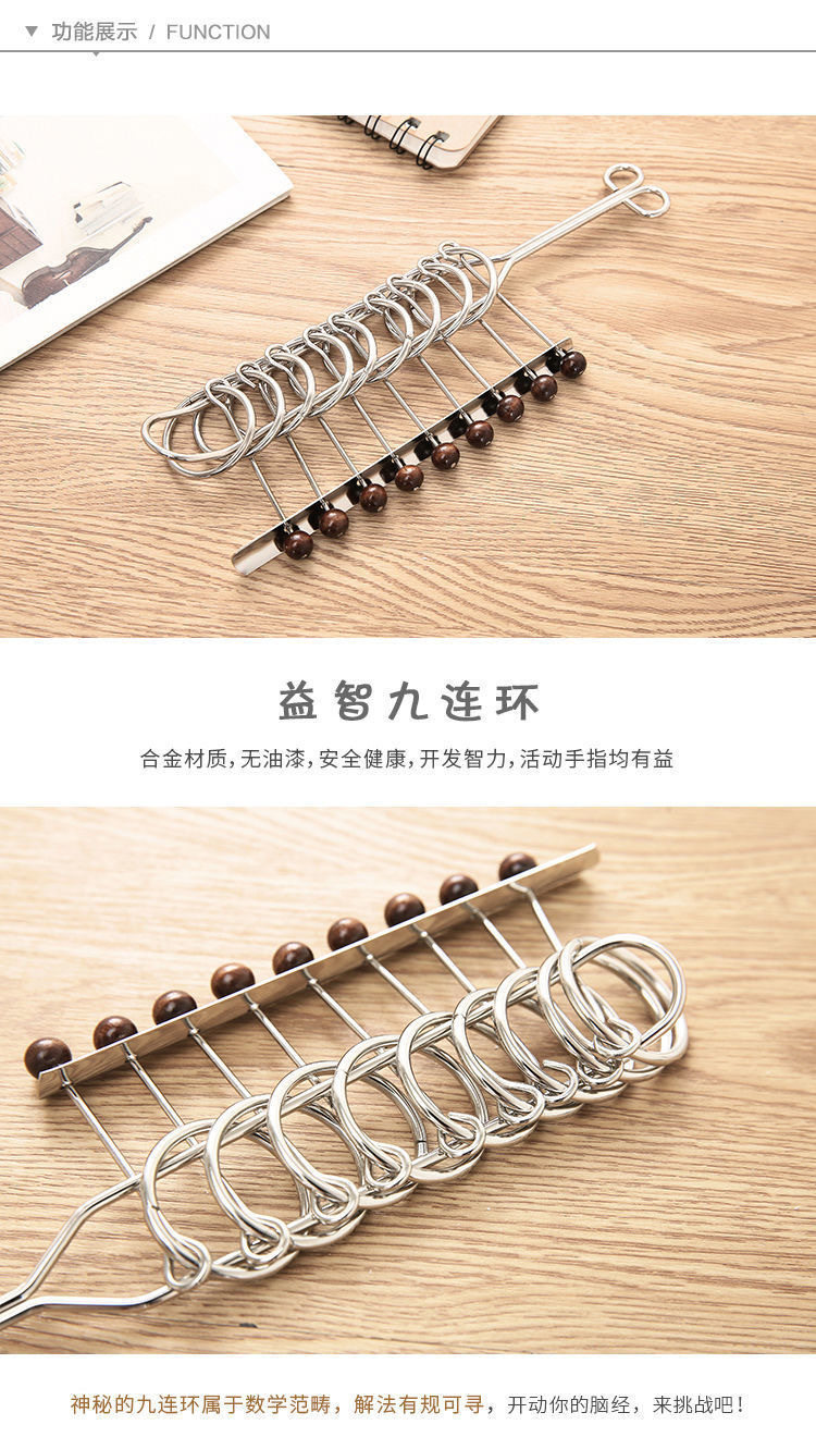 Nine-Link Puzzle for Elementary School Students, Children's Educational Toy, Adult Luban Kongming Lock, Unlocking the Five-Link Puzzle