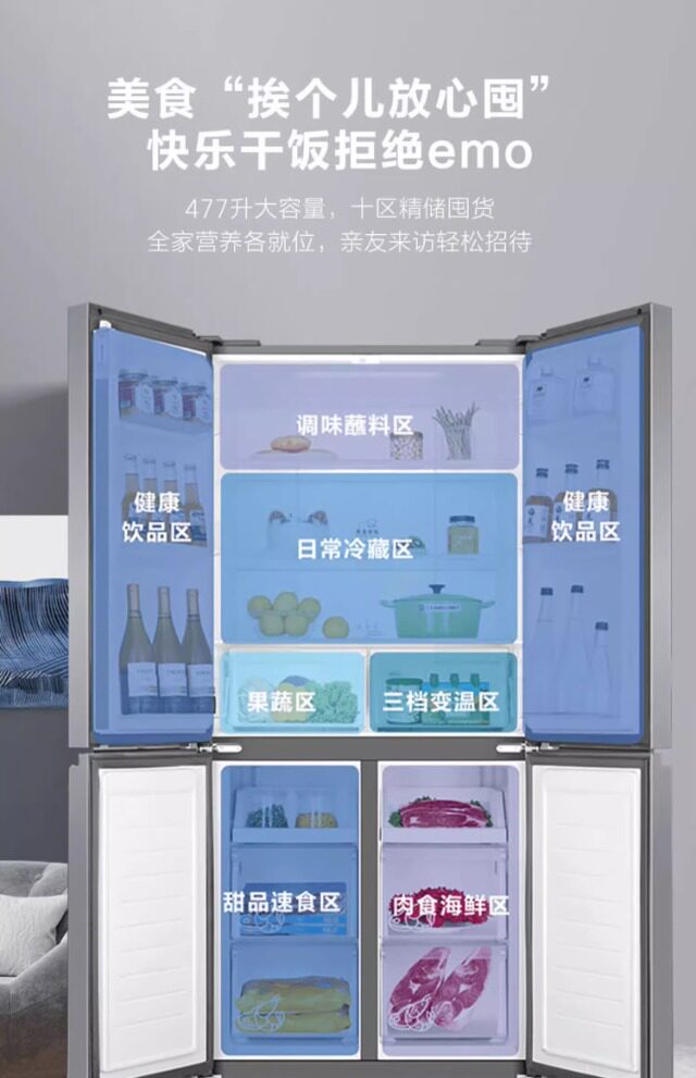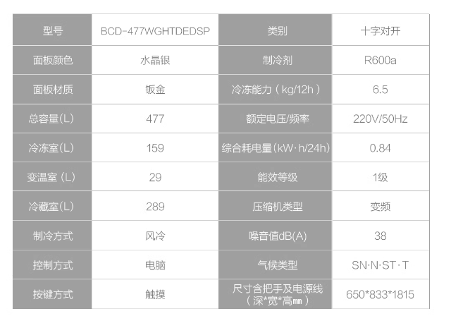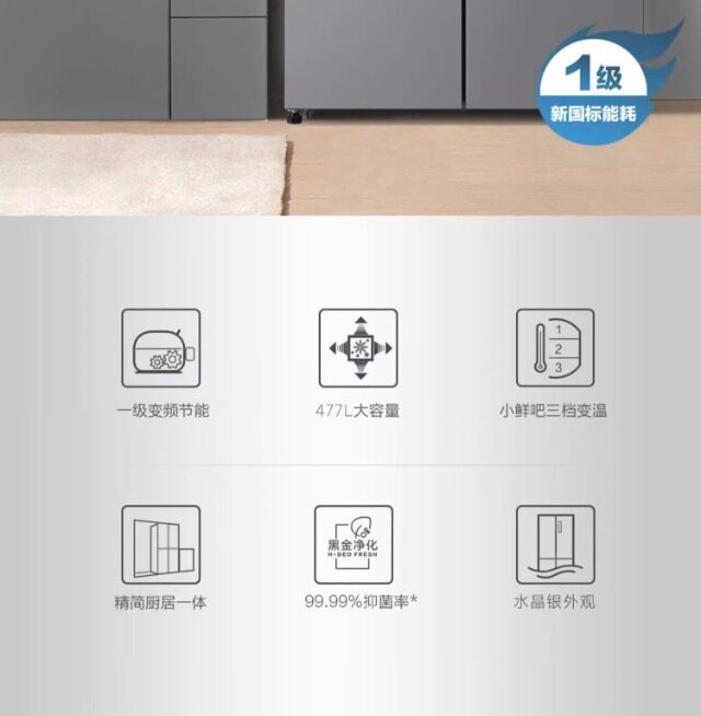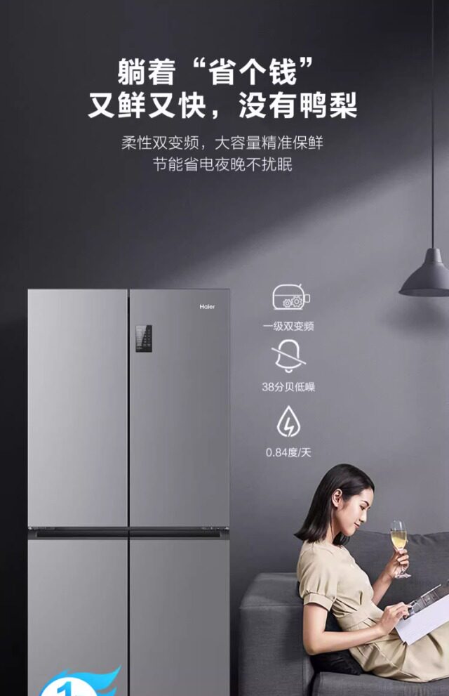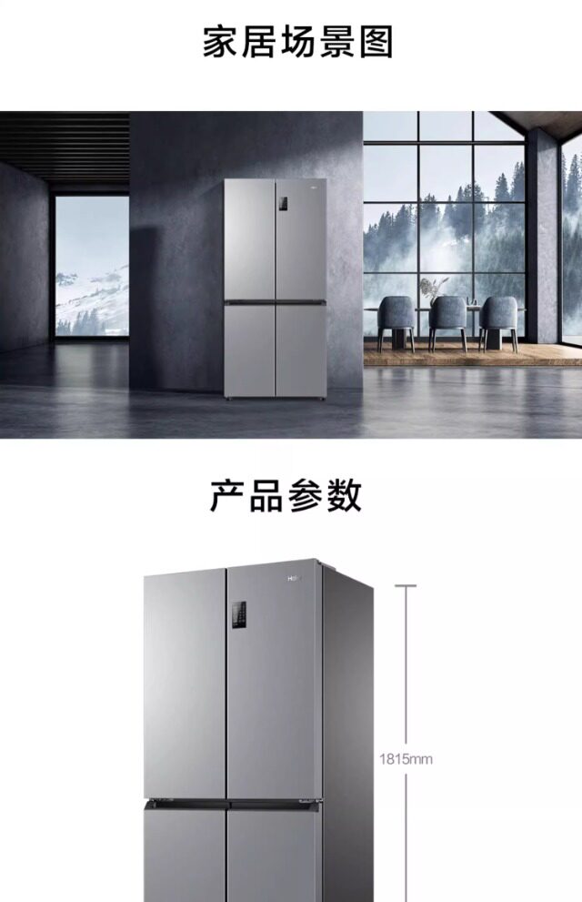 Haier First-Class Energy Efficiency 477-Liter Cross-Door Four-Door Built-In Ultra-Thin Dual-Circulation Large-Capacity Double-Door Refrigerator
