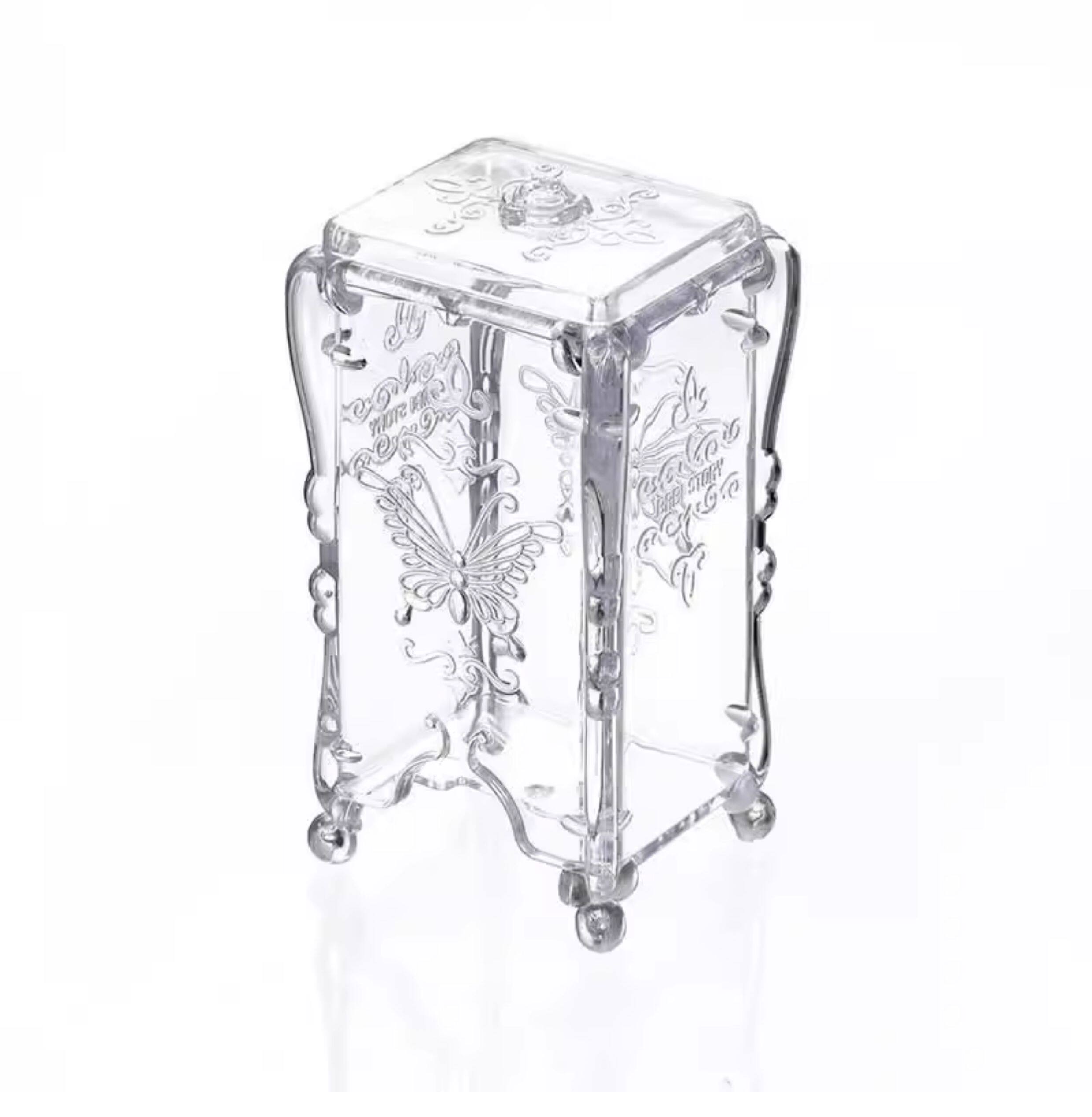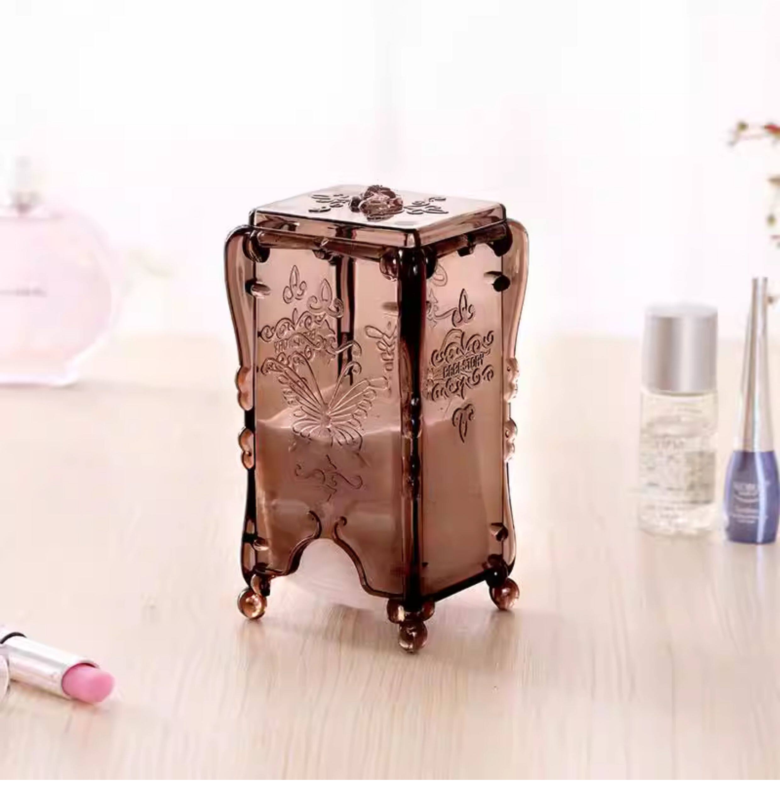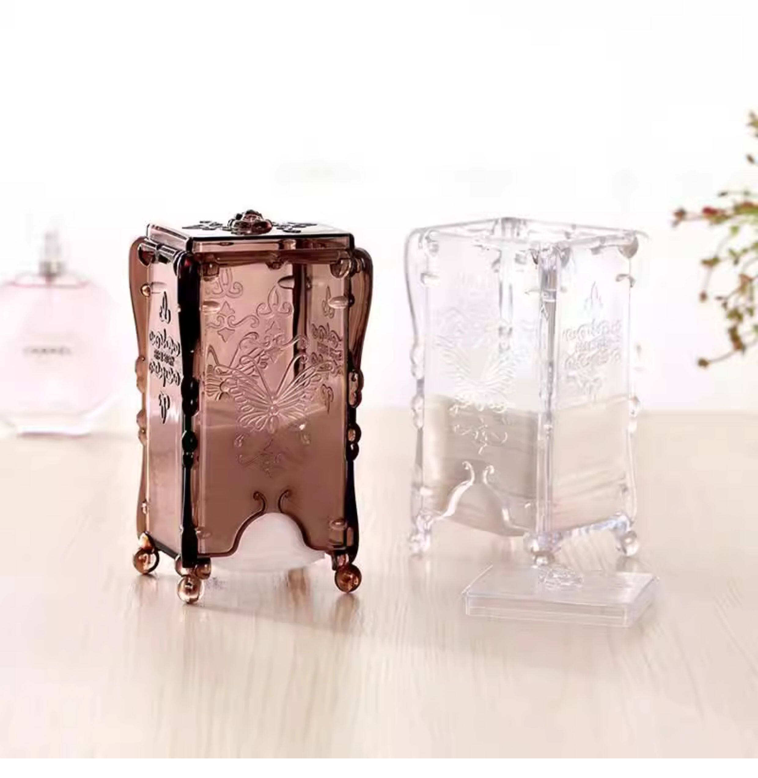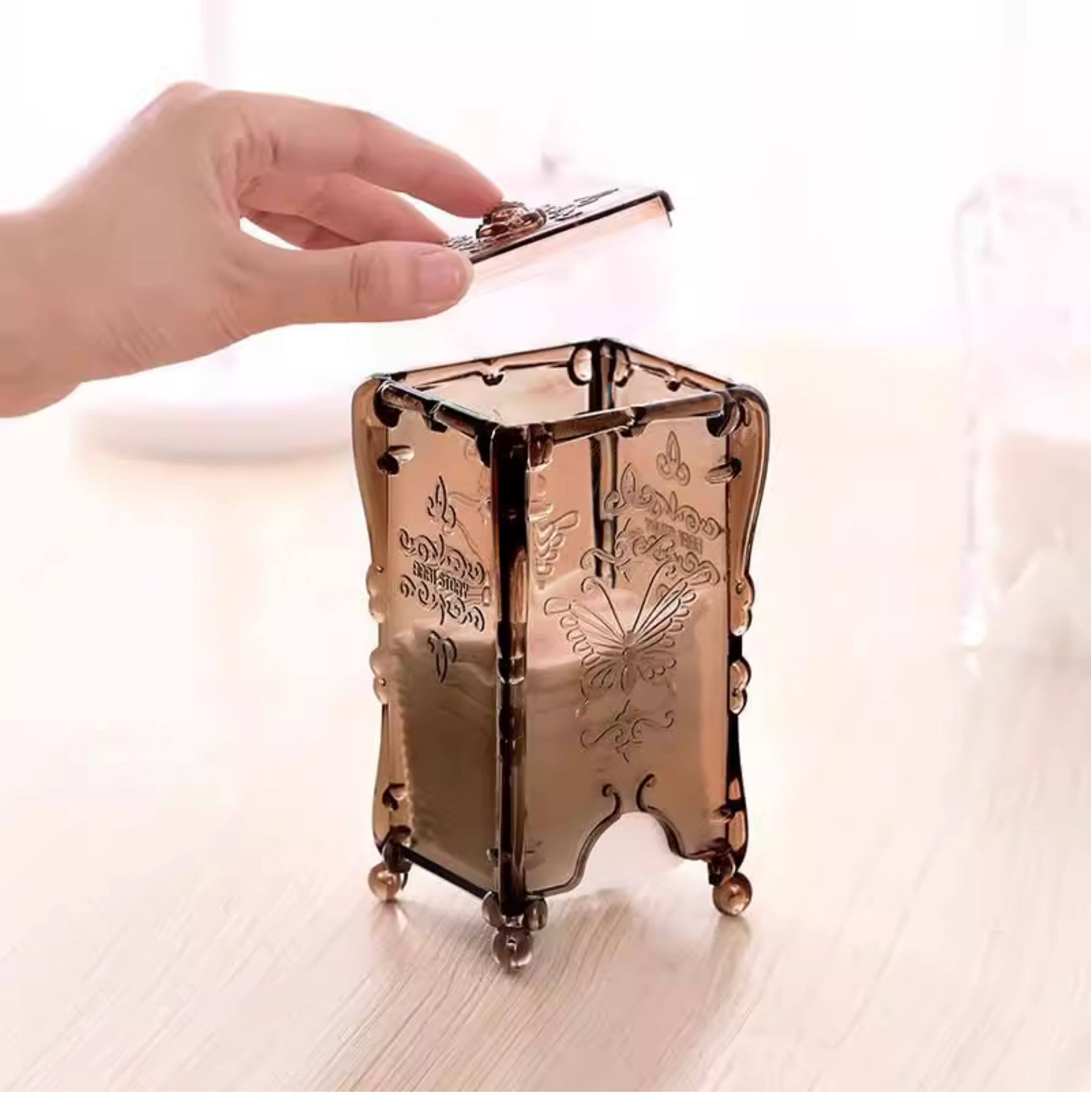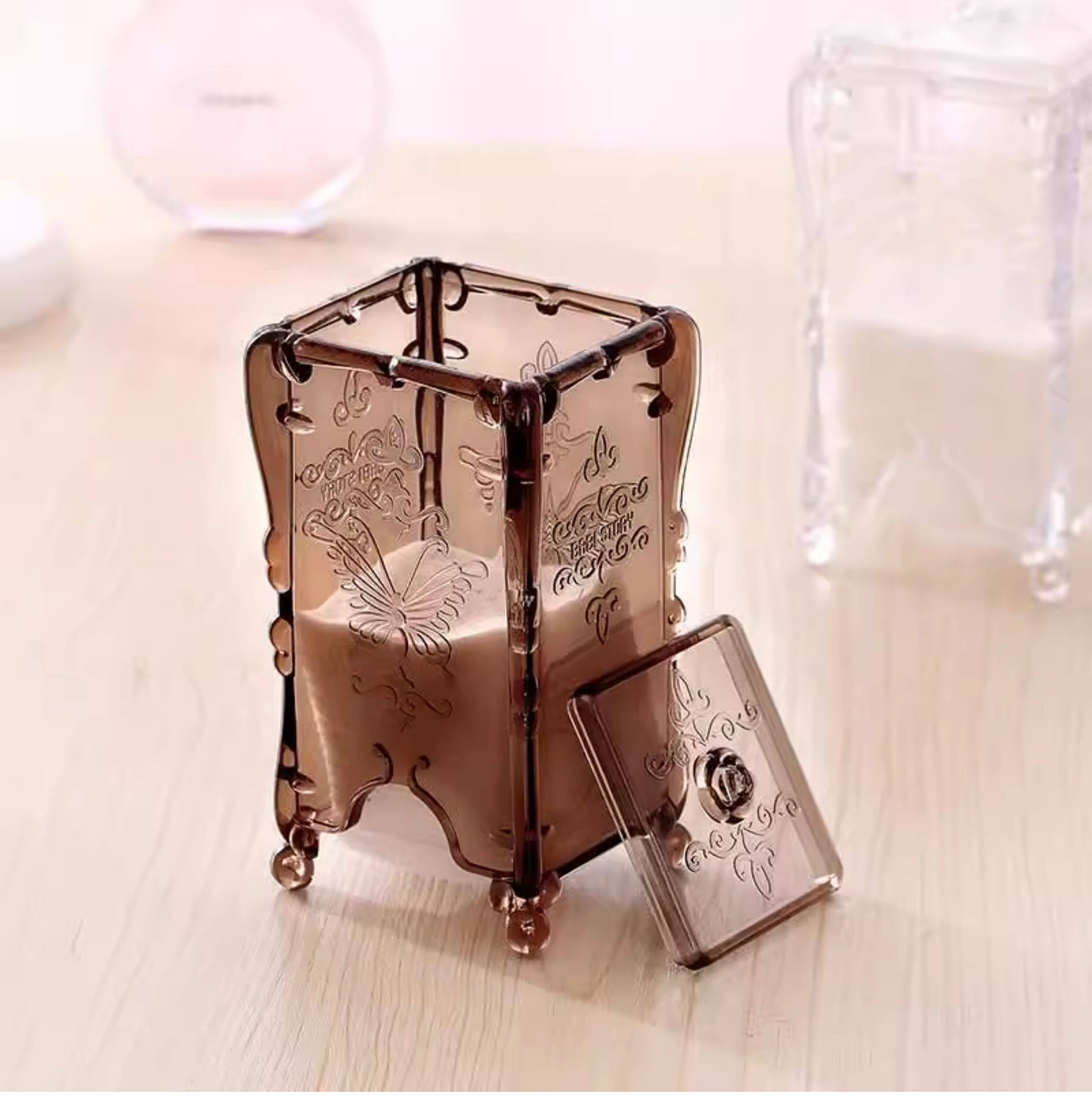 European retro makeup cotton storage box extraction vertical cotton box transparent plastic makeup remover cotton dust-proof cotton swab storage box