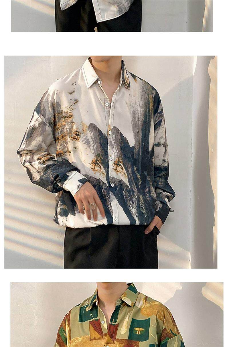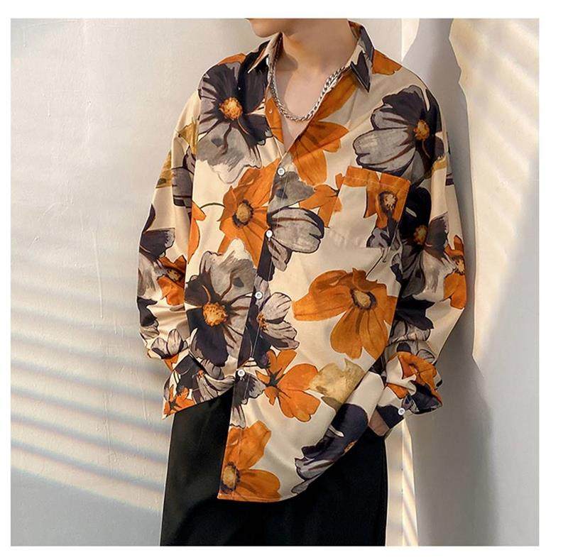 80S Retro Hong Kong Style Shirts for Men and Women, Retro Hawaiian Handsome Loose Couple Long-Sleeved Shirts, Trendy Brand Jackets