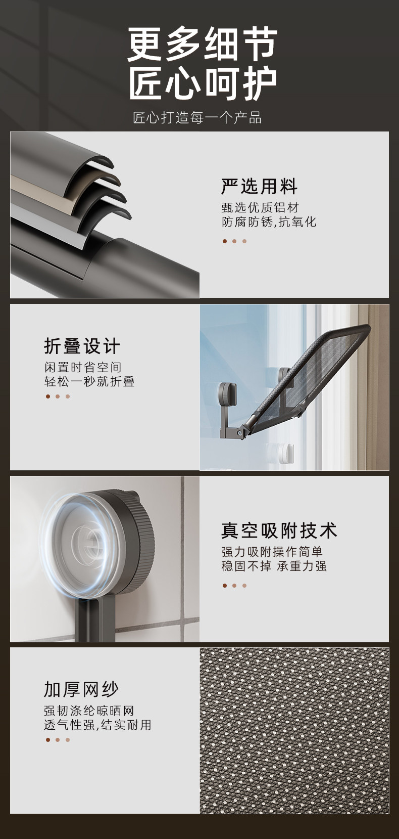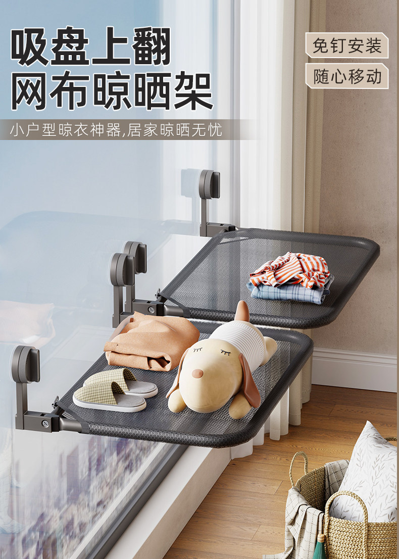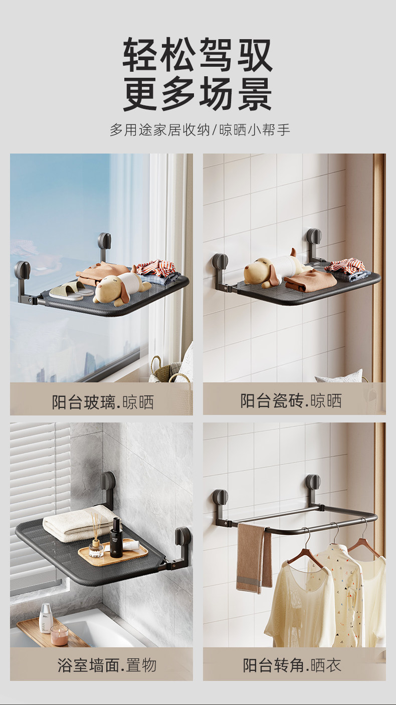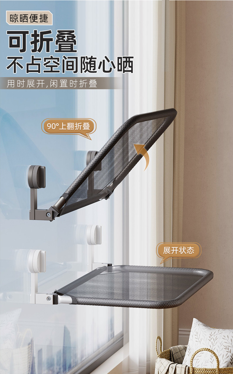 Folding Clothes Drying Rack Invisible Balcony Household Shoe Drying Rack Bay Window Indoor Space Aluminum Punch-Free Cool Socks Artifact