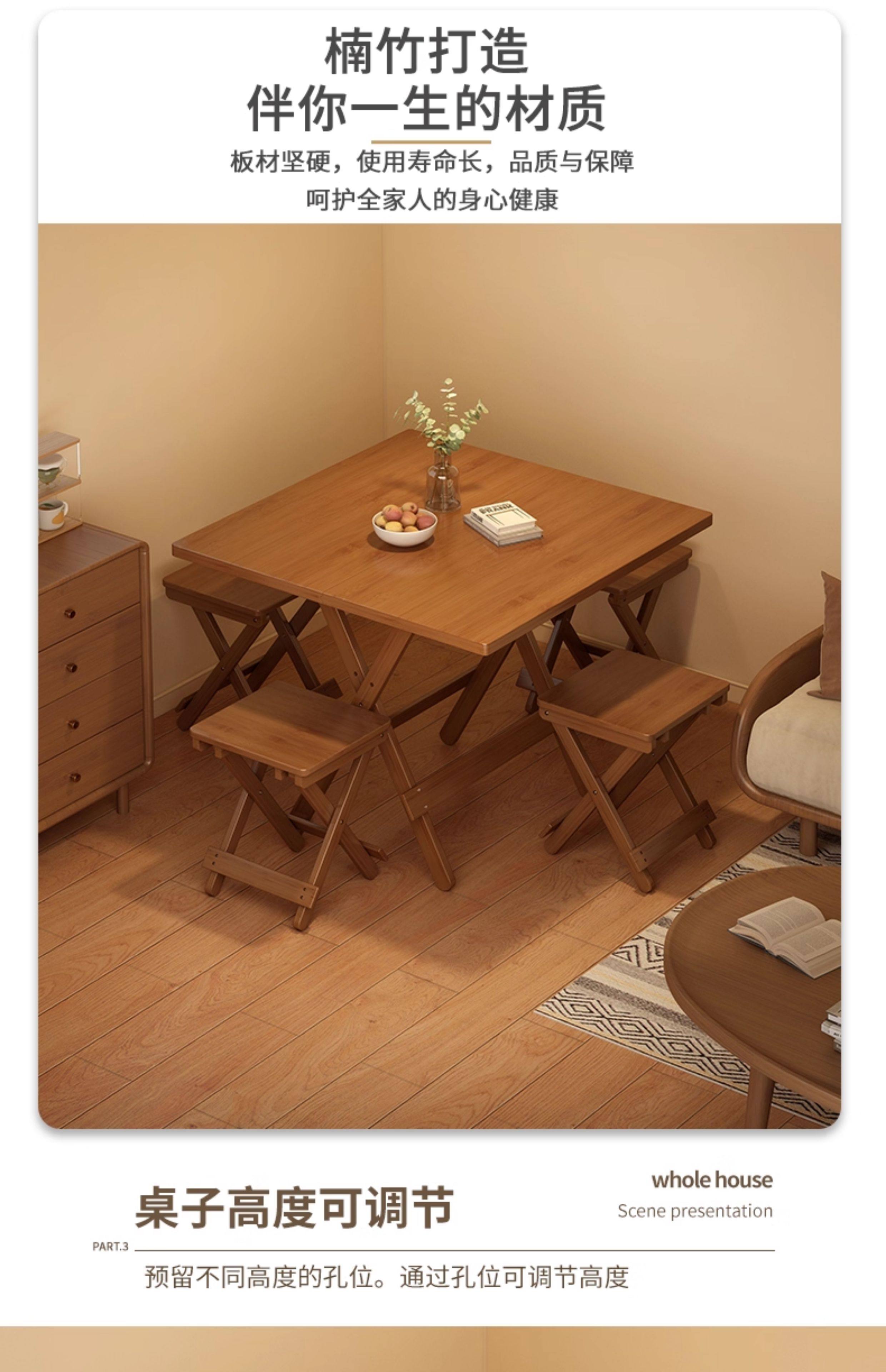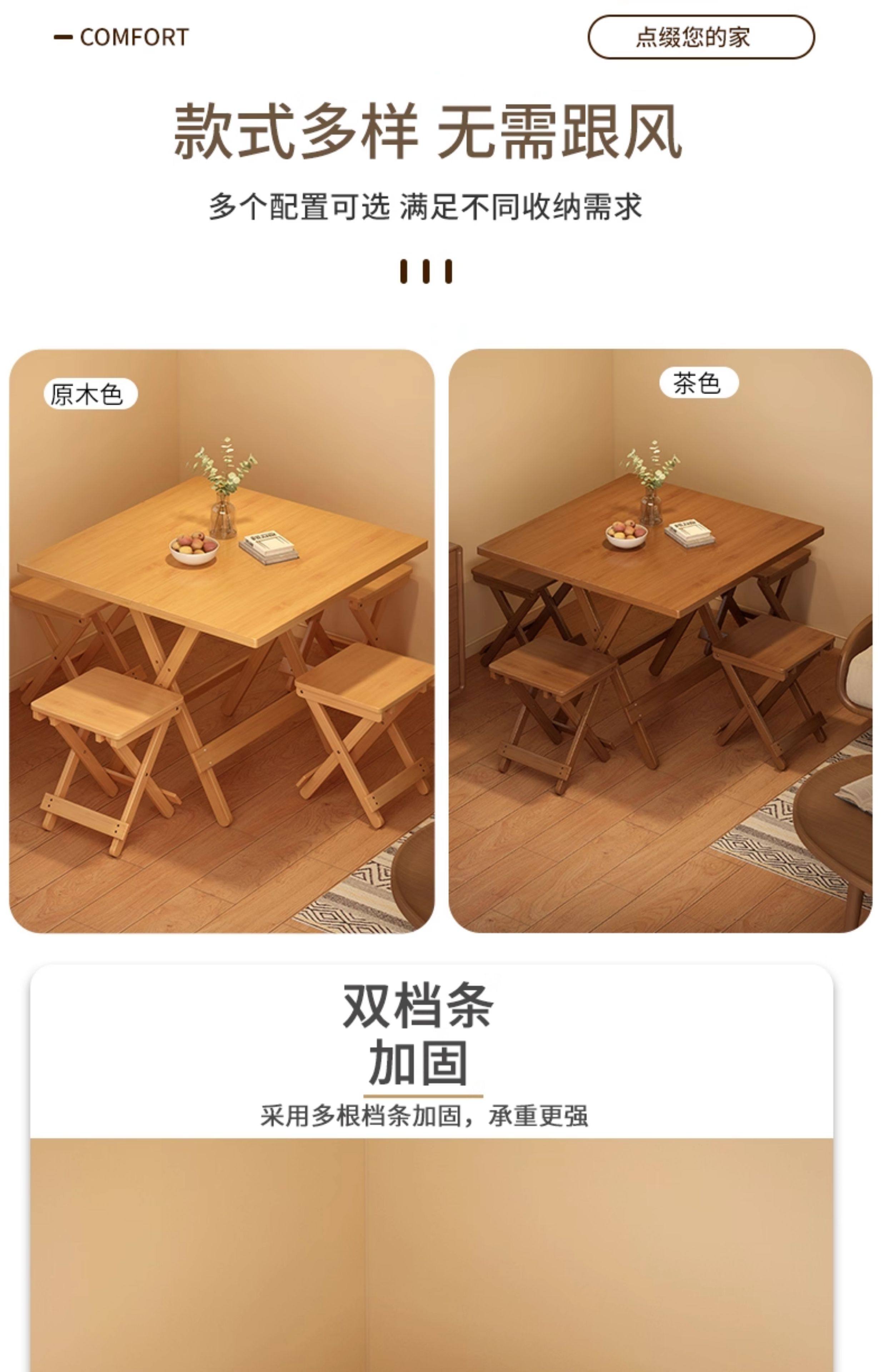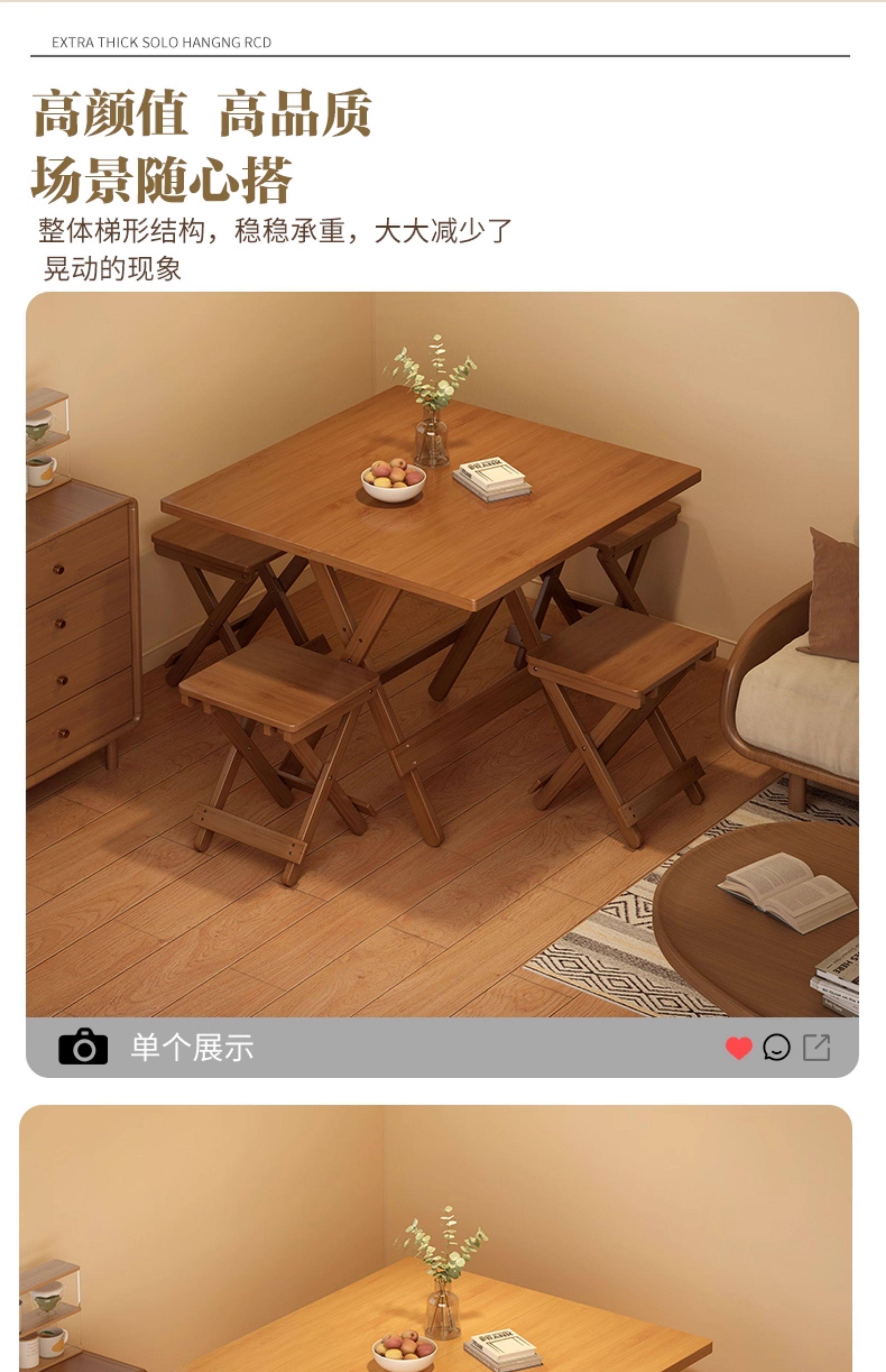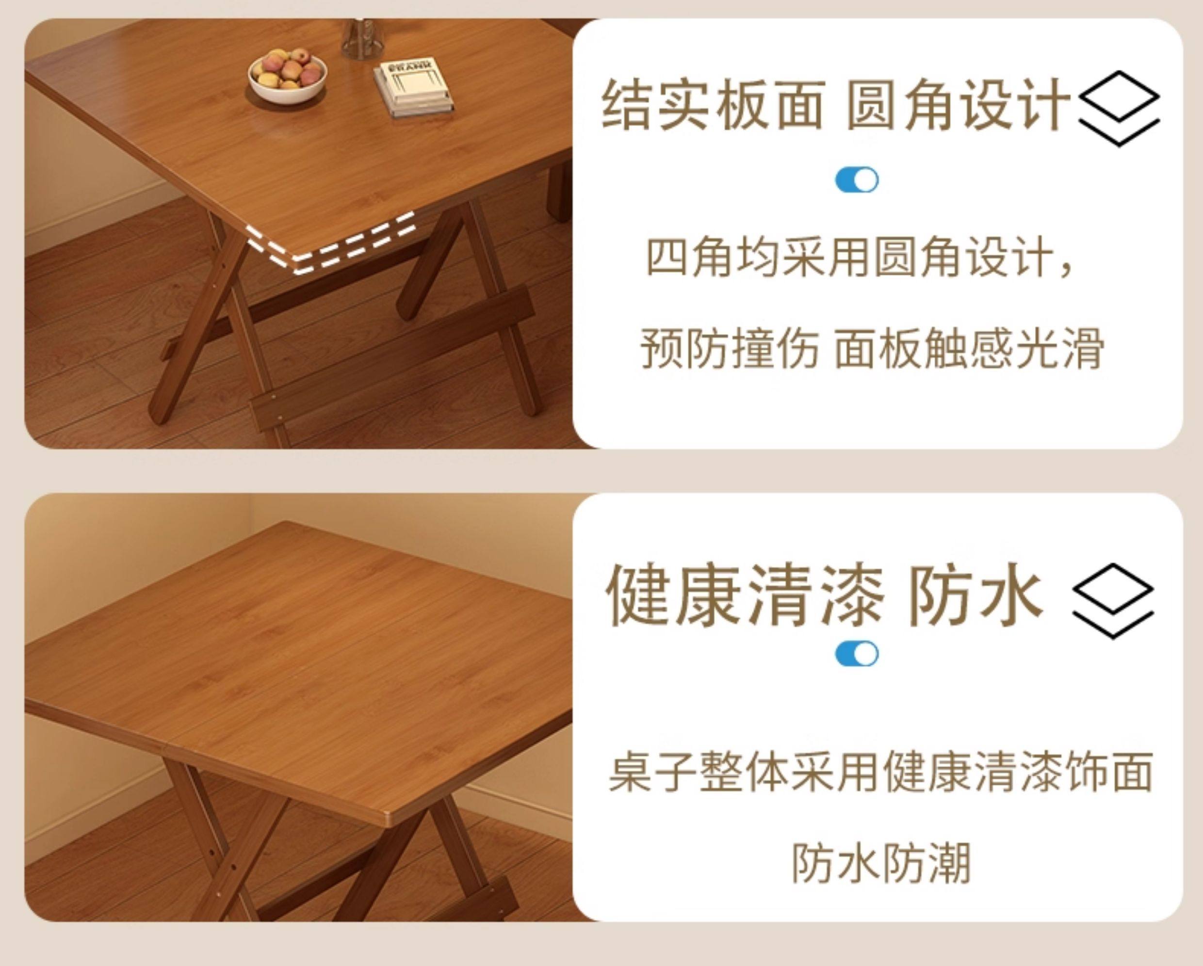 Folding Table for Home Use, Small Apartment, Solid Wood, No Assembly Needed, Simple Dining Table, Outdoor Stall Portable Dining Table, 2026 Hot Model