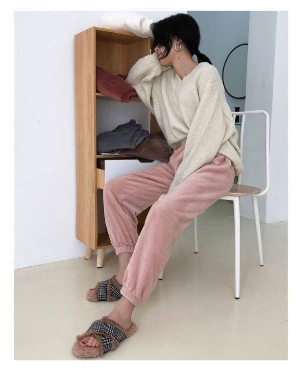 Fleece Men's Thickened Coral Fleece Pajama Pants Loungewear Autumn and Winter Women's Fleece Lazy Women's Fleece Wide-Leg Pants