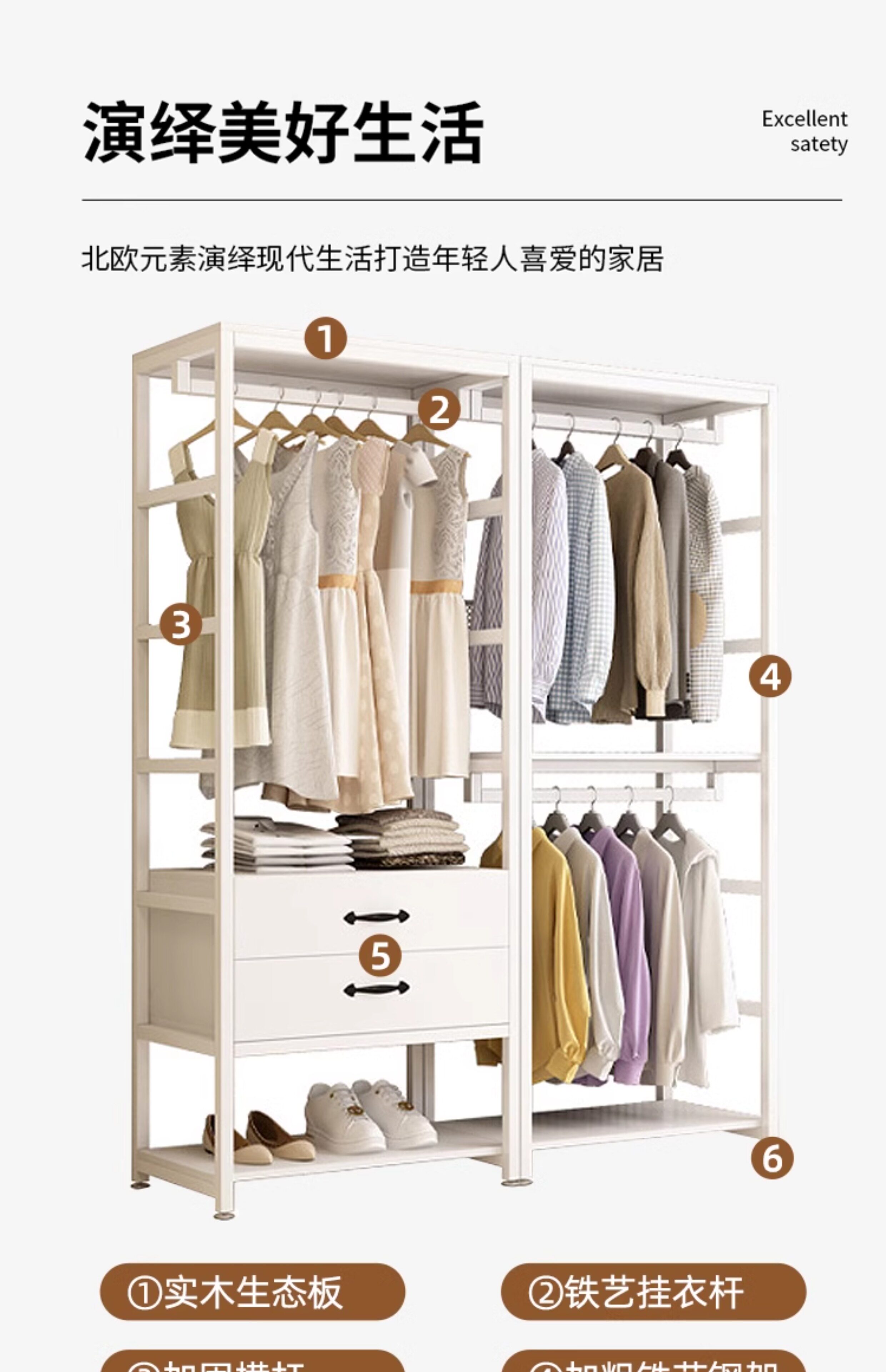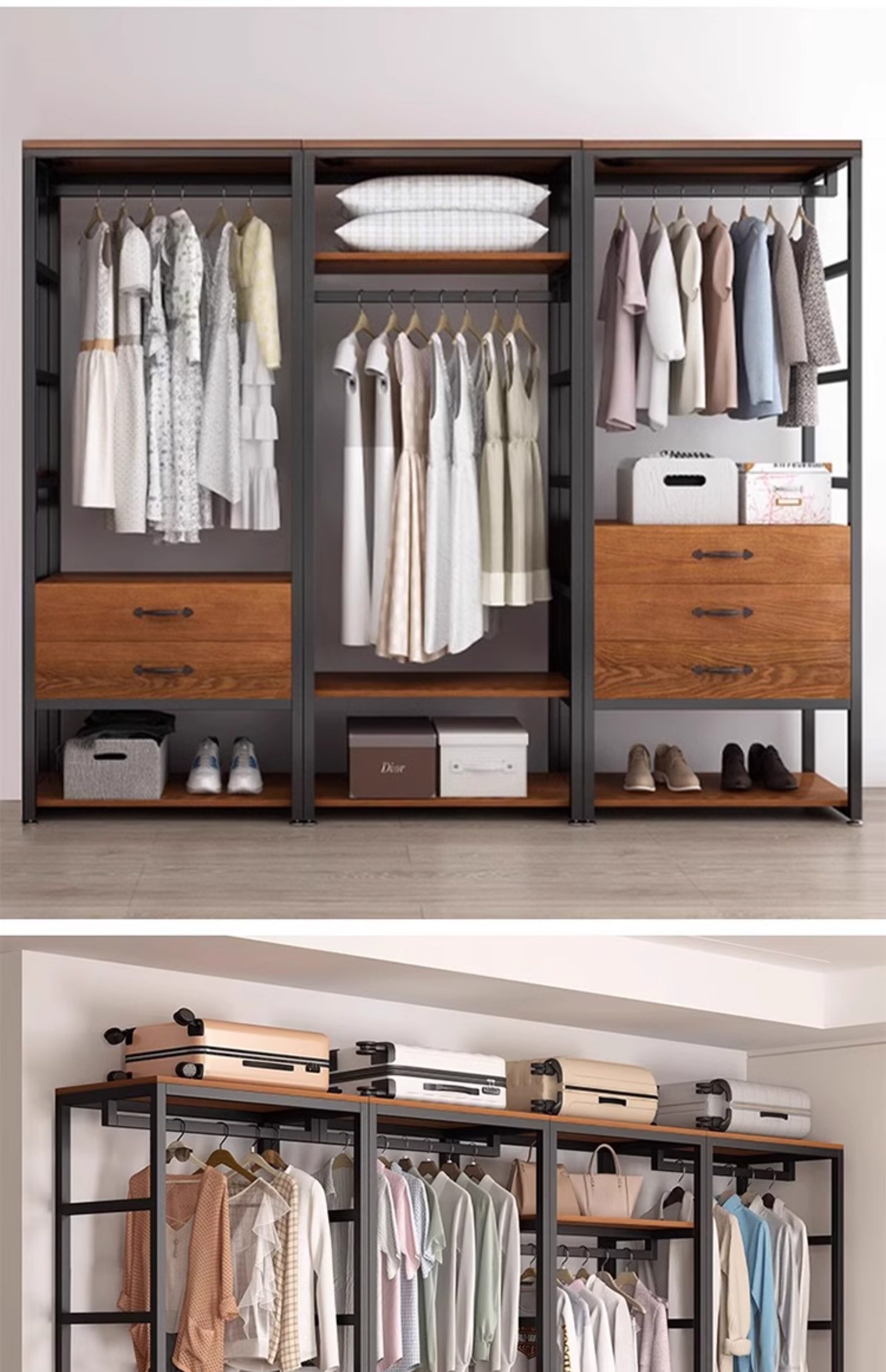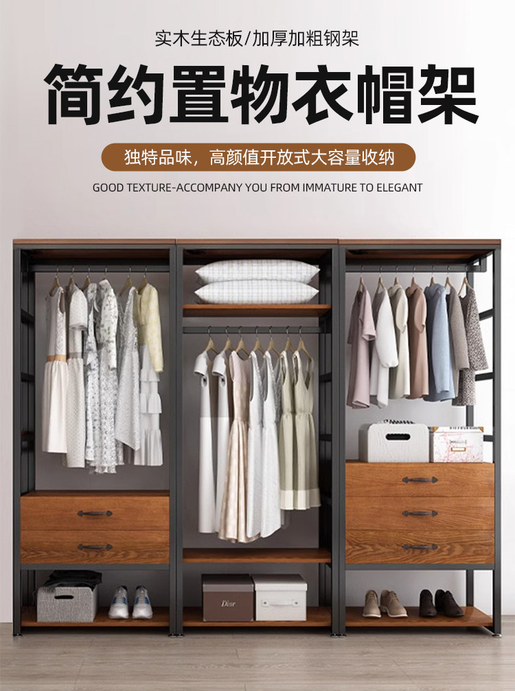 Solid wood walk-in closet home bedroom open wardrobe floor-standing combination storage rack coat rack coat rack