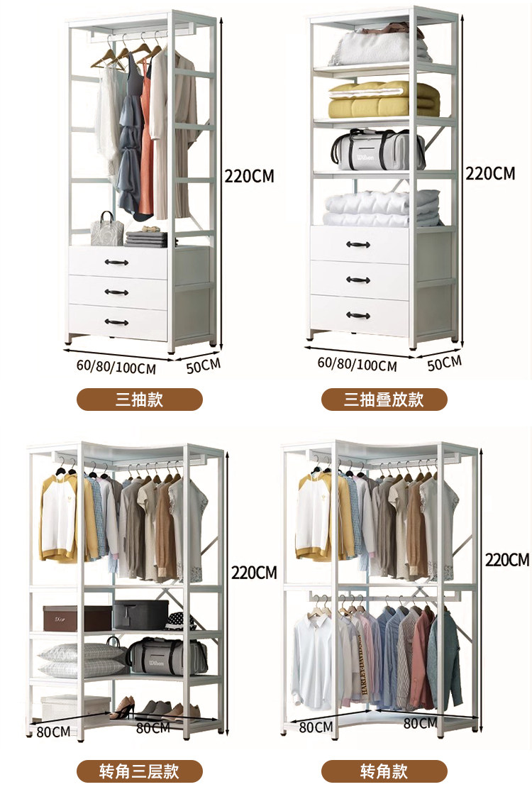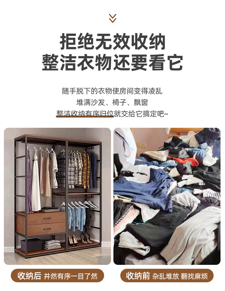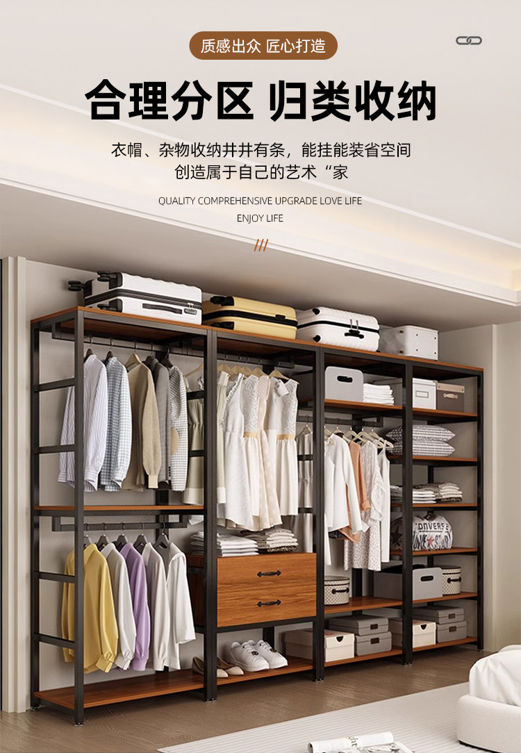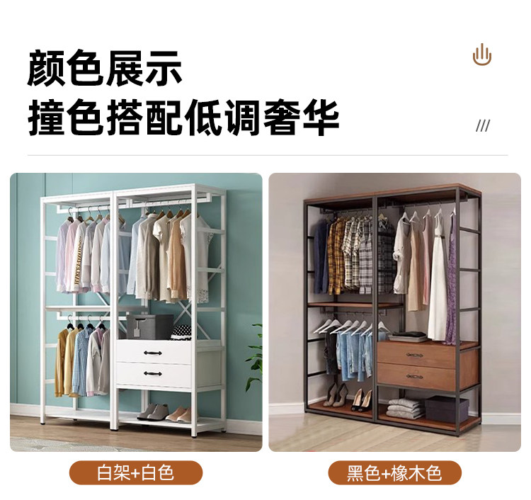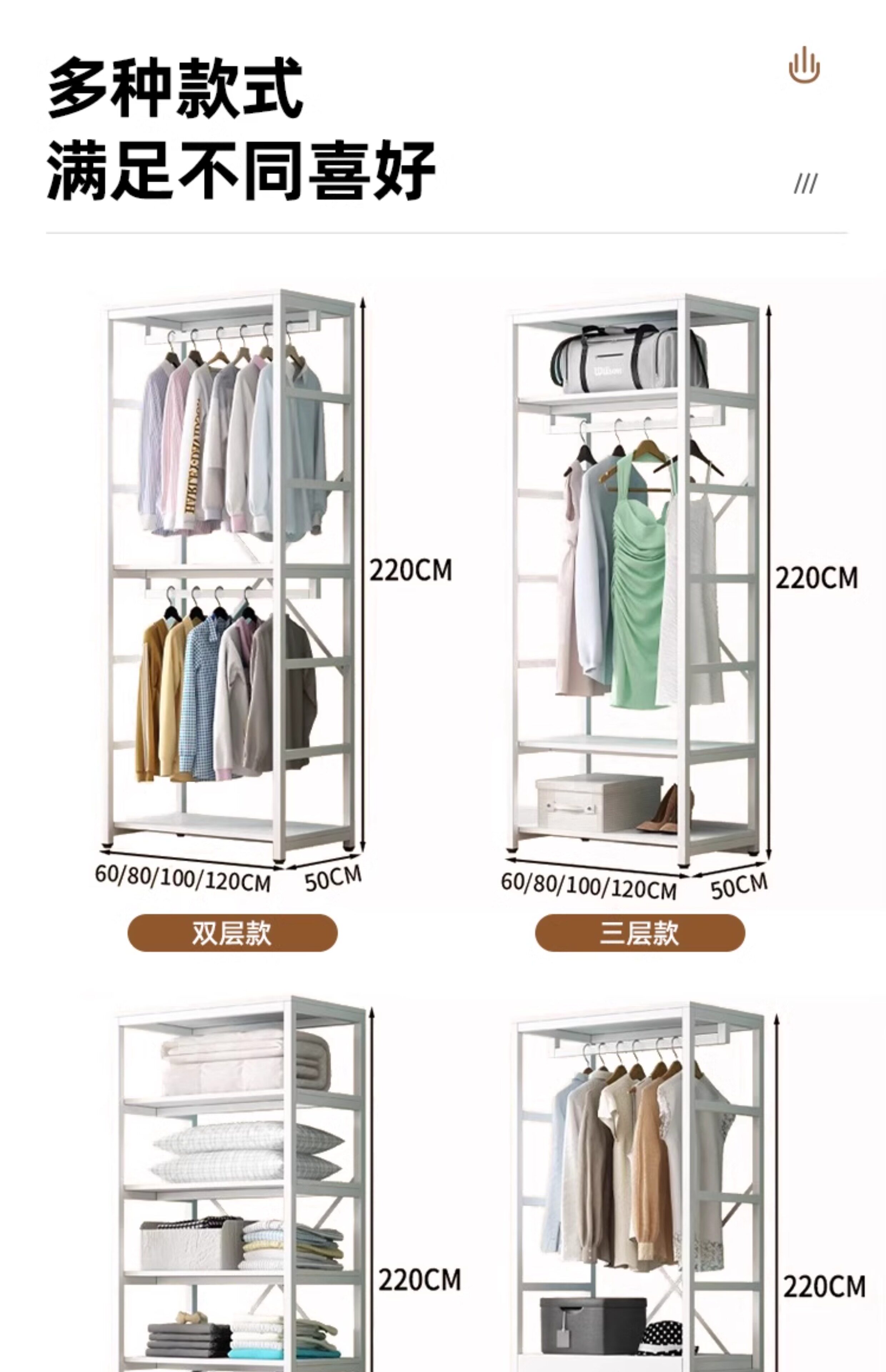 Solid wood walk-in closet home bedroom open wardrobe floor-standing combination storage rack coat rack coat rack