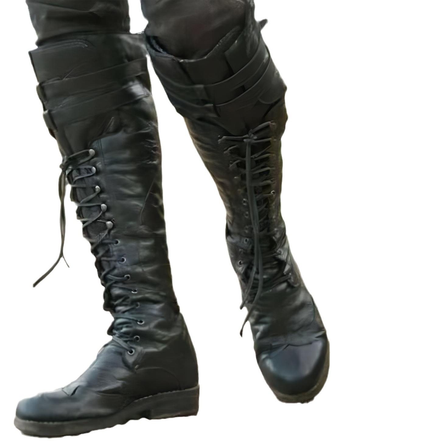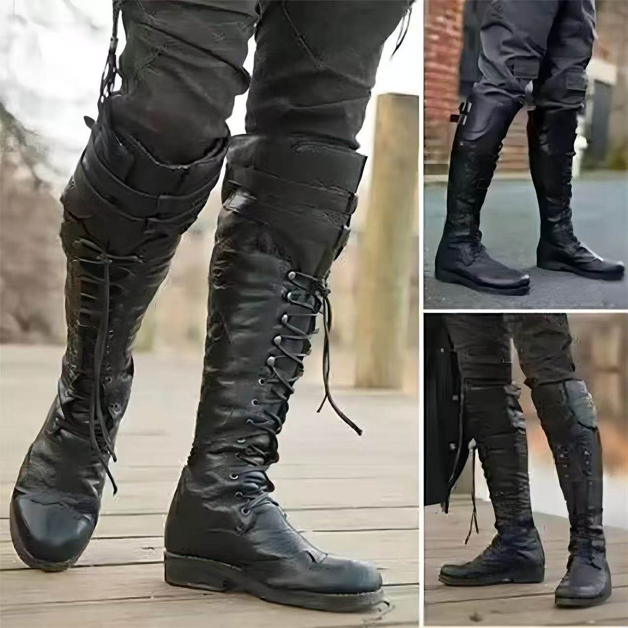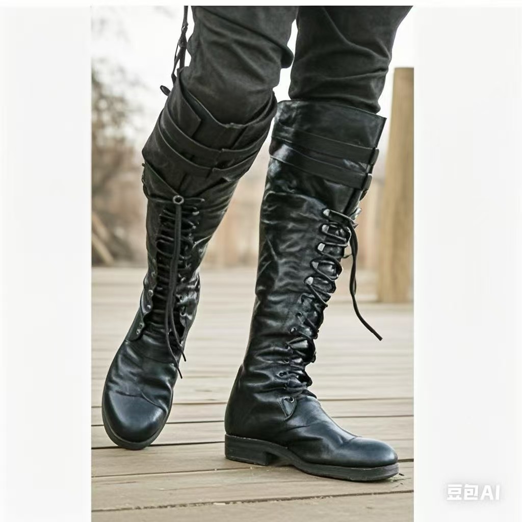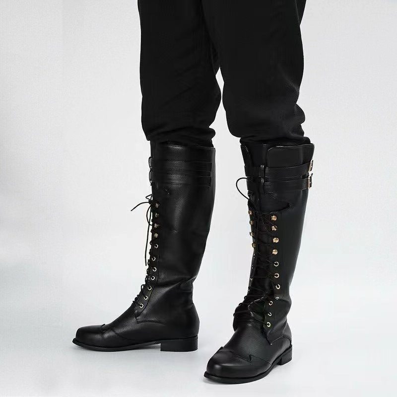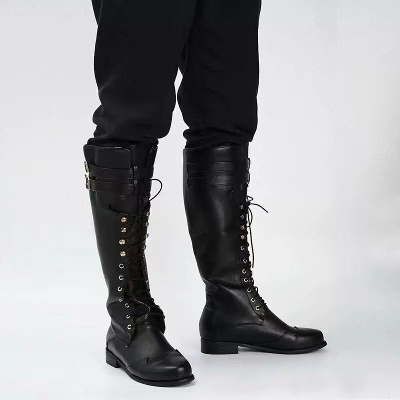 Western Knight Boots, Knight Boots, Square Heel, Flat Men's Shoes, Men's Boots, Lace-Up High Boots, Long Boots, Large Size Boots