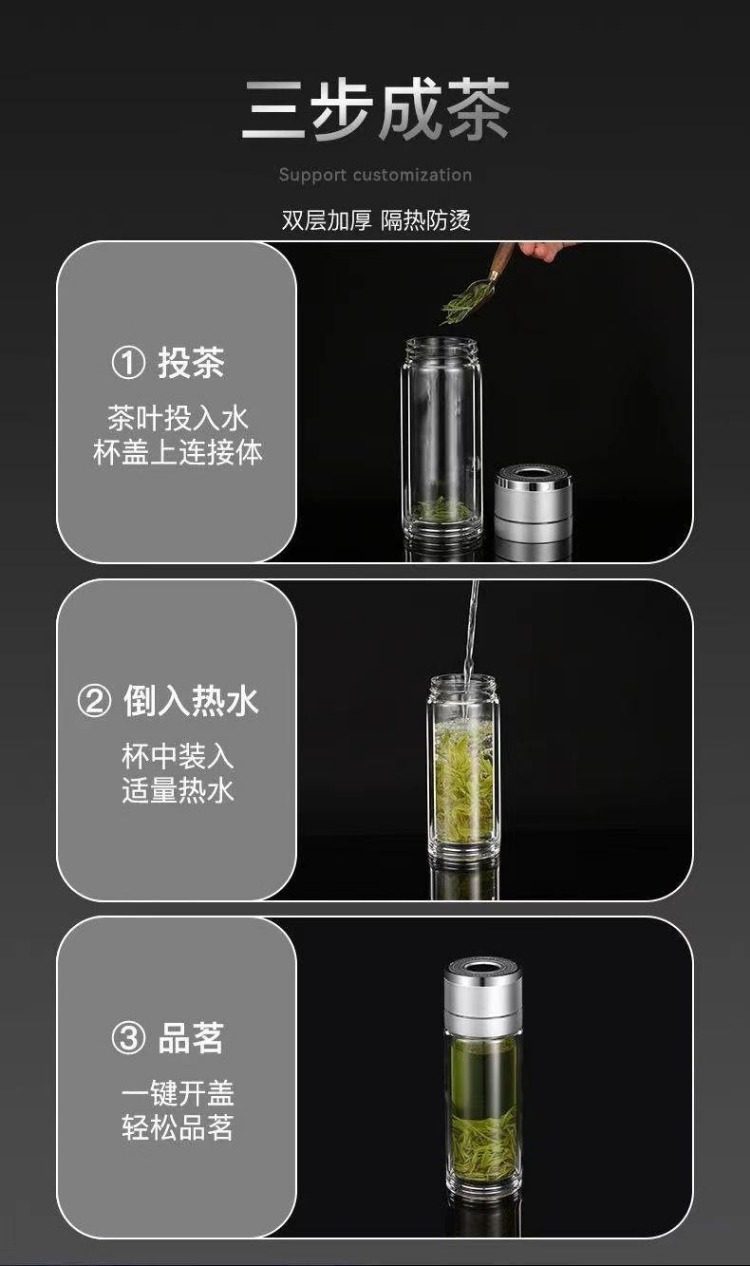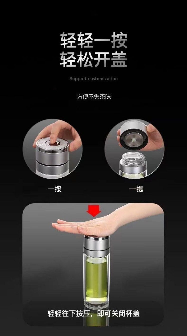 One-Click Opening Tea Cup Glass Car Tea Men's Separate New High-End Double-Layer Press Portable Water Cup