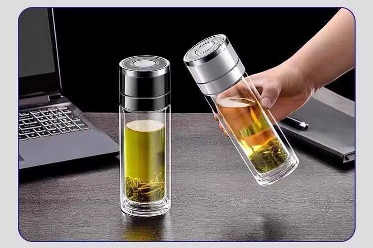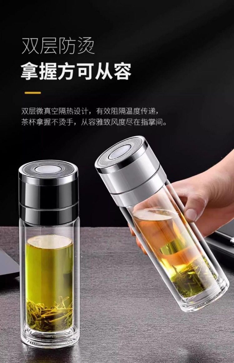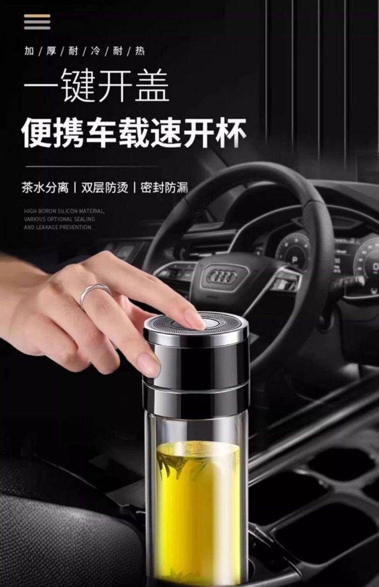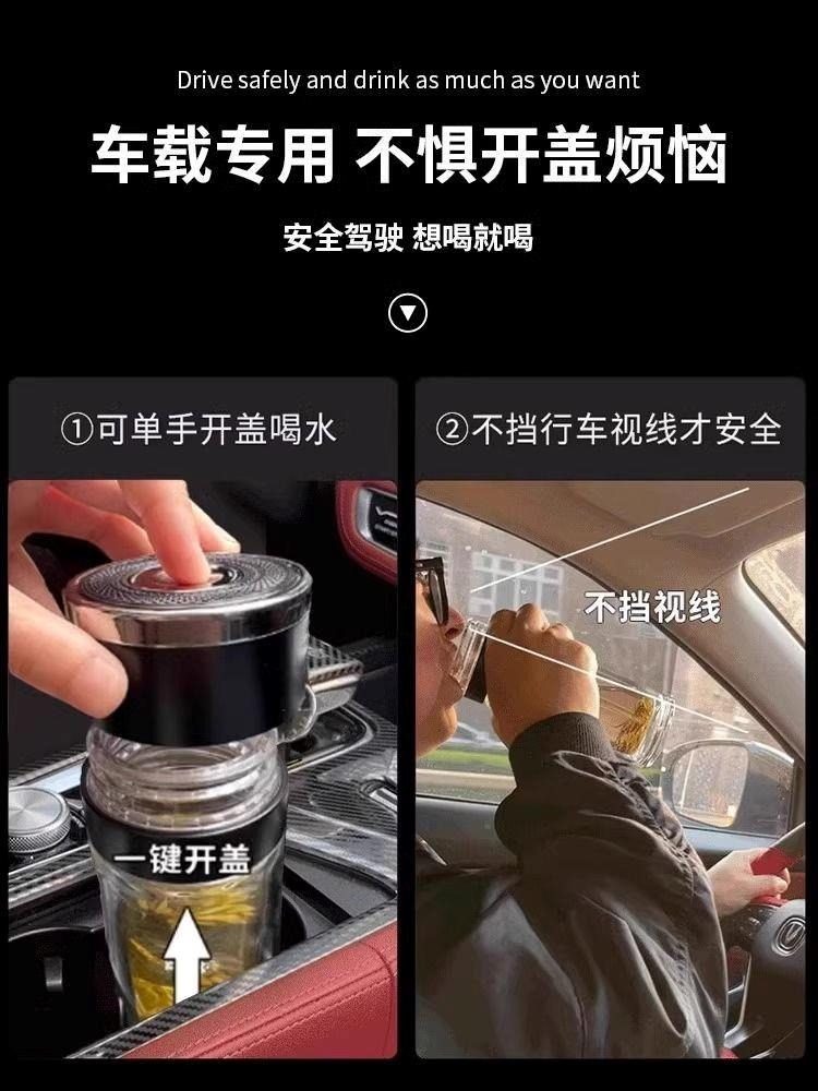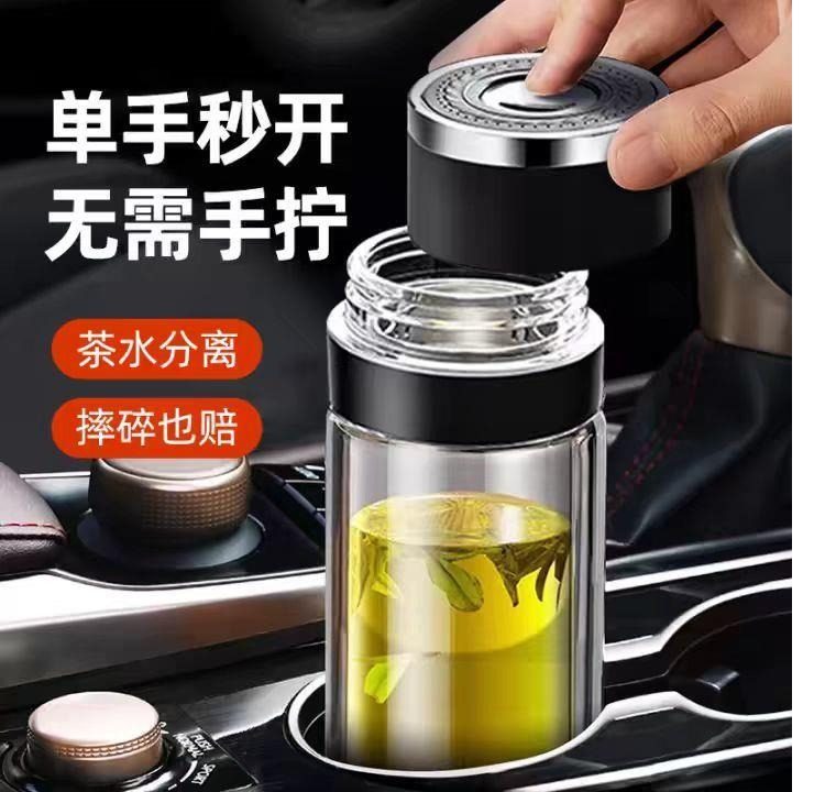 Car-Mounted One-Click Opening Tea New Separated High-End Glass Thickeneded Double-Layer Men's Water Cup Tea Cup Portable